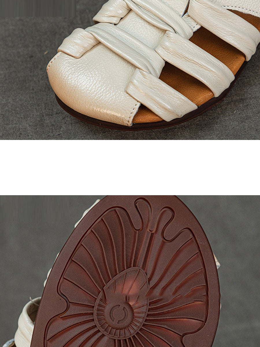 Women Summer Genuine Leather Weave Slippers