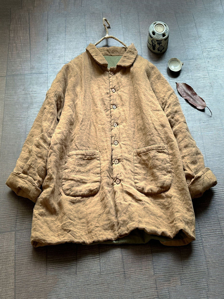 This Women Vintage Autumn Solid Padded Coat features a turn-down collar and full raglan sleeves, making it perfect for the winter and autumn seasons.