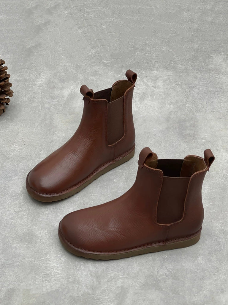 Women Vintage Winter Genuine Leather Chelsea Boots