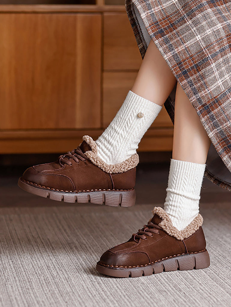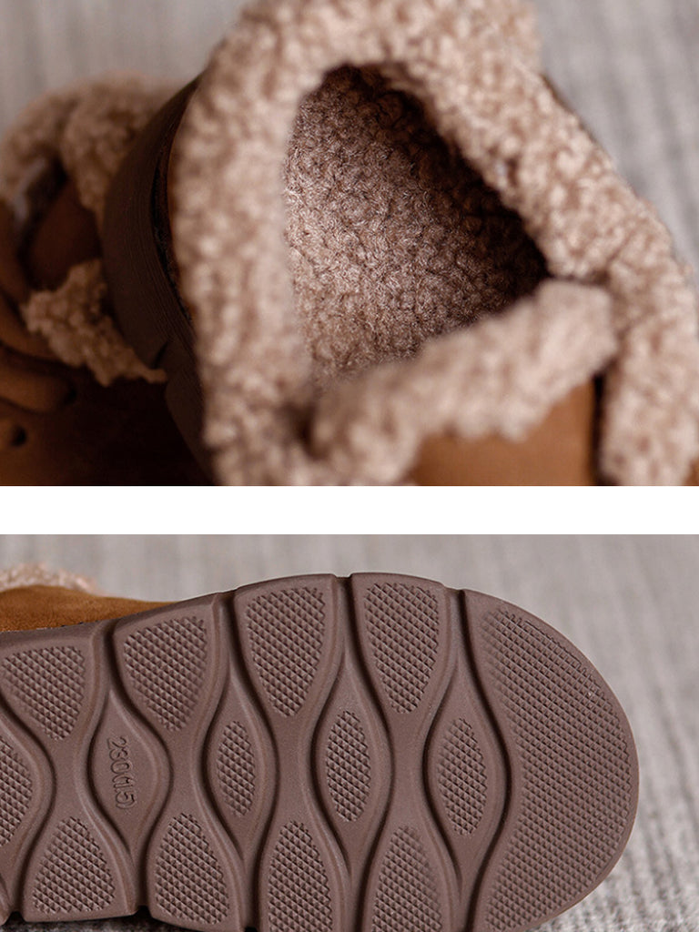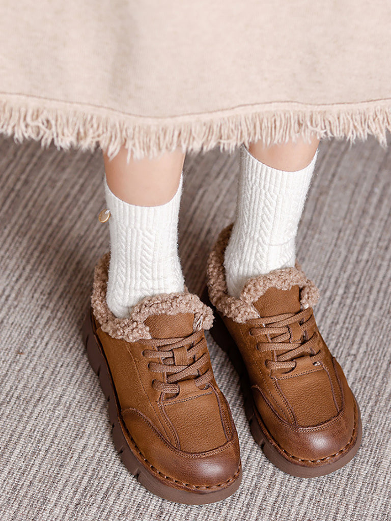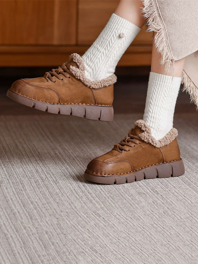 Women Winter Genuine Leather Fleece-lined Platform Shoes