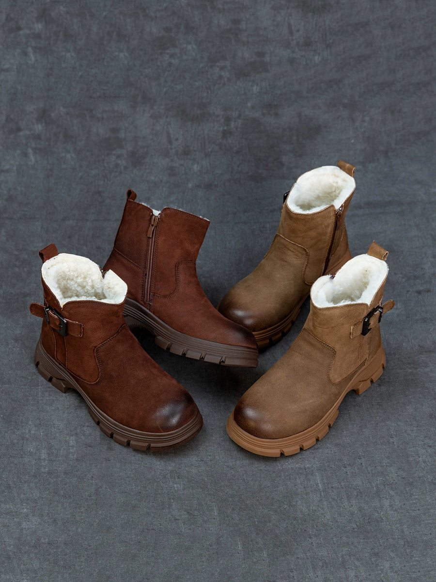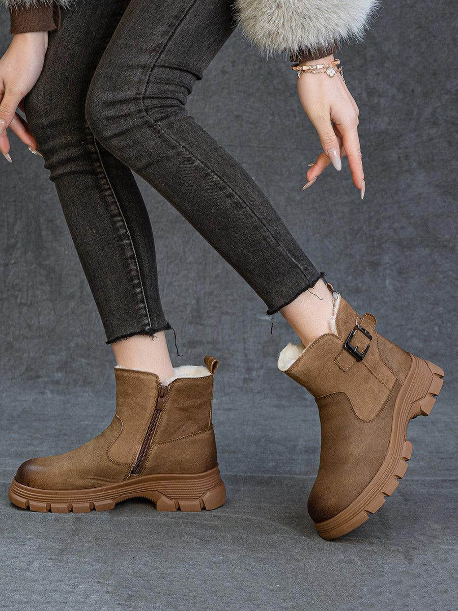 Women Winter Leather Fleece-lined Platform Boots