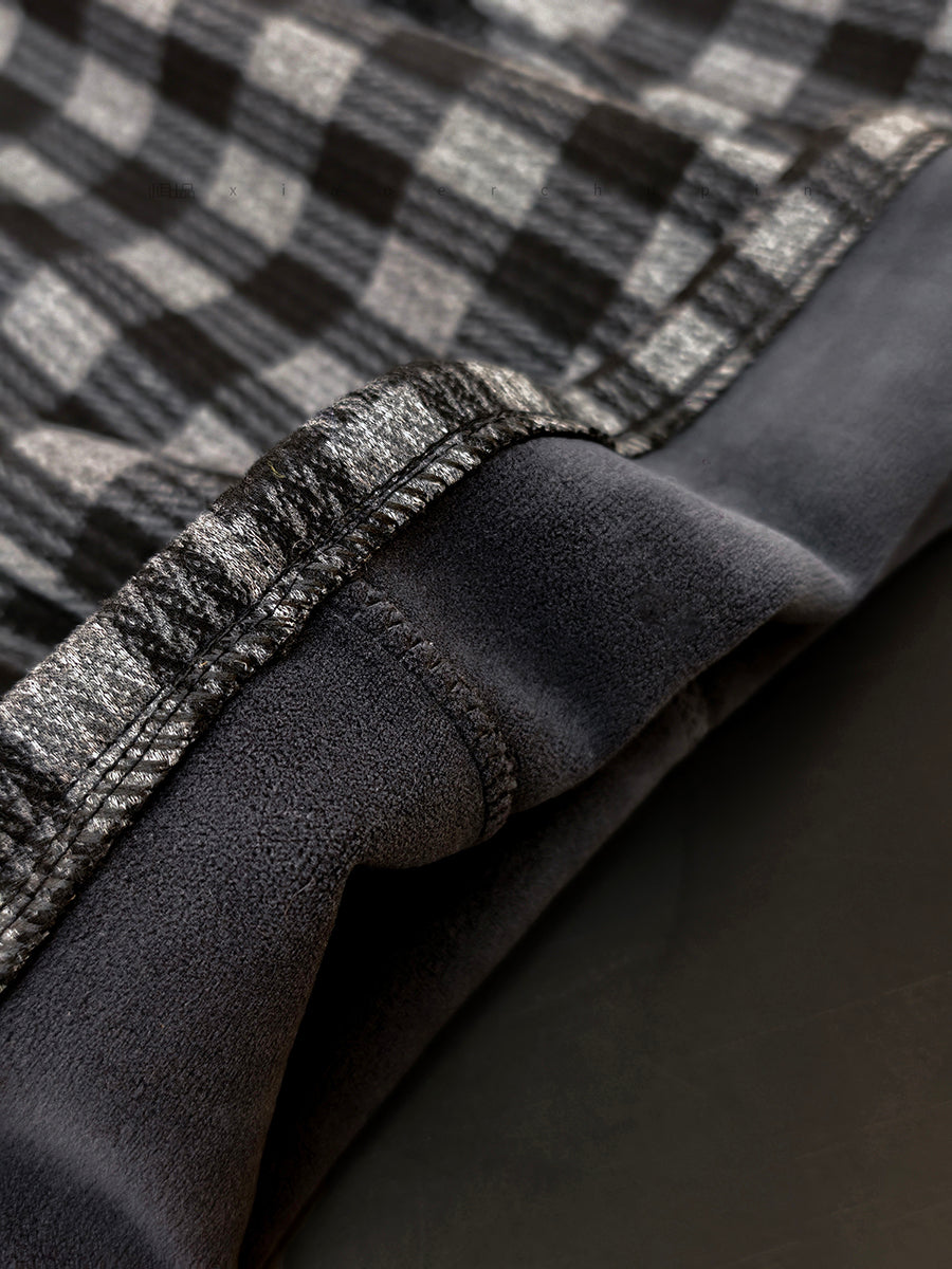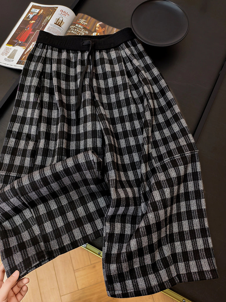 Women Winter Plaid Fleece-lined Wide-leg Pants
