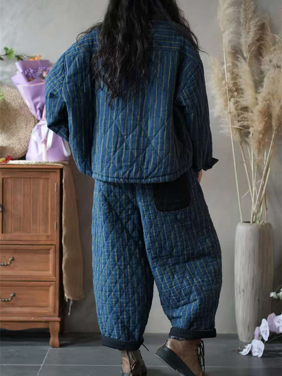Women Winter Vintage Stripe Padded Suits