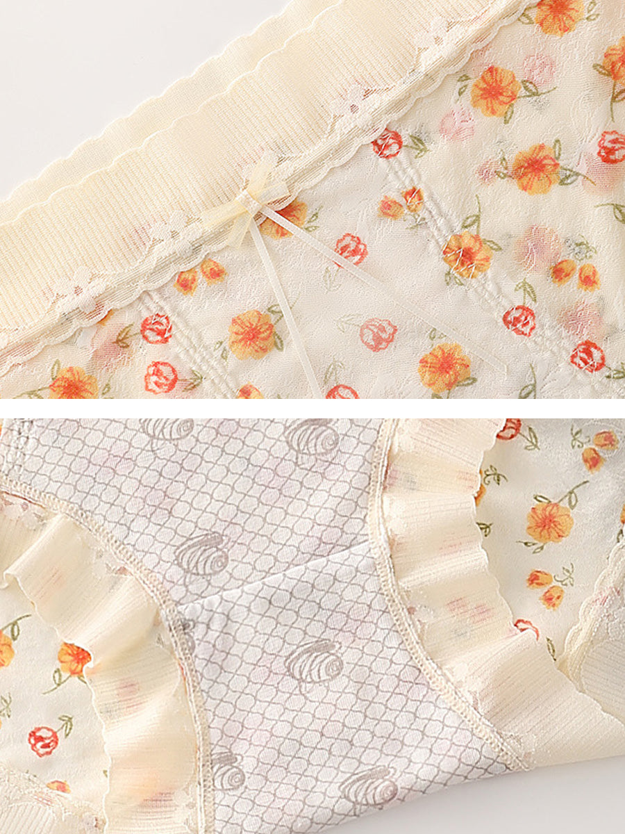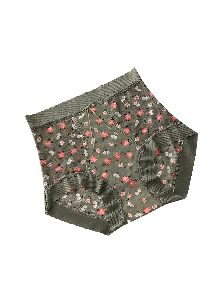 Intimo da donna a vita alta con motivo floreale artistico, 3 pezzi