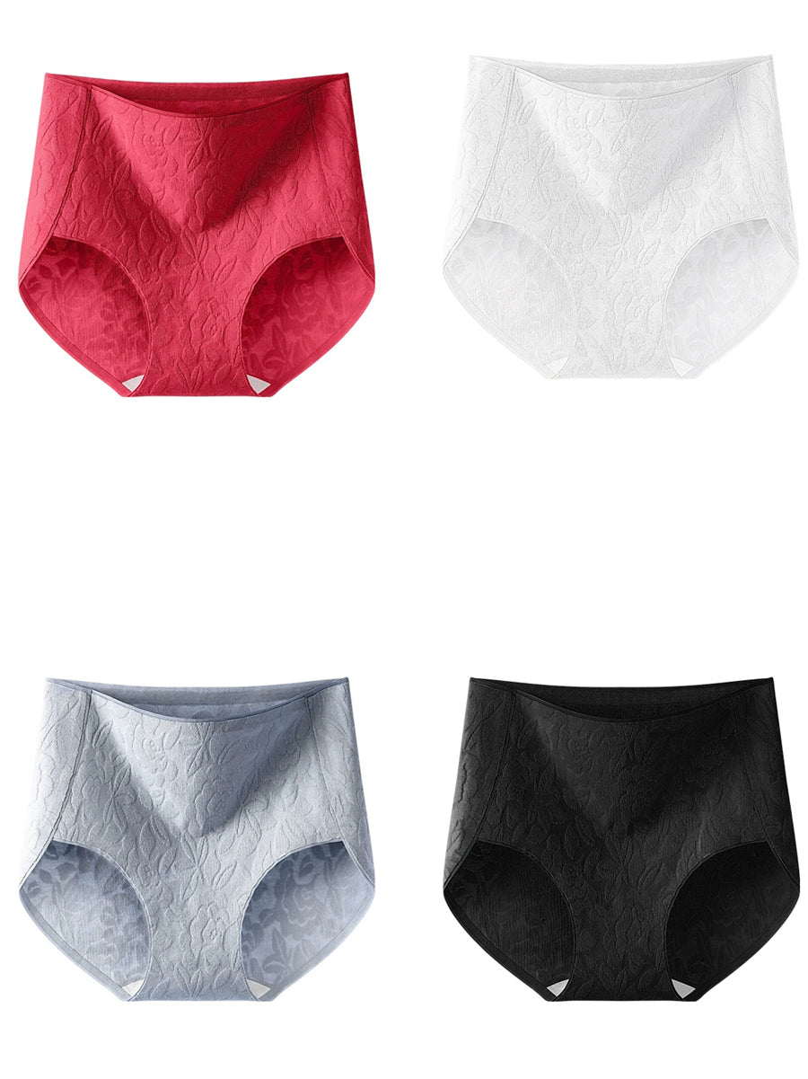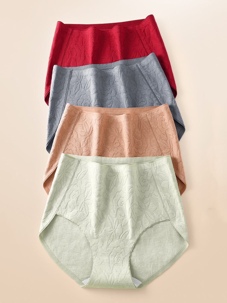 4 pezzi di biancheria intima da donna a vita alta in jacquard con fiori artistici