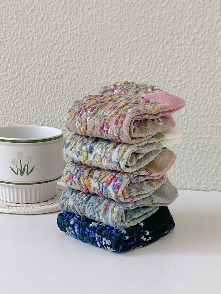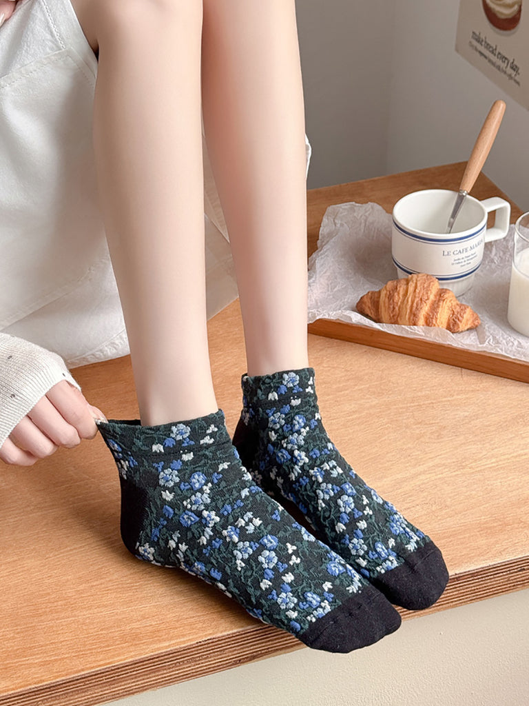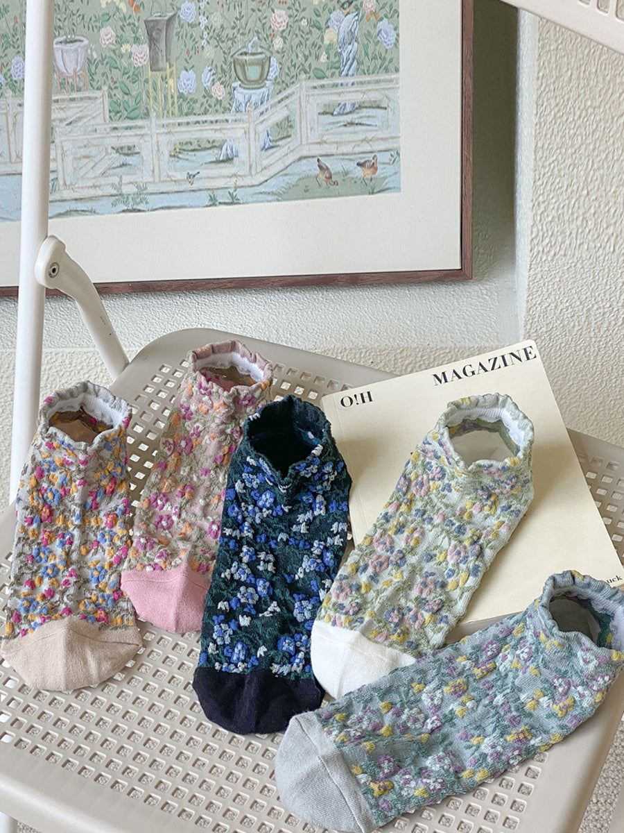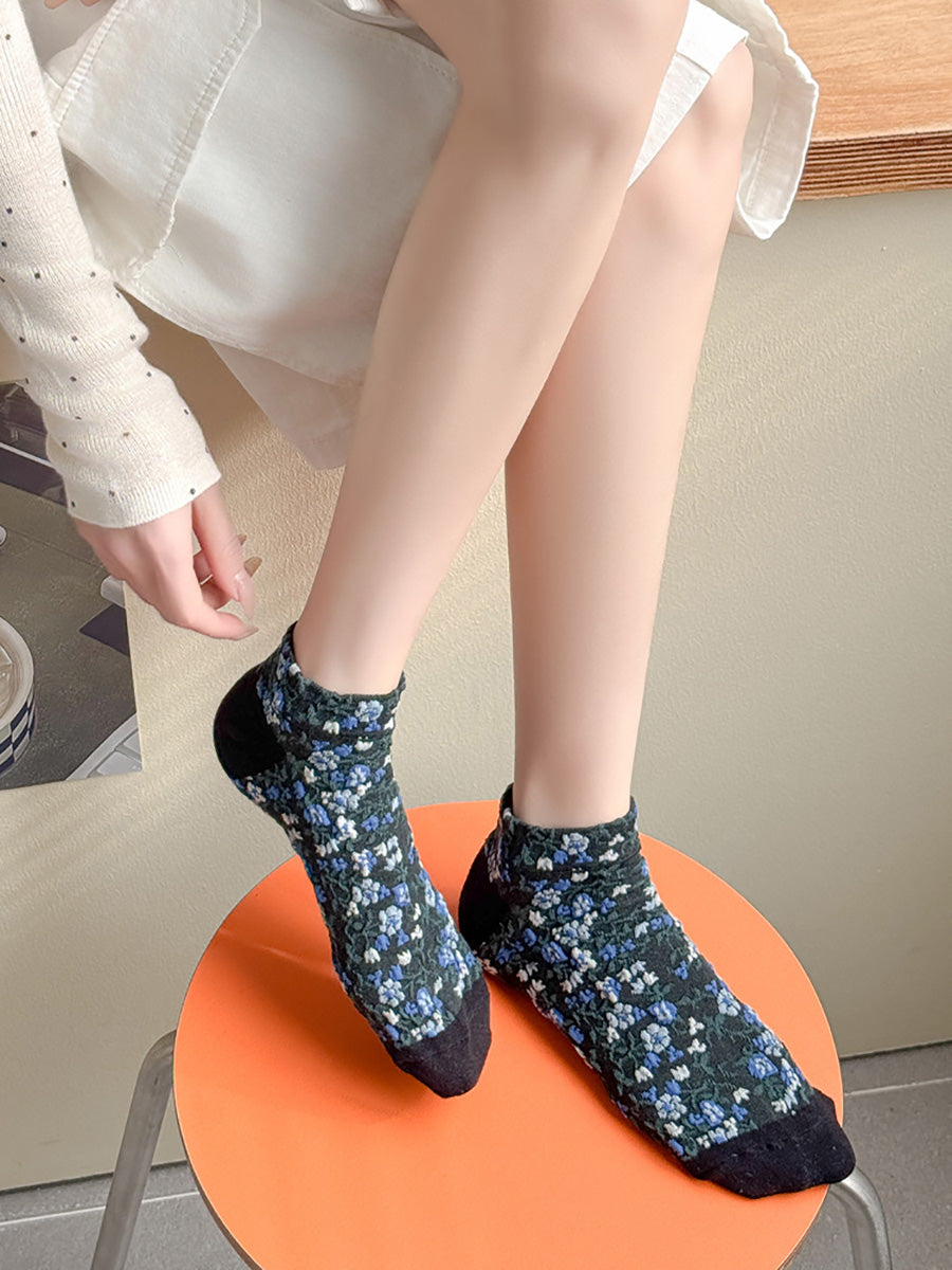 5 paia di calzini corti da donna con motivo floreale jacquard colorblock