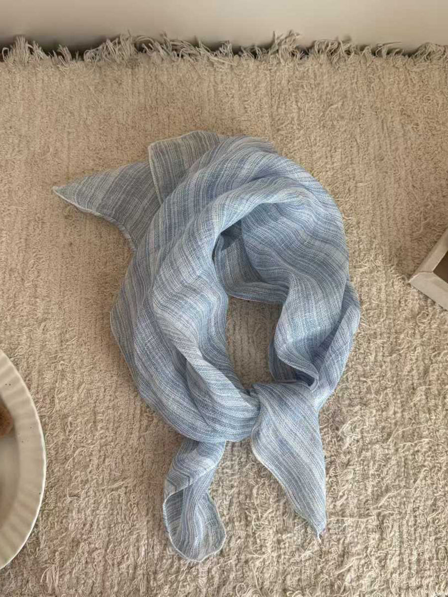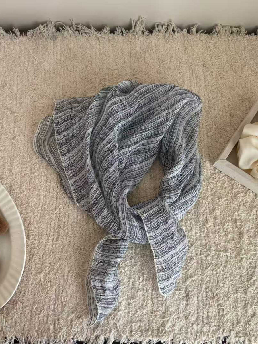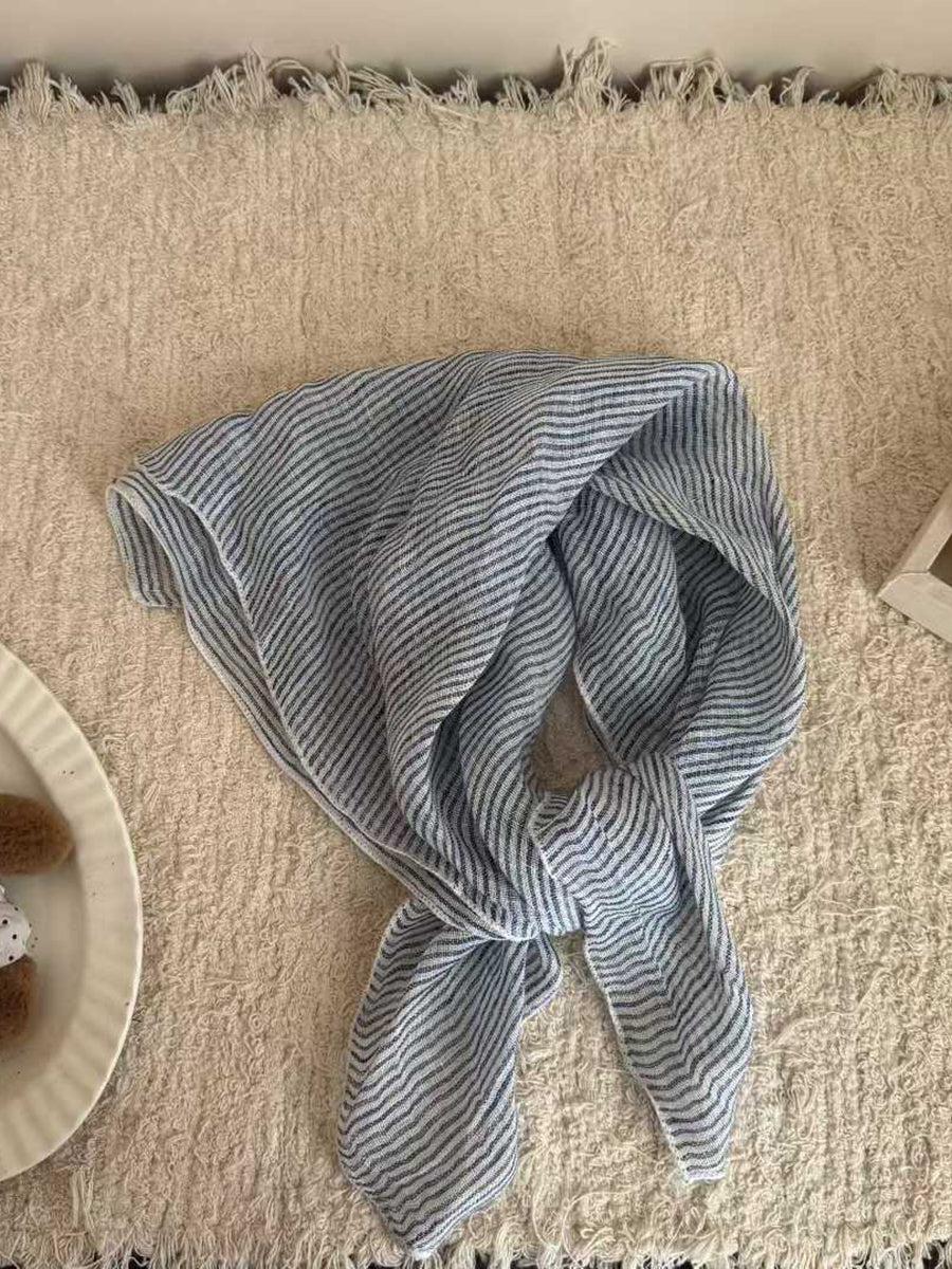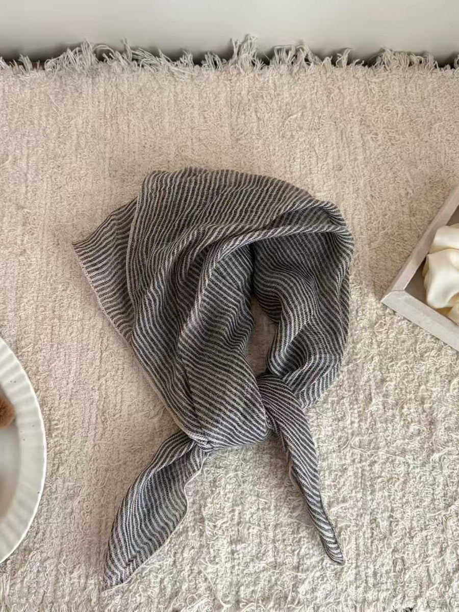 Sciarpa quadrata in morbido lino con motivo a righe artistiche