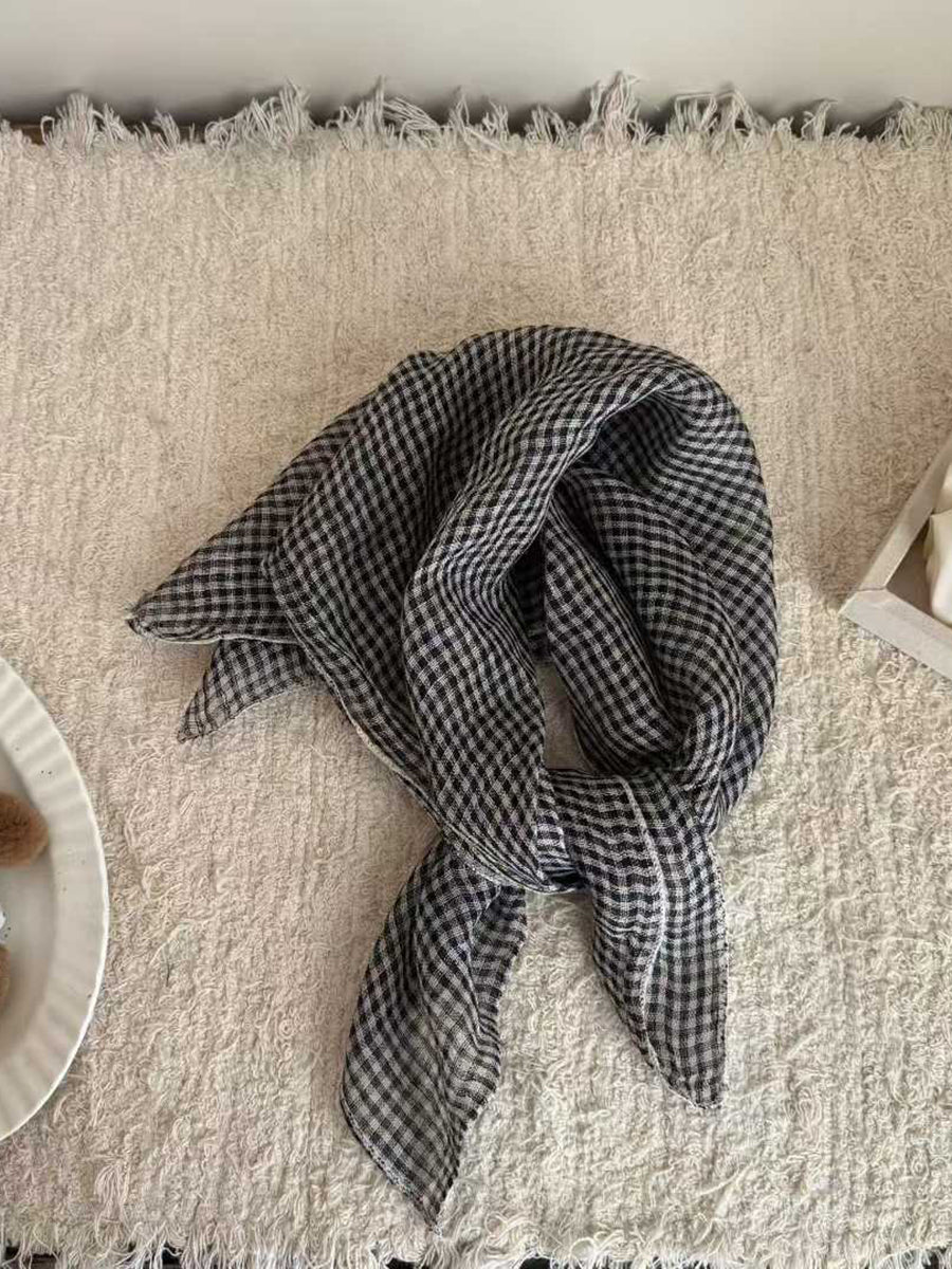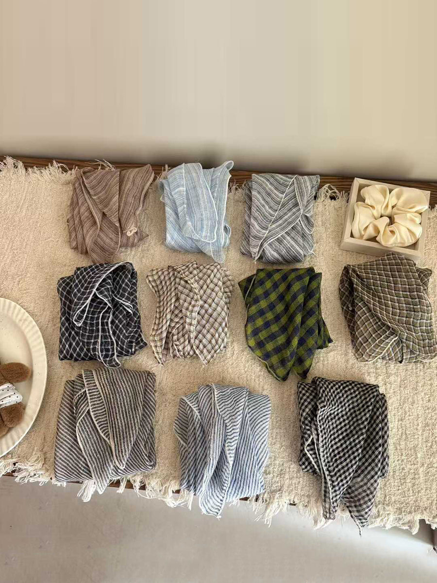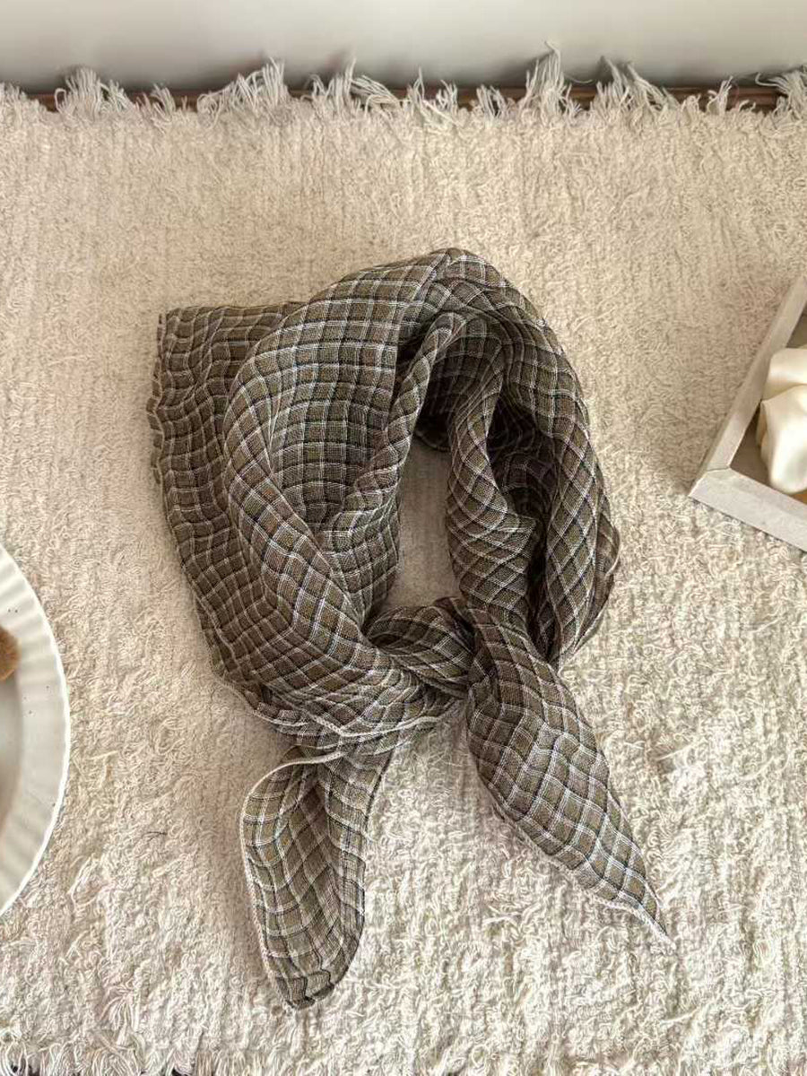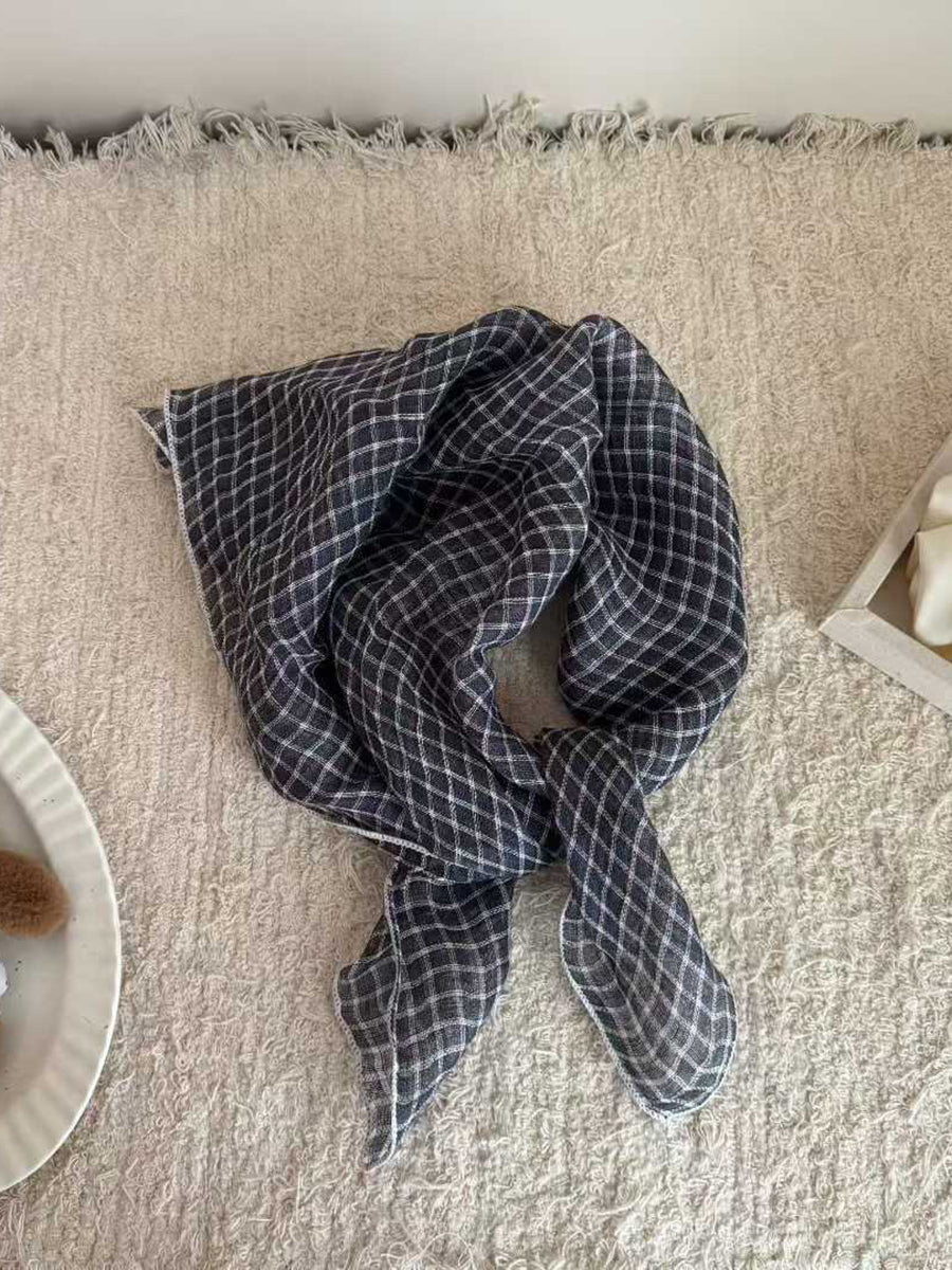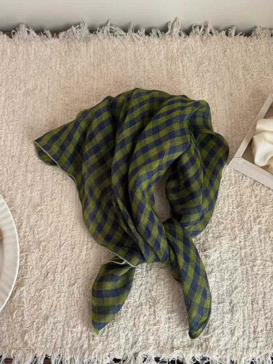 Sciarpa quadrata in morbido lino con motivo a righe artistiche