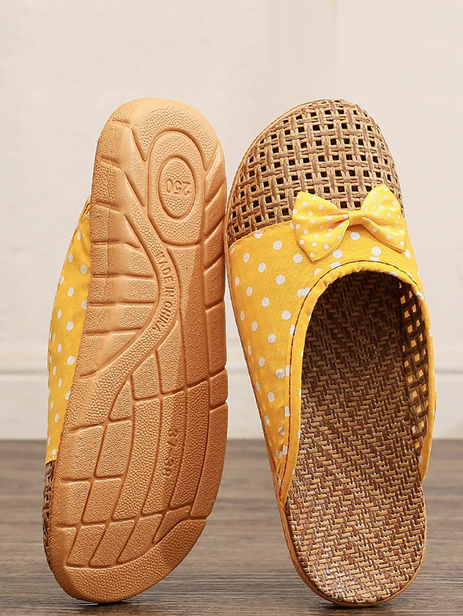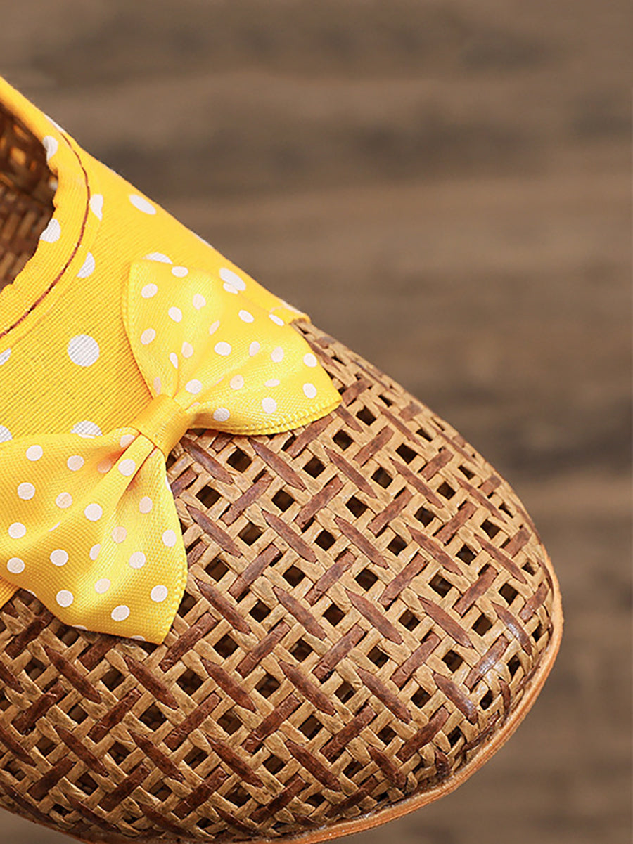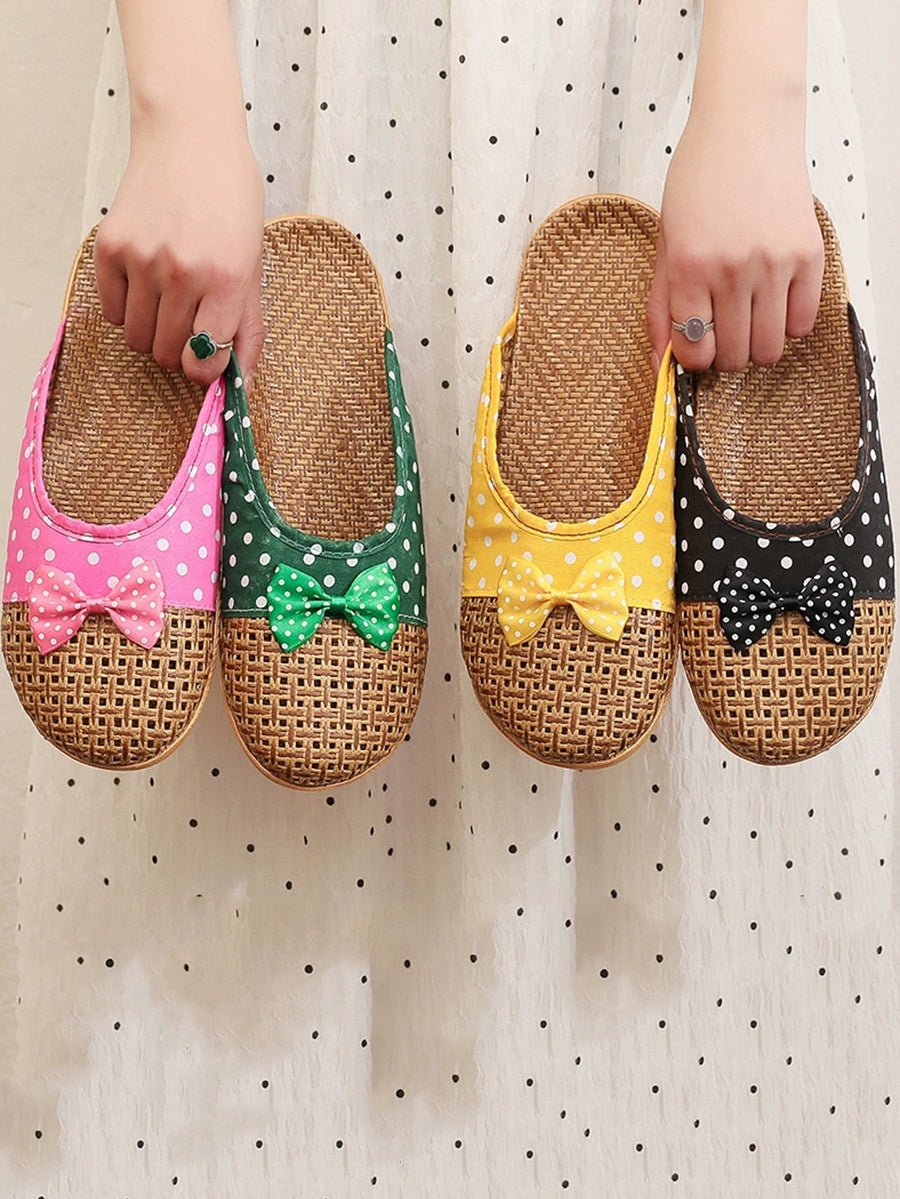 Ciabatte estive da coppia in paglia intrecciata con pois