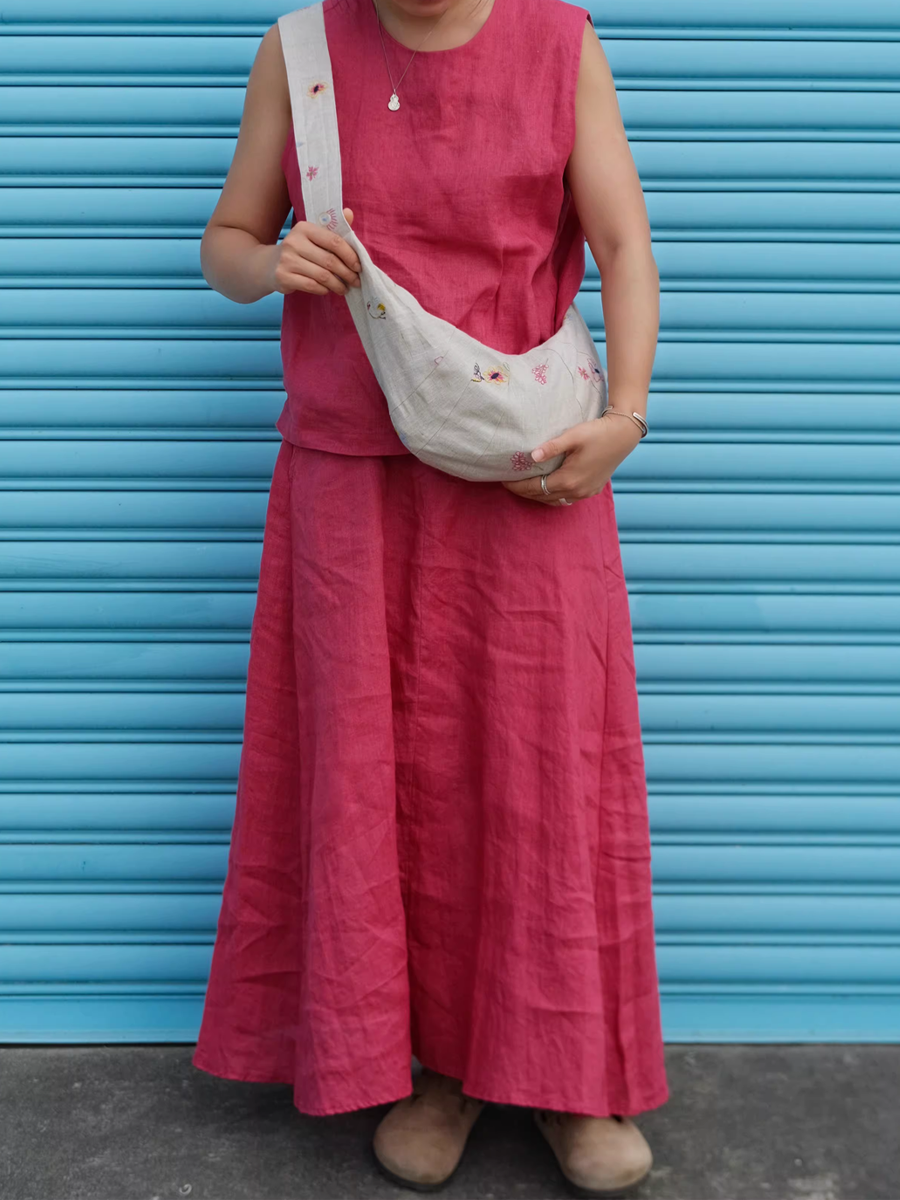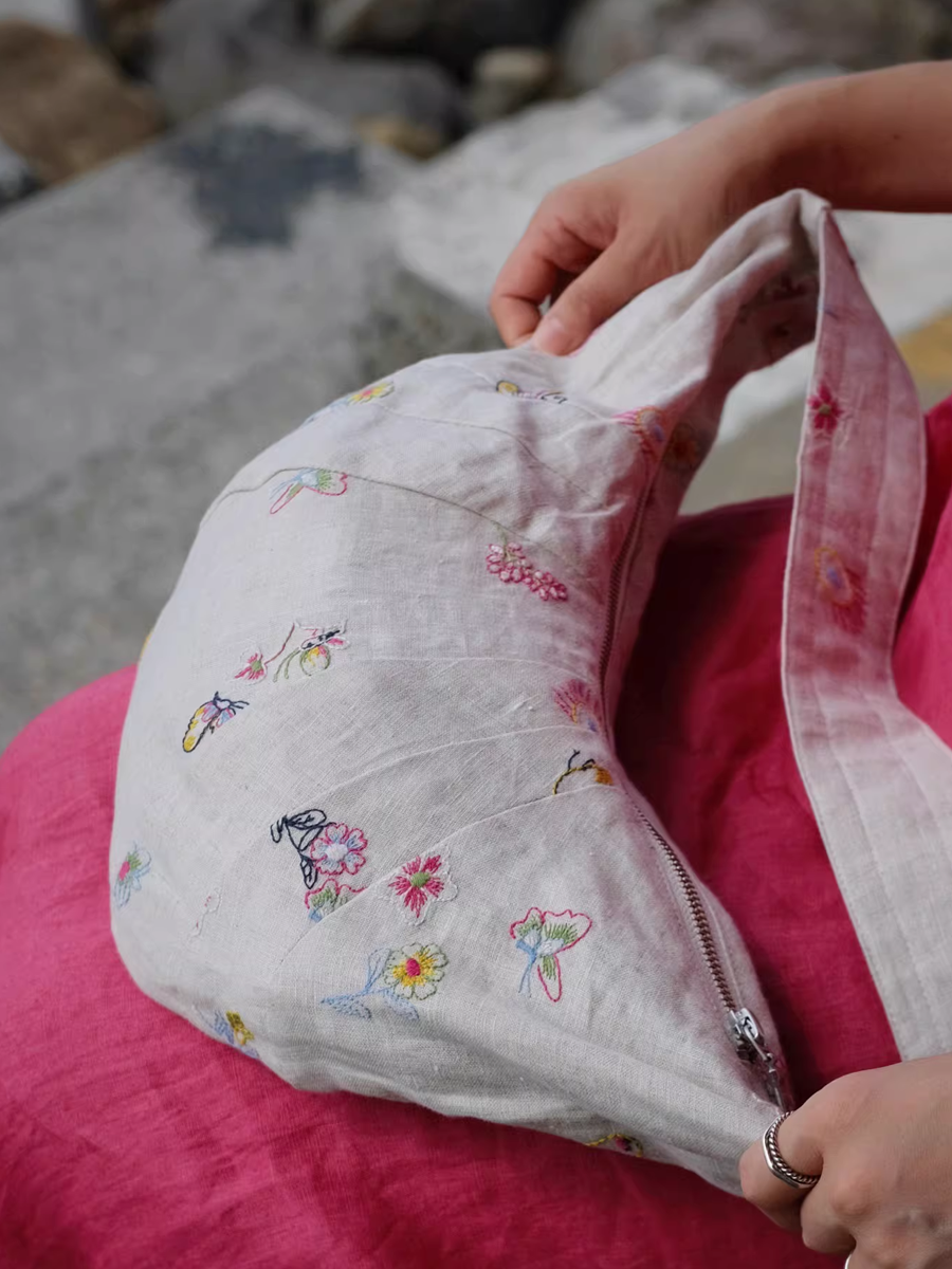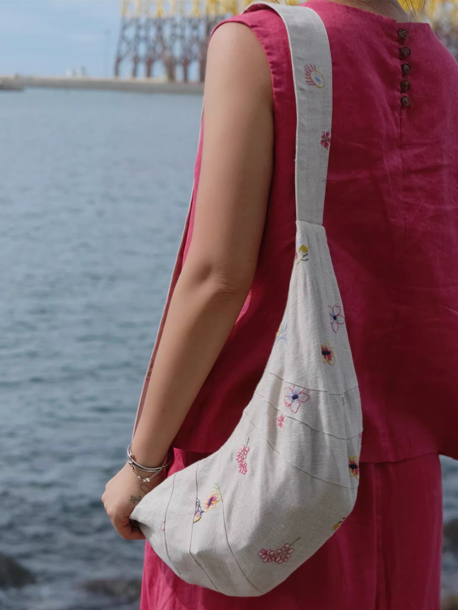 Borsa a tracolla a forma di croissant con ricami floreali