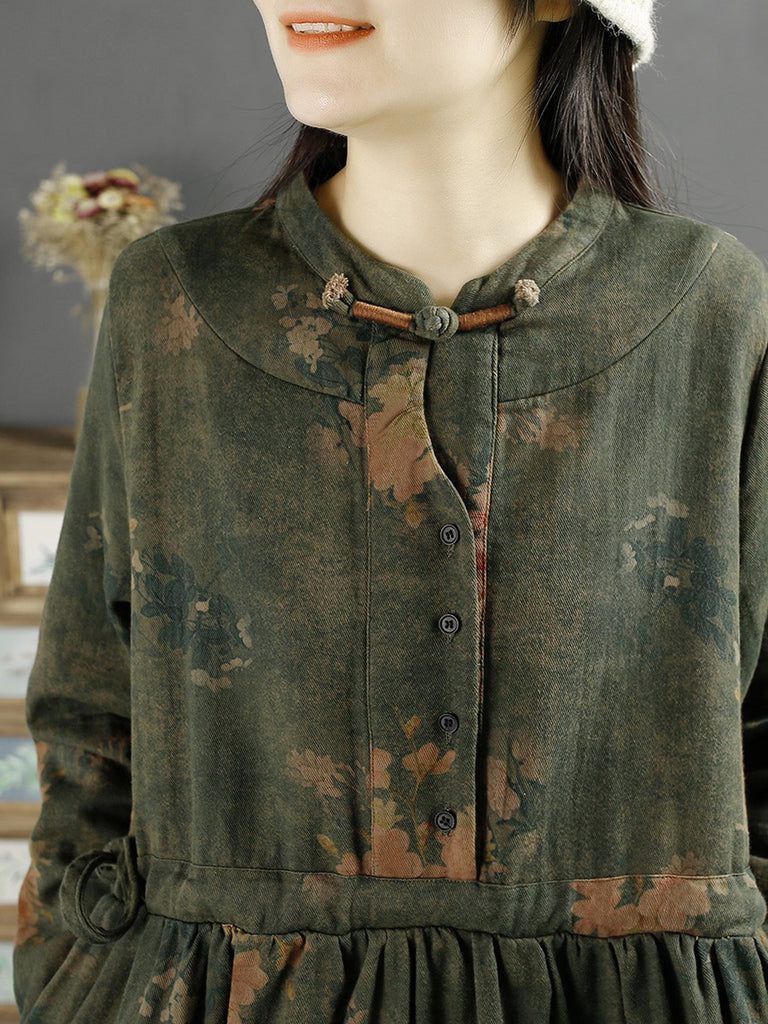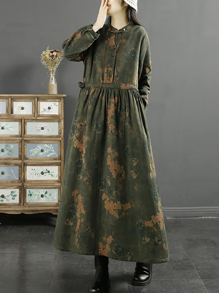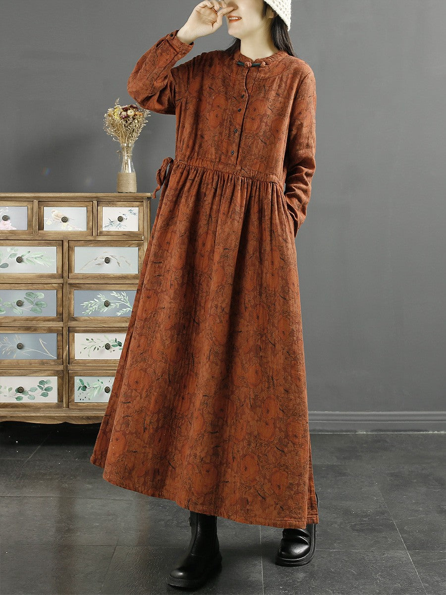 Abito in cotone con stampa a foglie vintage autunnale da donna taglie forti