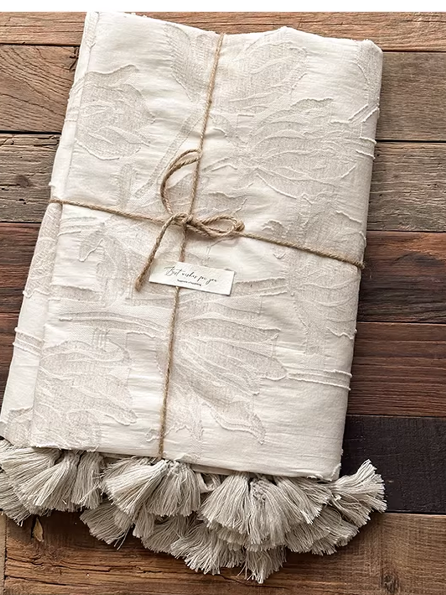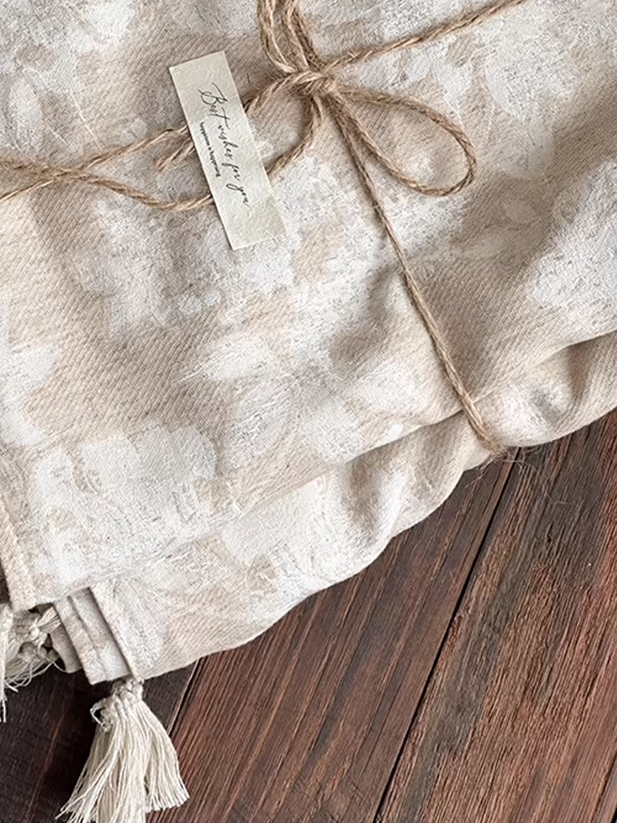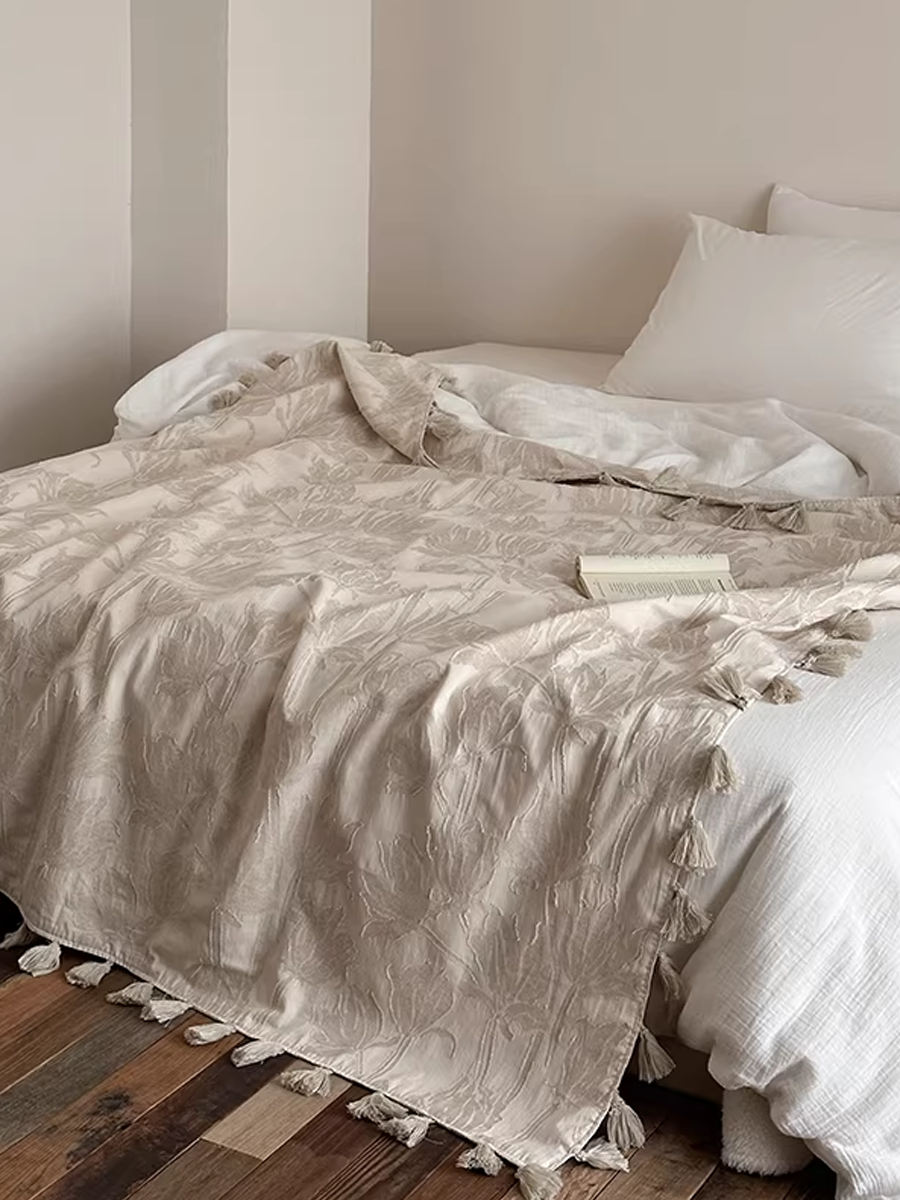 Coperta in jacquard floreale in cotone e lino con texture retrò