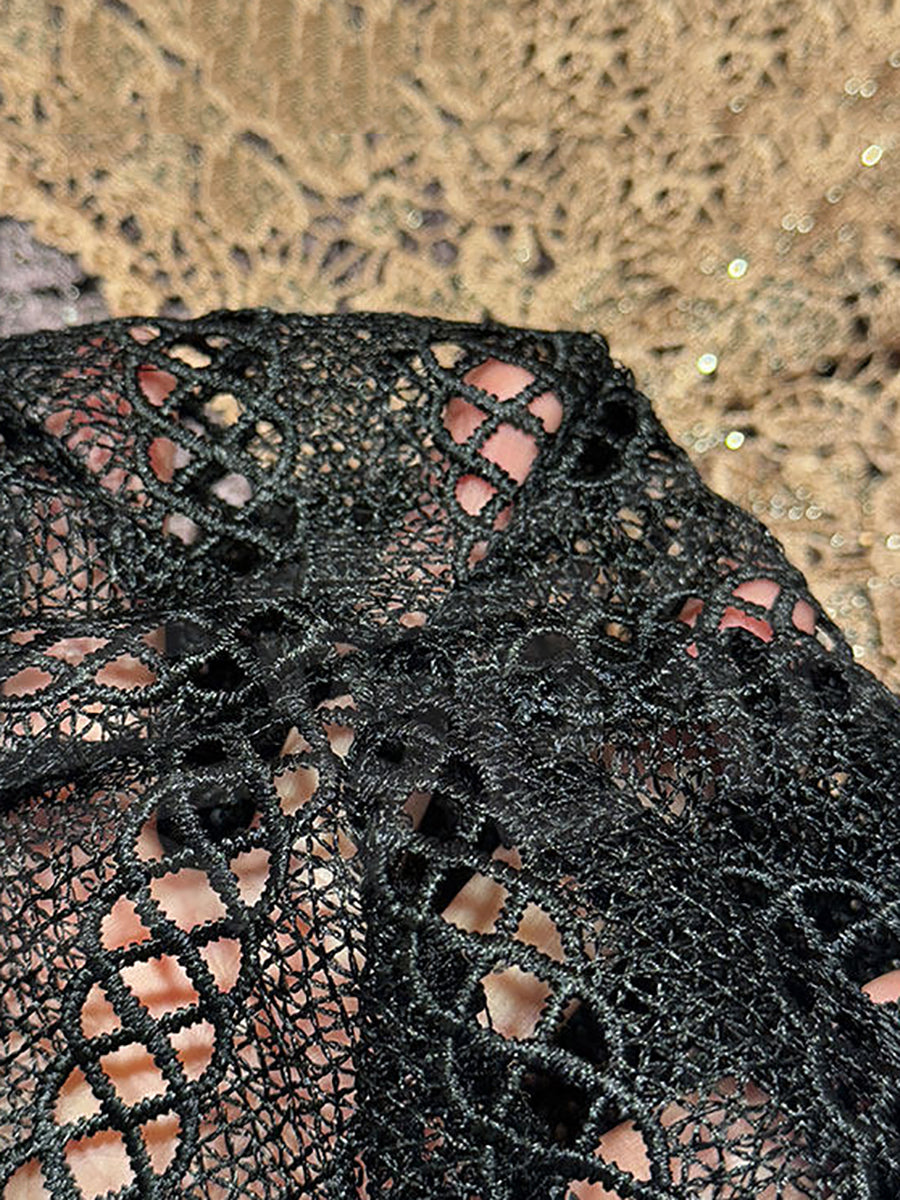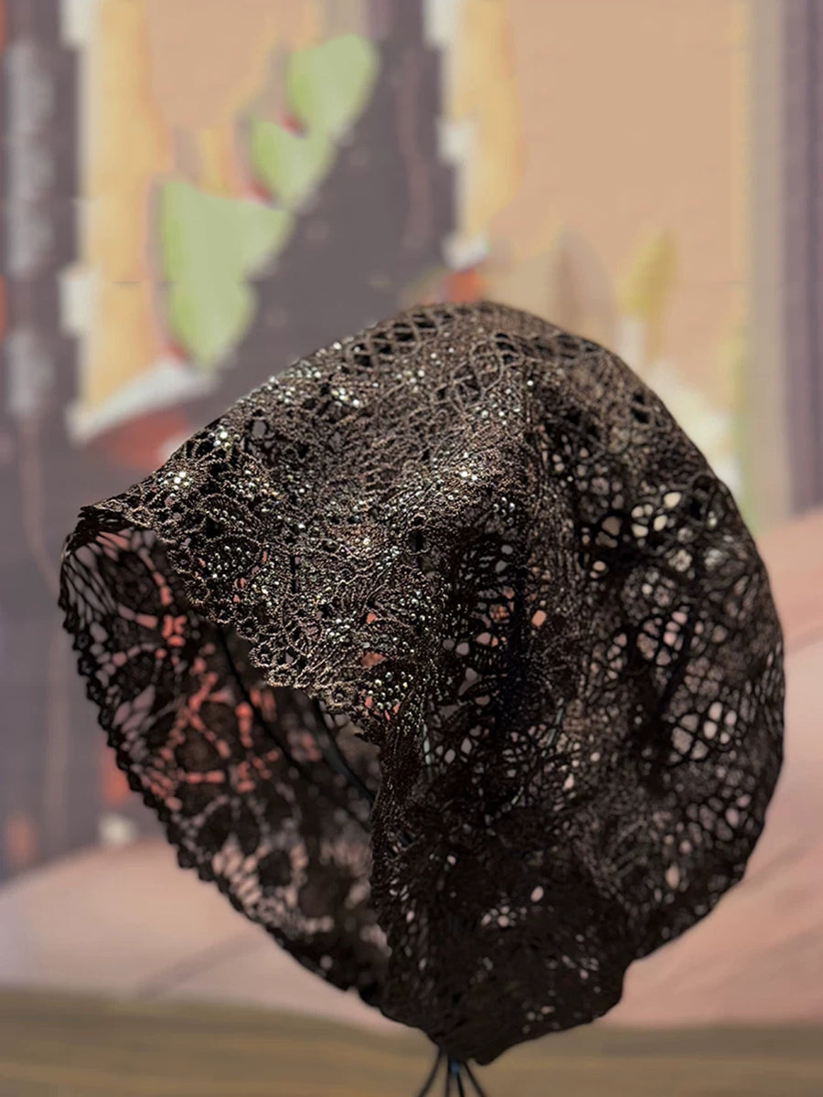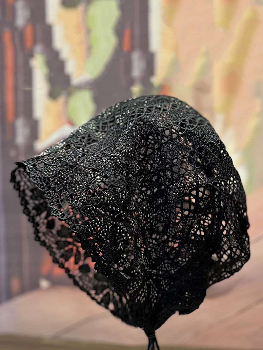 Cappello estivo lavorato a maglia con motivo floreale traforato e lavorazione a pizzo.