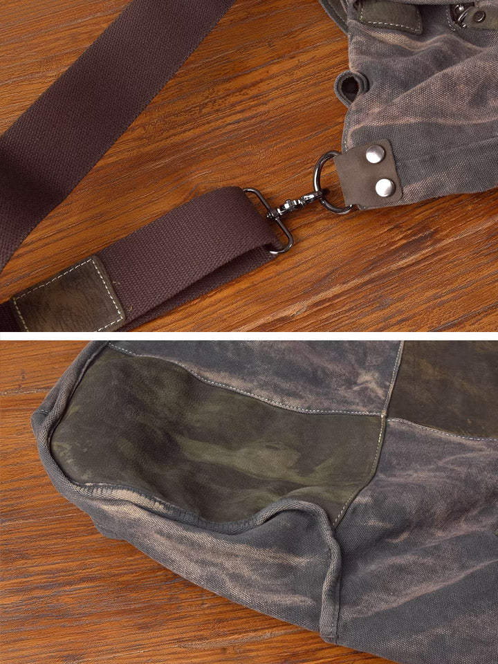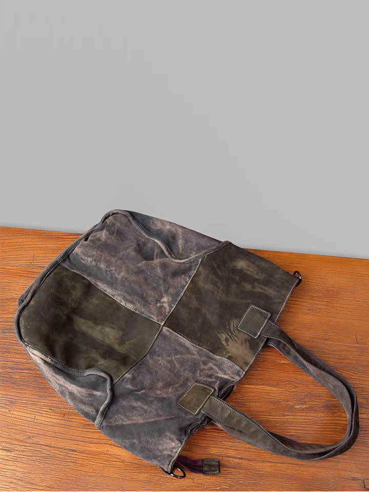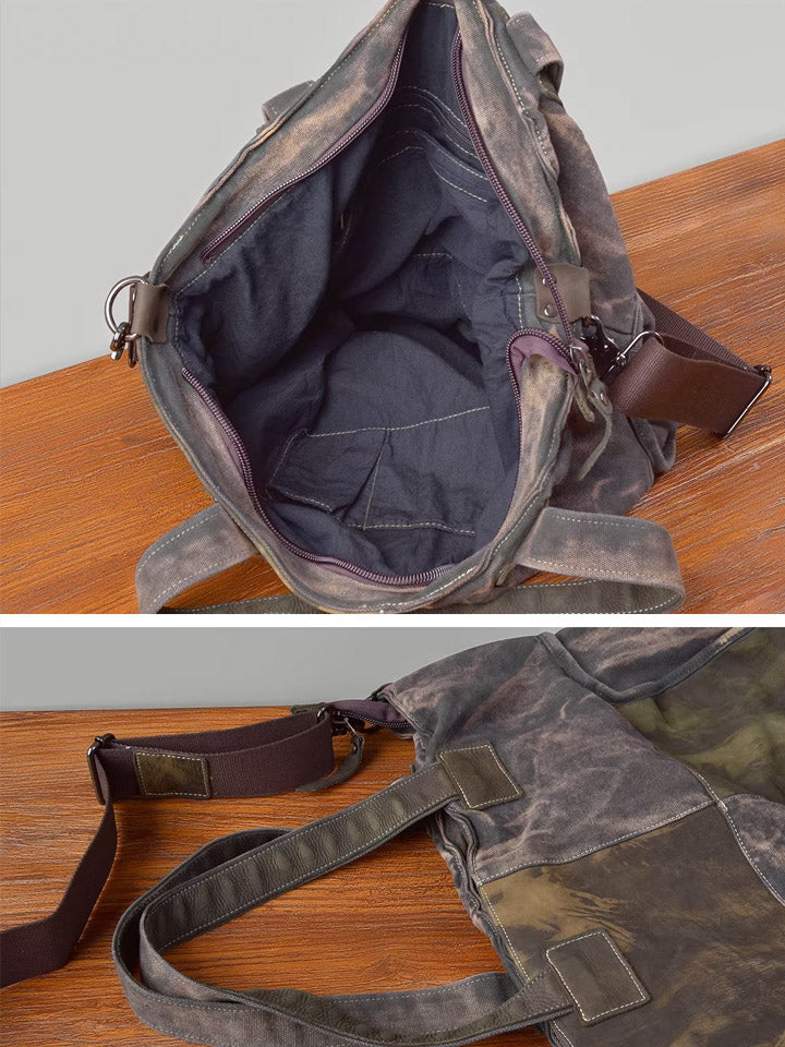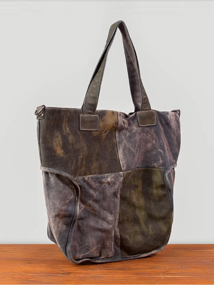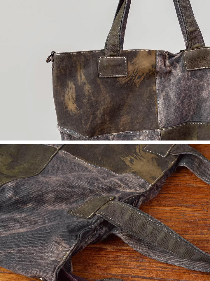 03046 Borsa tote in tela vintage con cuciture in pelle