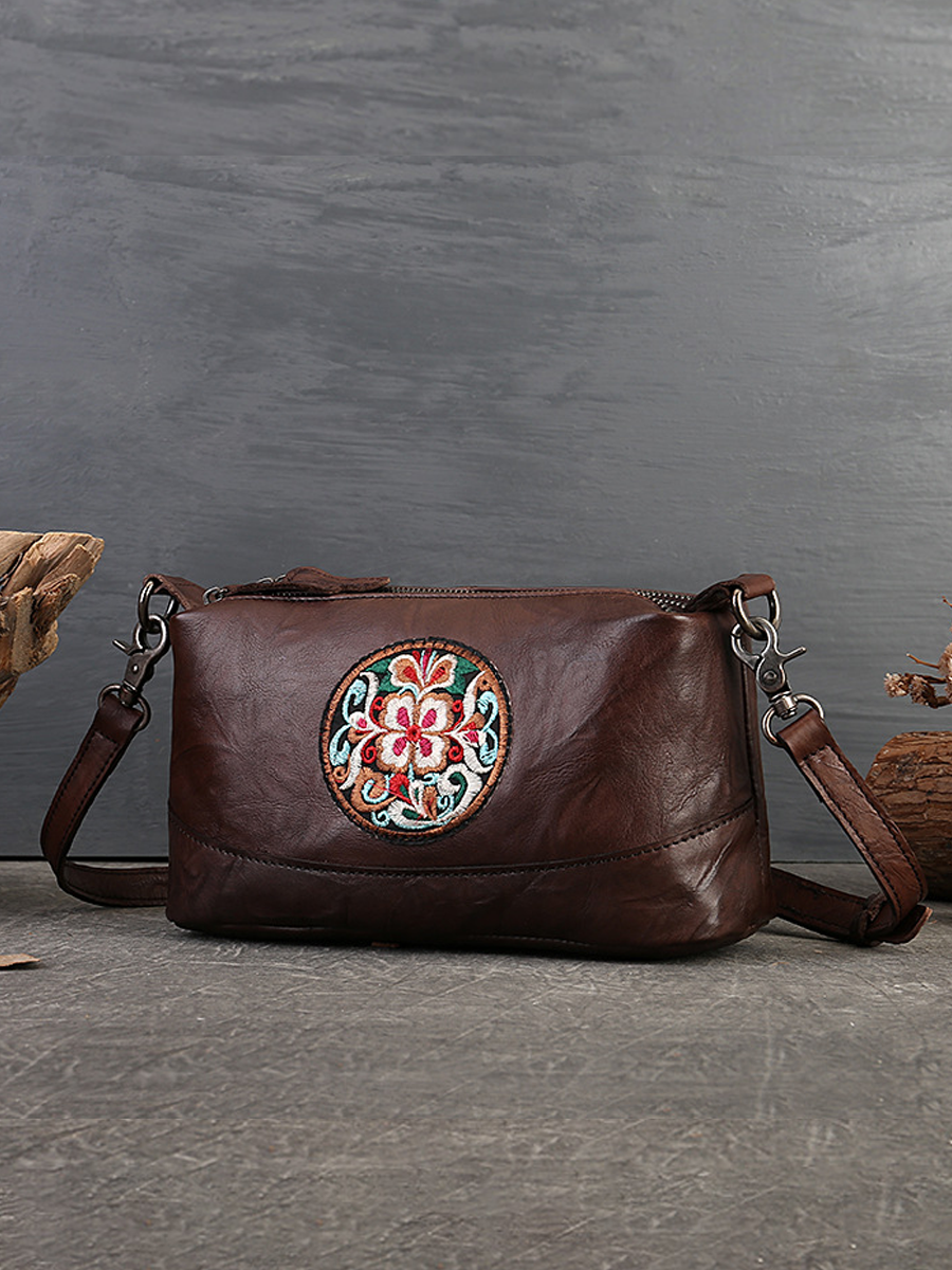 • In evidenza: Cuciture; Ricami floreali; Strati di pelle; Stile vintage; Realizzato a mano;