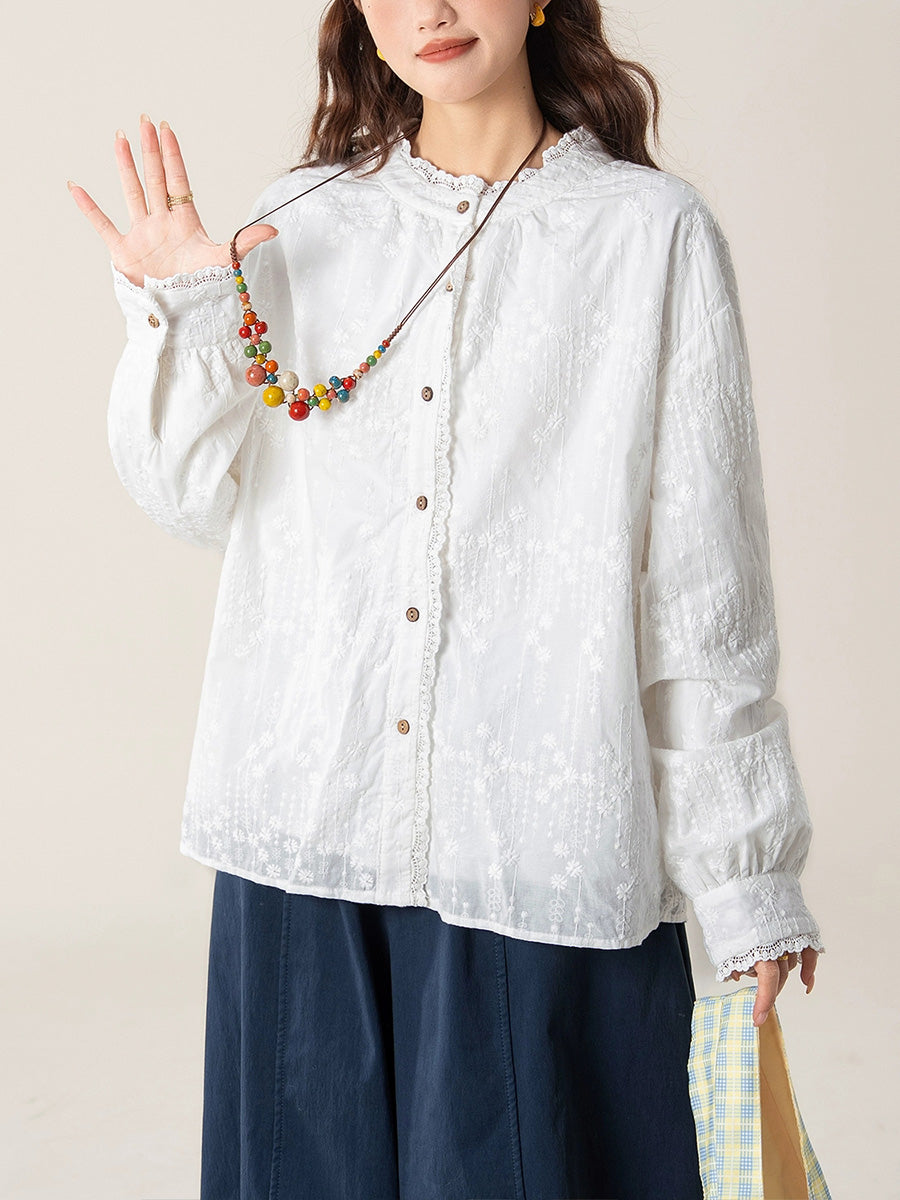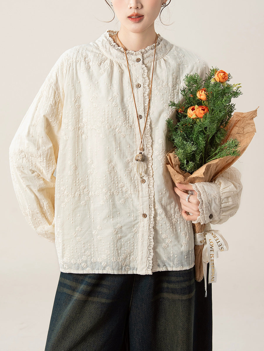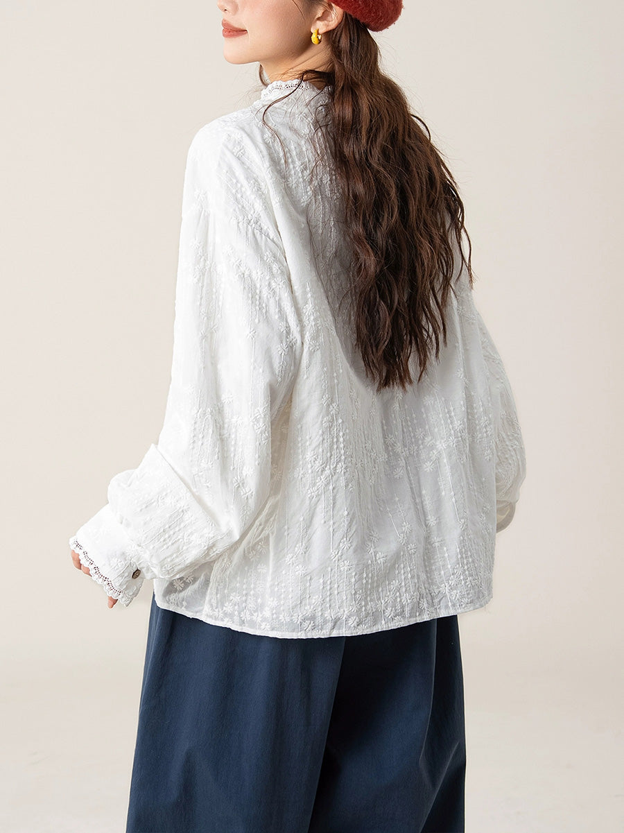 Camicia da donna con colletto rialzato e ricamo autunnale artistico