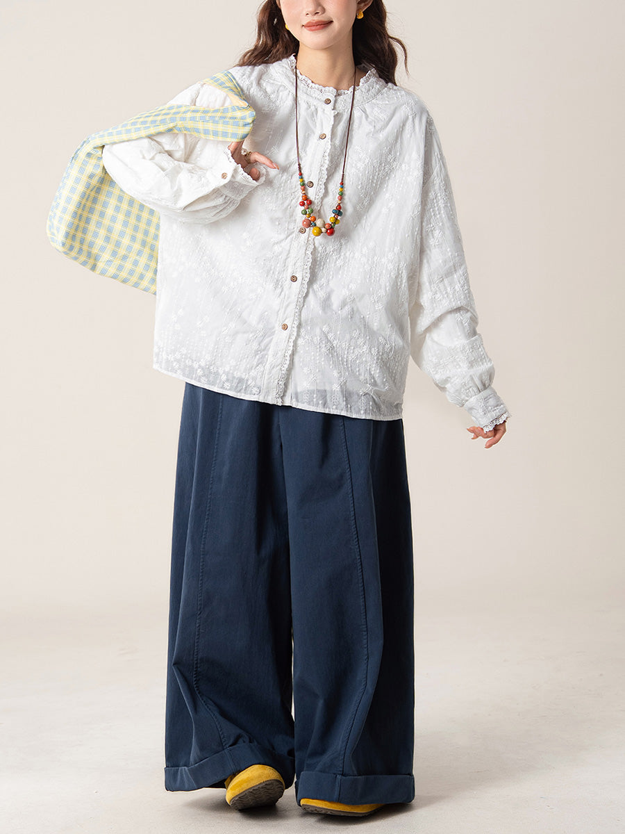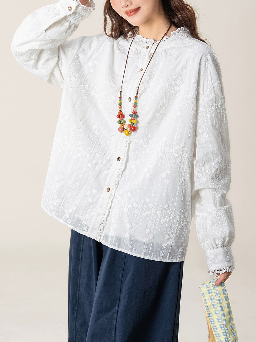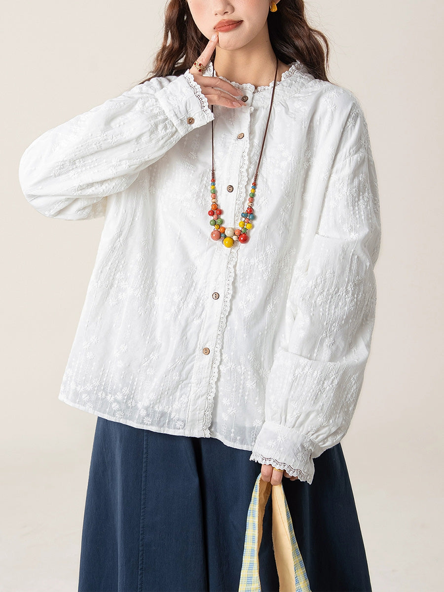 Camicia da donna con colletto rialzato e ricamo autunnale artistico