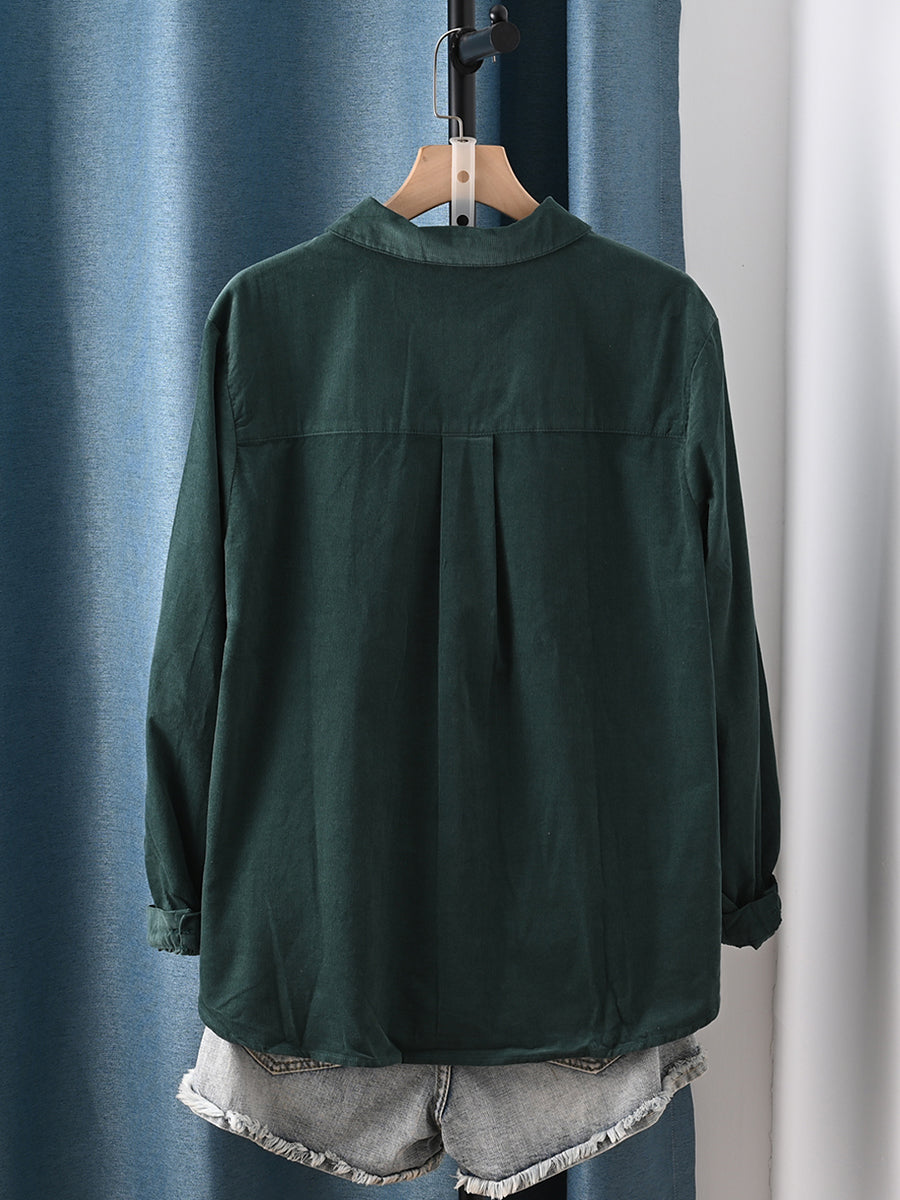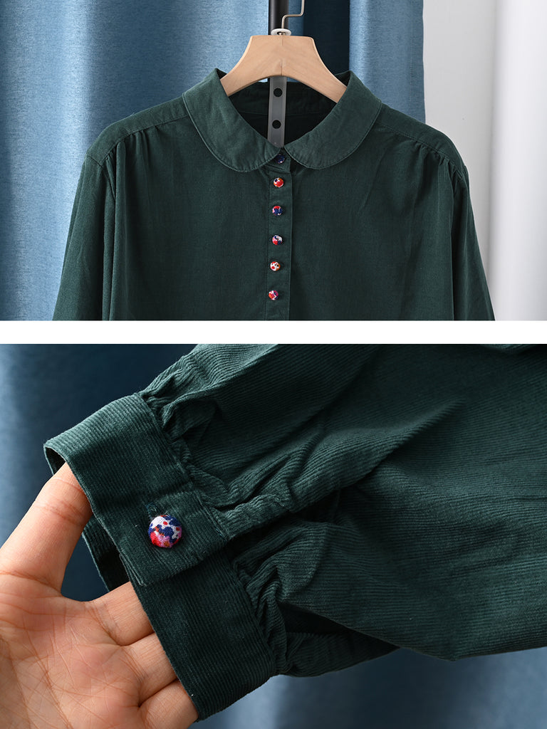 Camicia da donna in velluto a coste con bottoni colorati e artistici