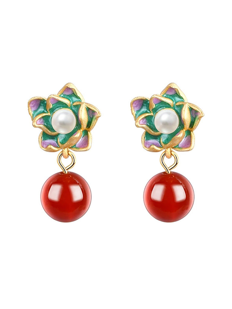 Orecchini da donna in argento 925 con fiori artistici in giada
