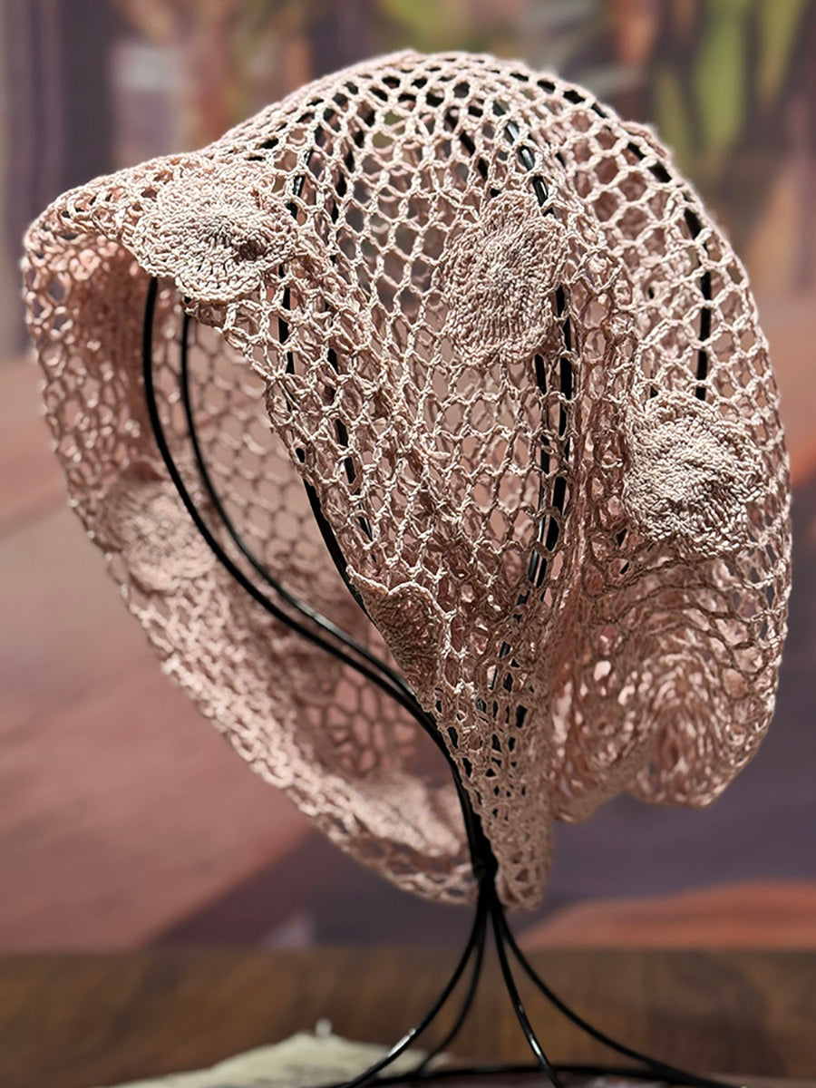 Berretto morbido da donna lavorato a maglia con motivo floreale artistico