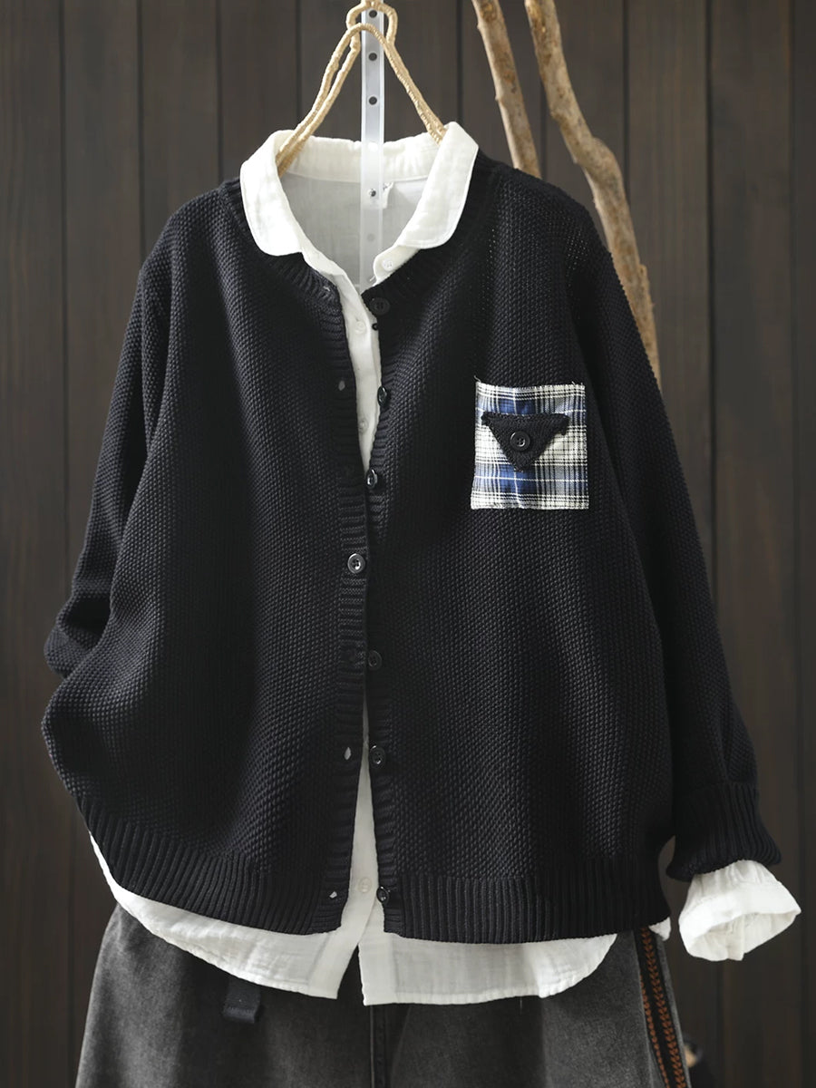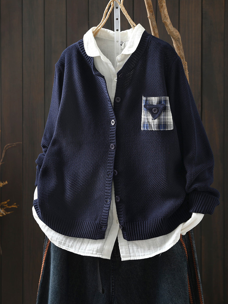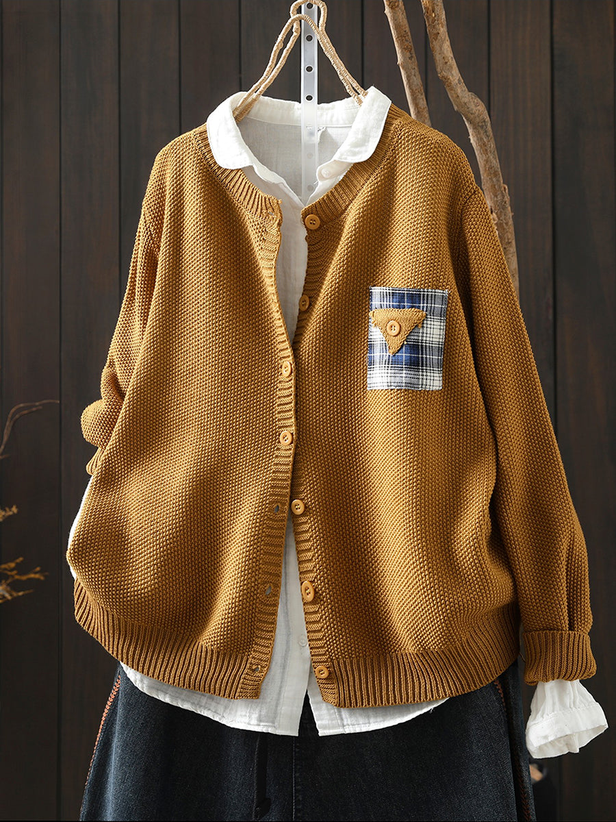 Cardigan con scollo a V e toppa primaverile artistica da donna