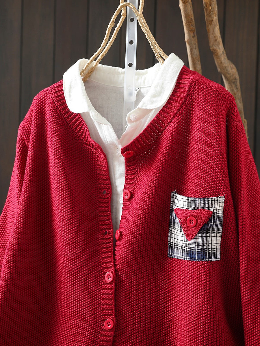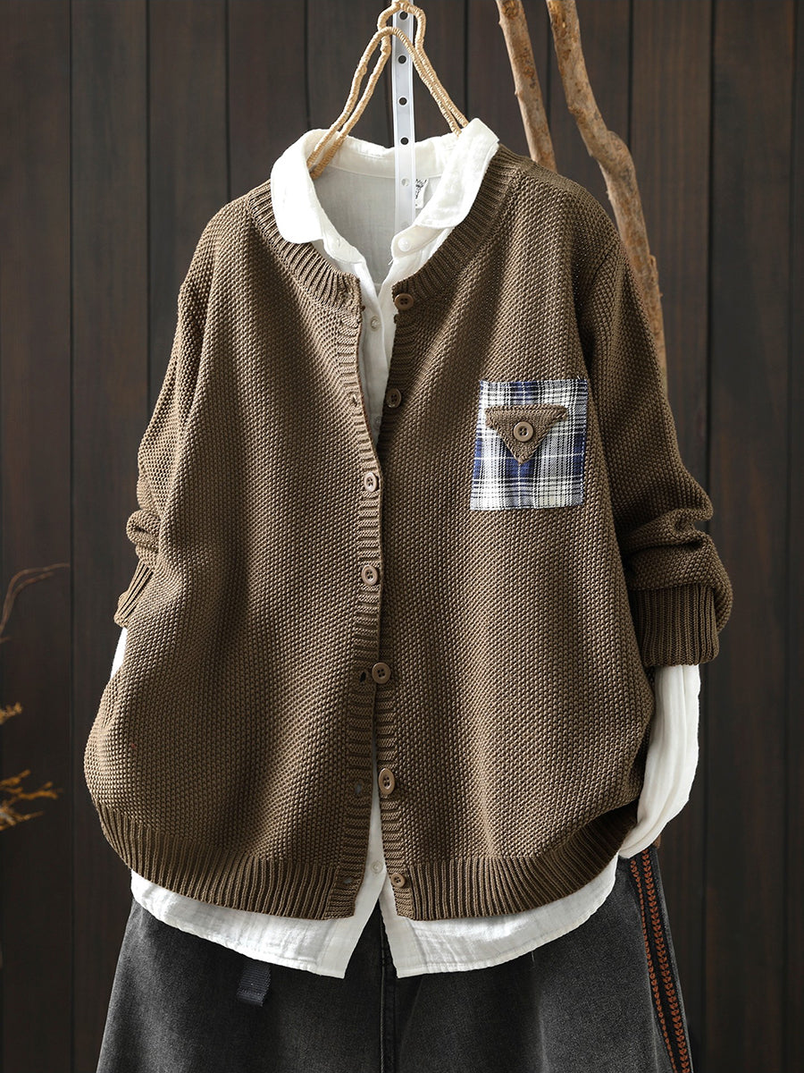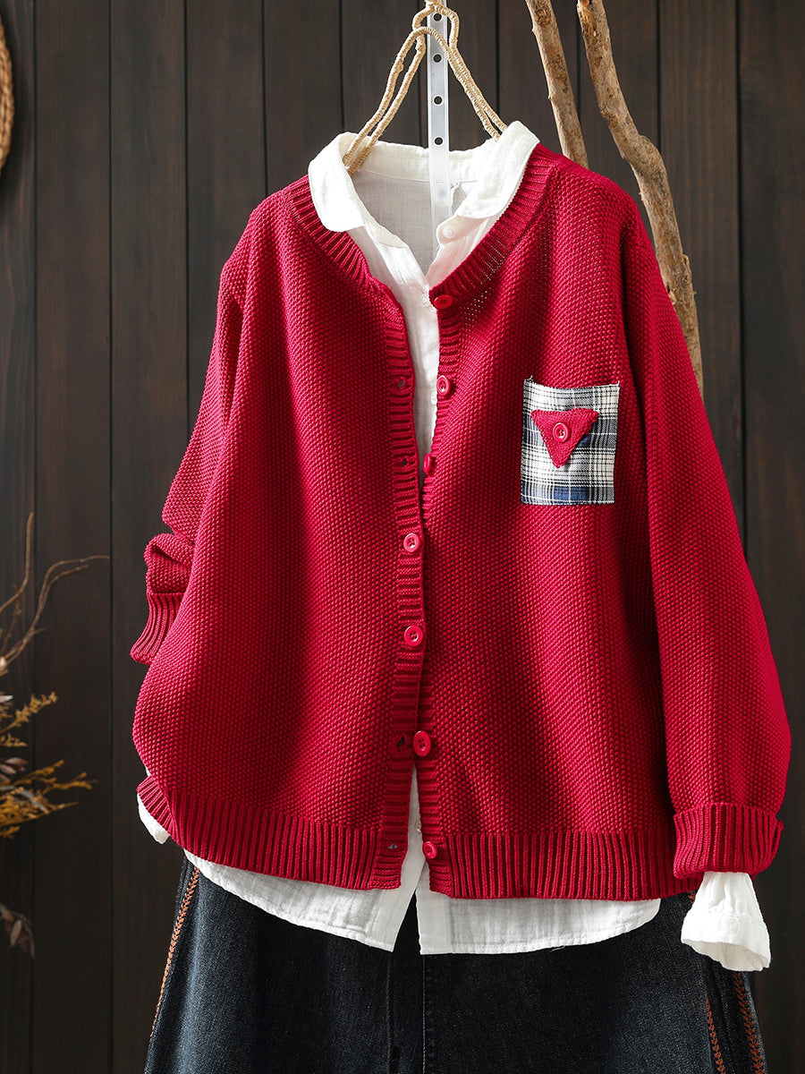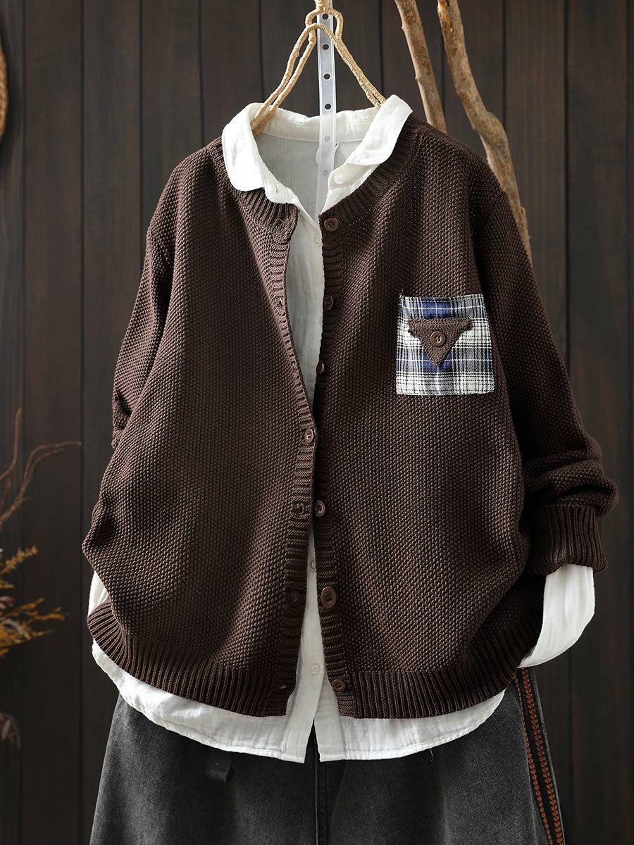 Cardigan con scollo a V e toppa primaverile artistica da donna