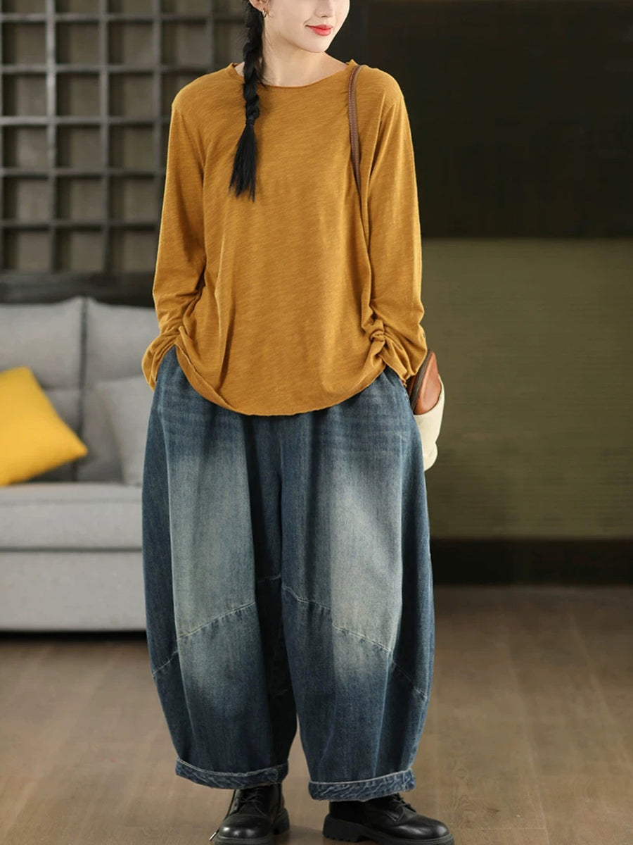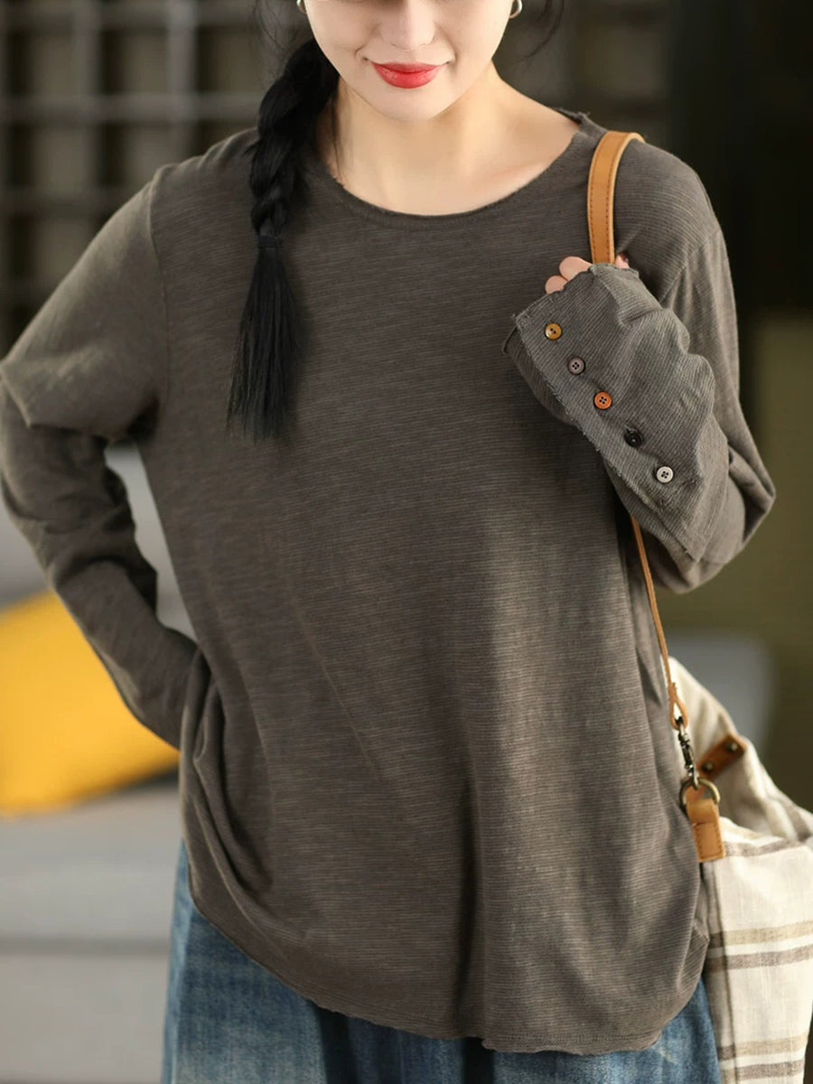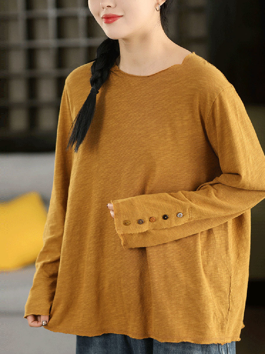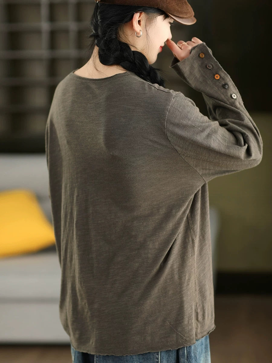 Blusa da donna in puro cotone con scollo a V e maniche lunghe Artsy Spring