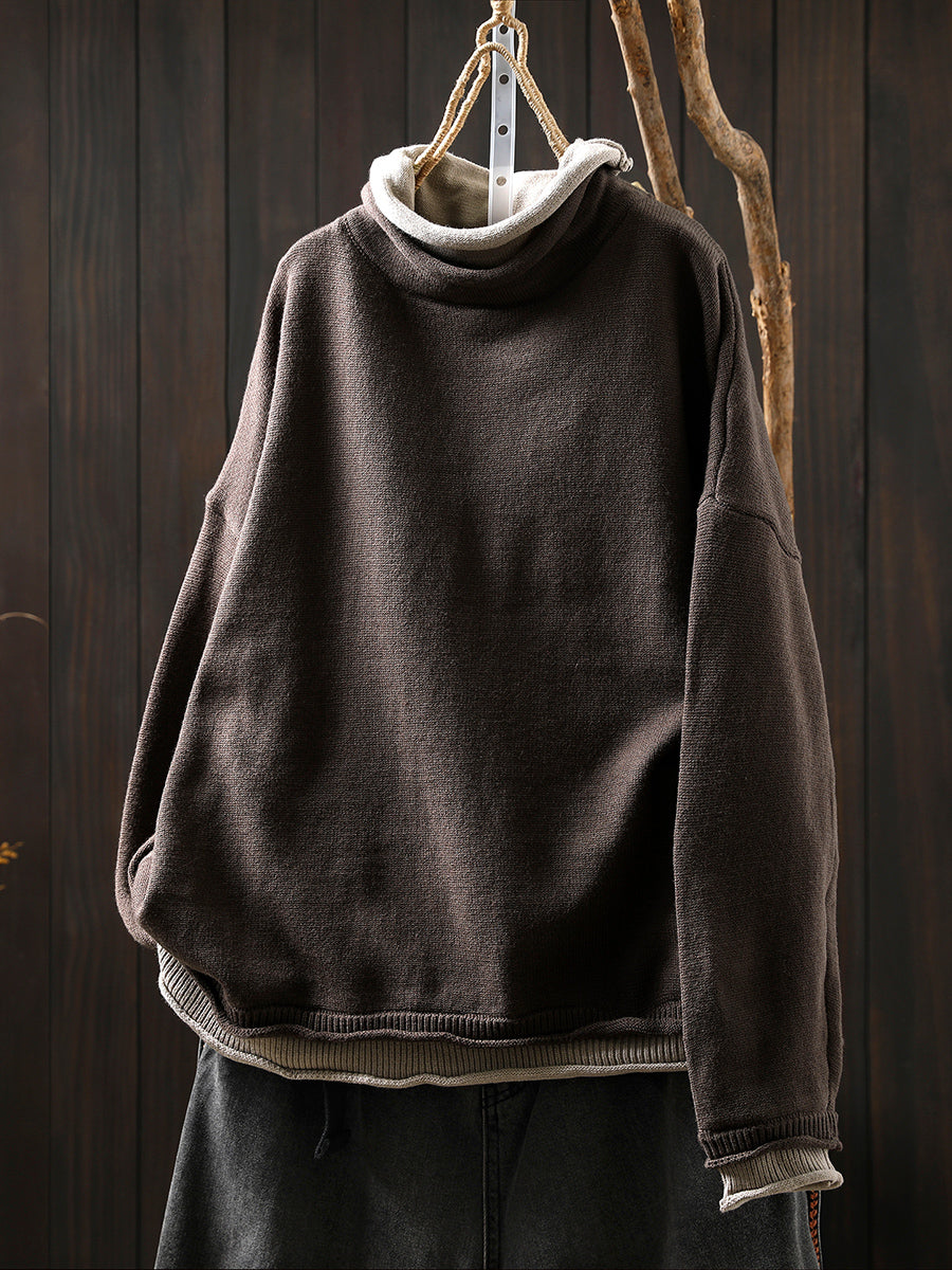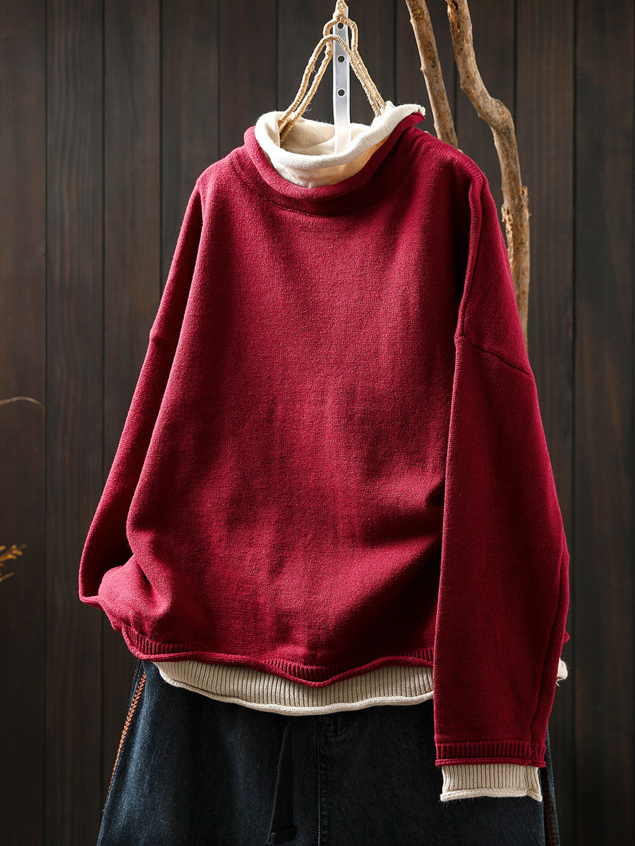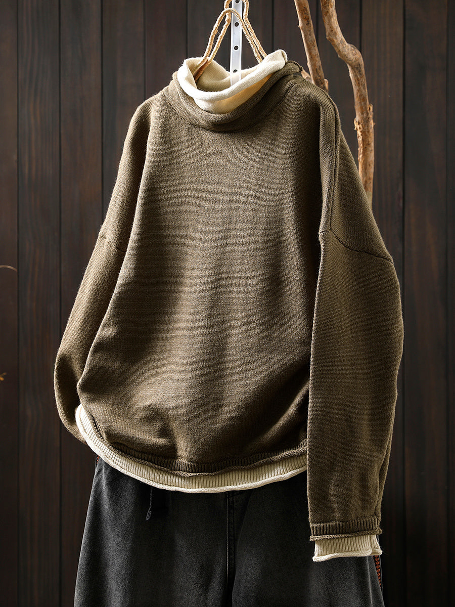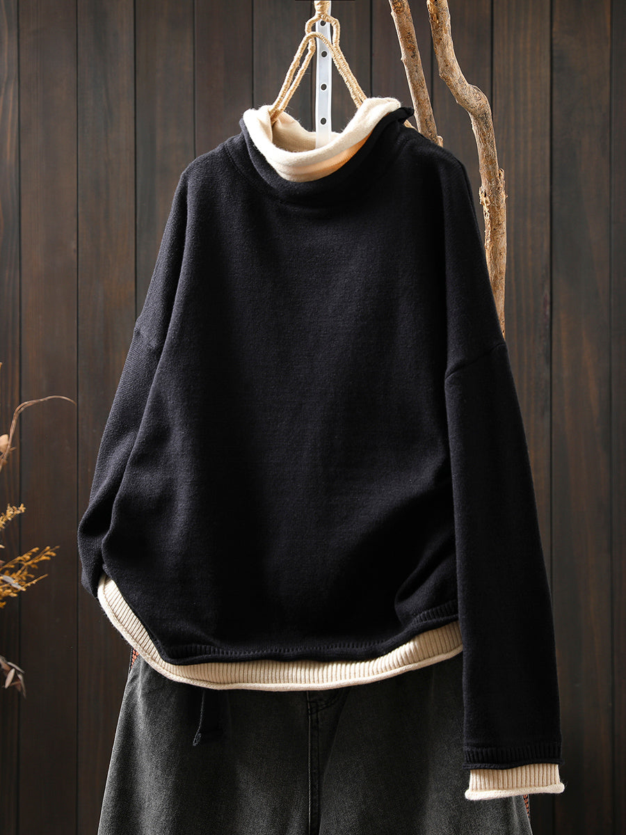 Maglione dolcevita da donna autunnale con motivo "Fake Two"