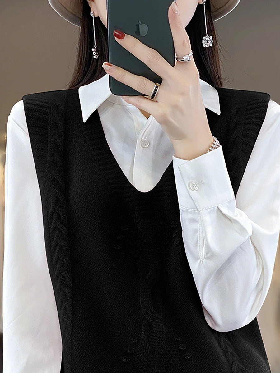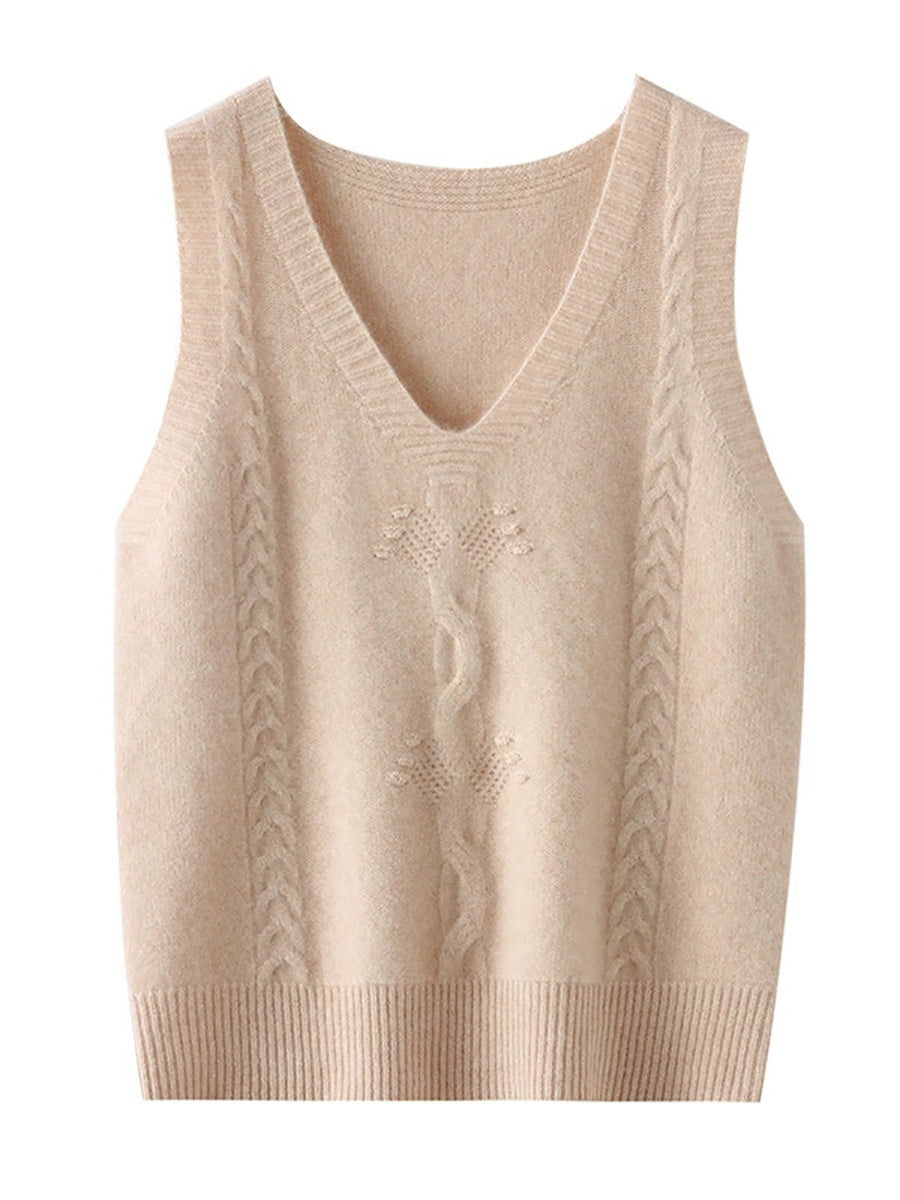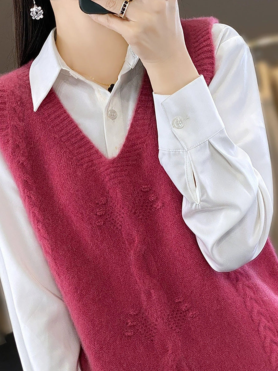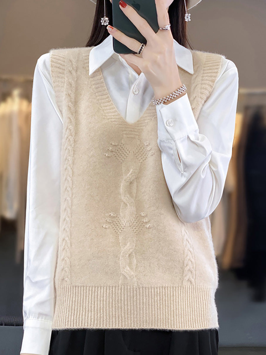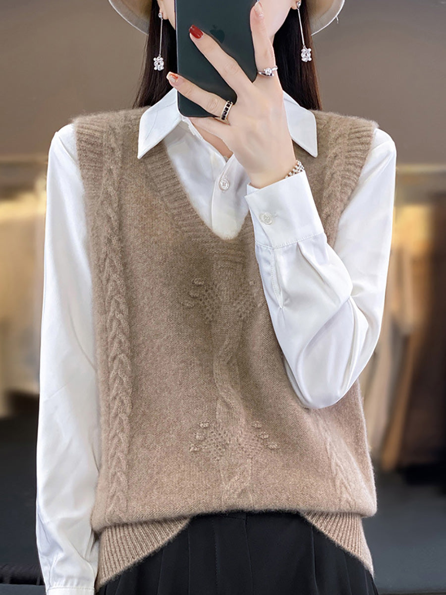 Gilet lavorato a maglia con scollo a V in jacquard artistico autunnale da donna