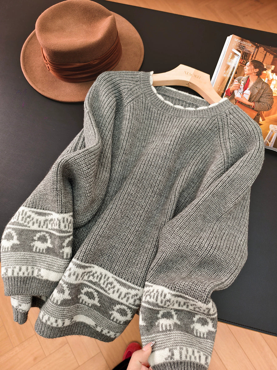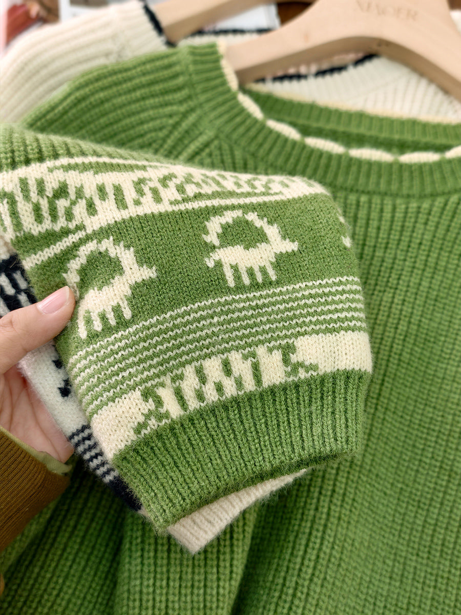 Maglione lavorato a maglia con scollo a V da donna, stile cartone animato autunnale
