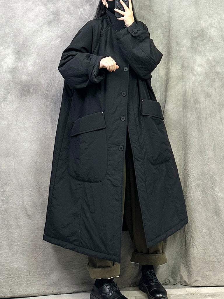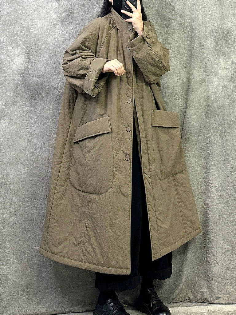 Cappotto lungo da donna, casual, autunnale, in tinta unita, con collo alto