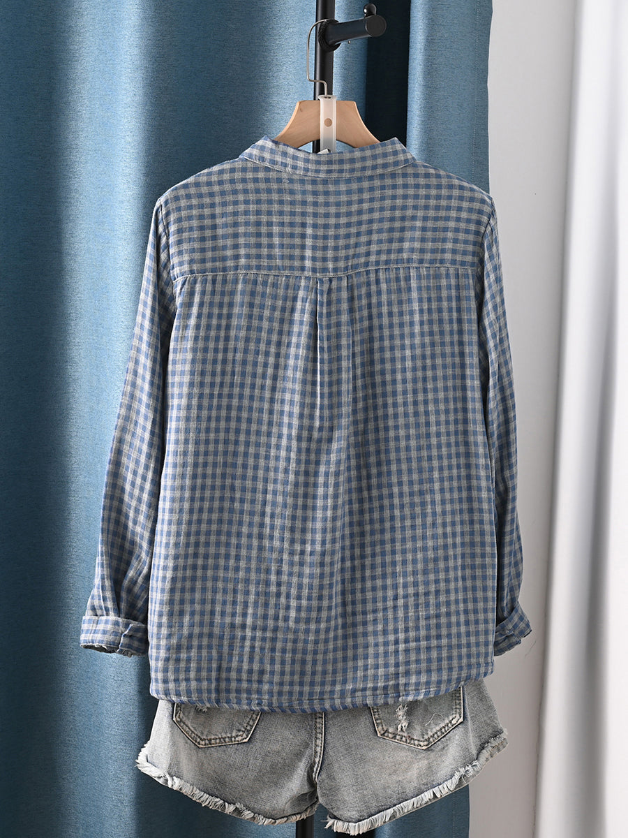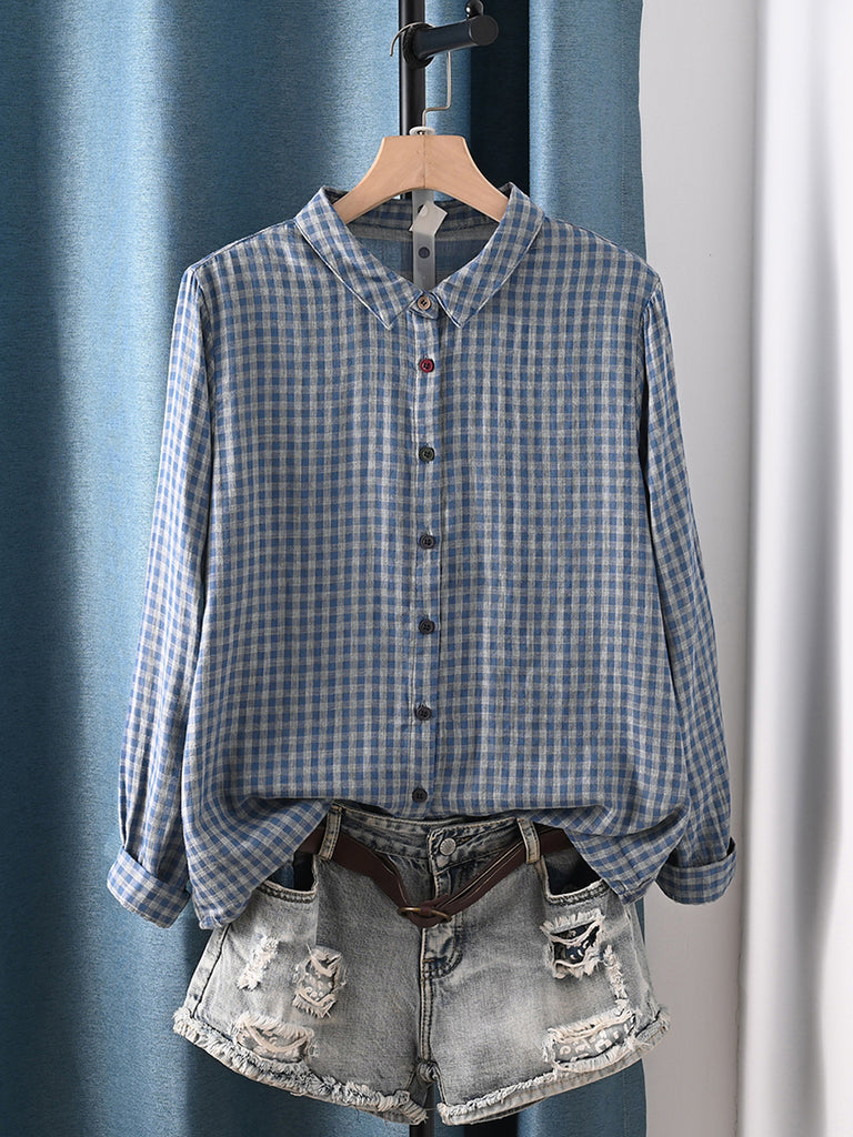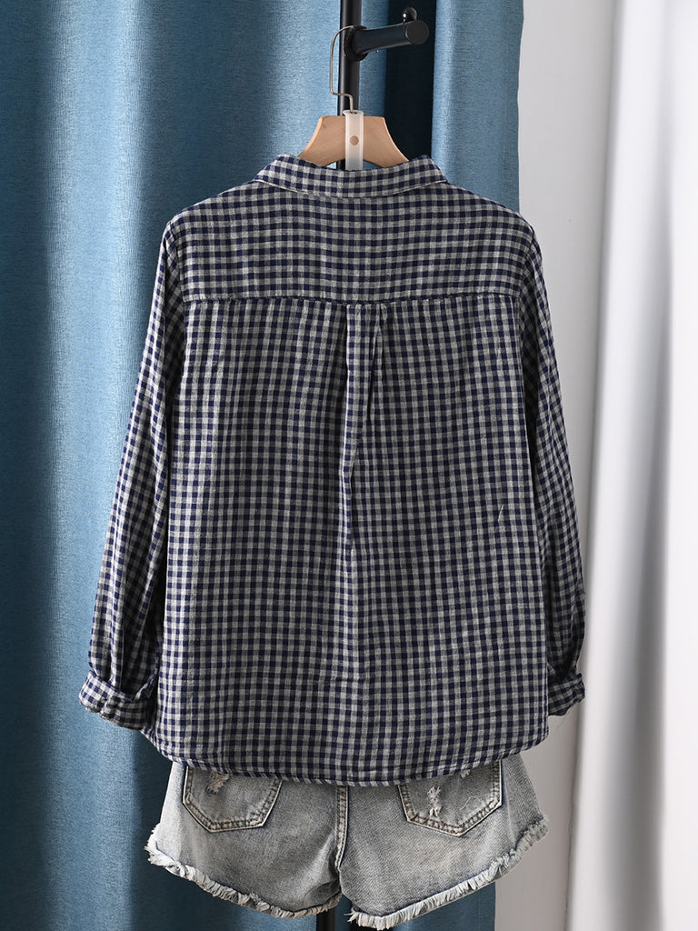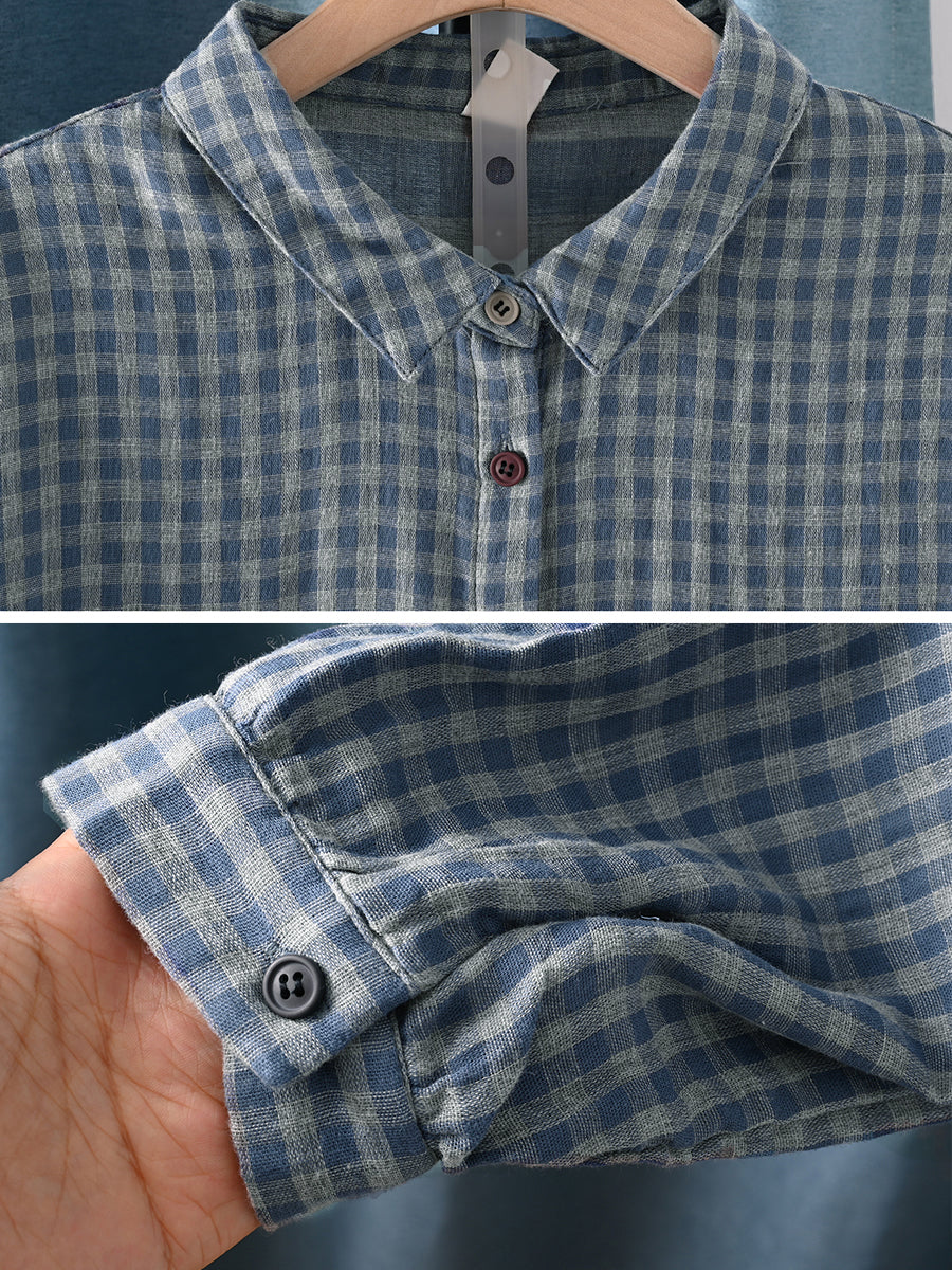 Camicia da donna autunnale a quadri con colletto rovesciato, 100% cotone