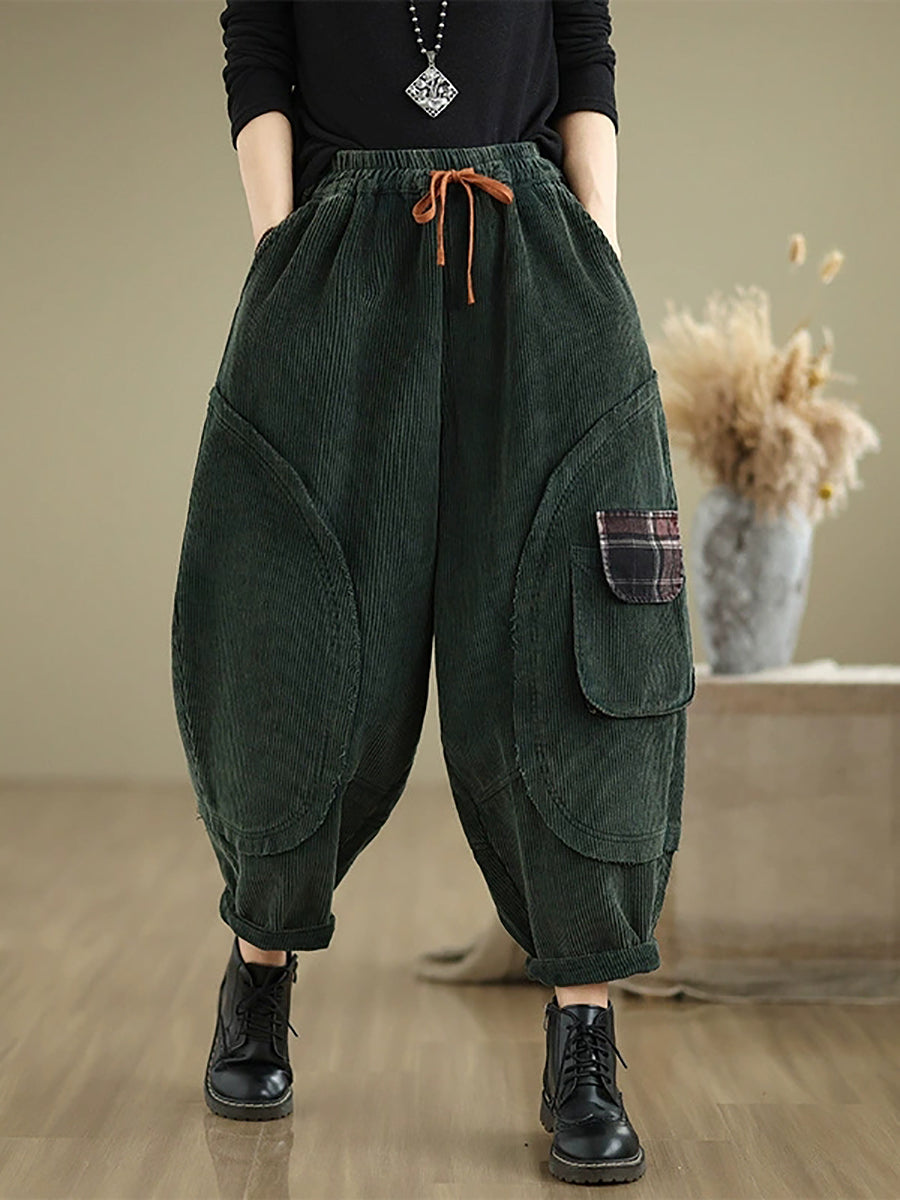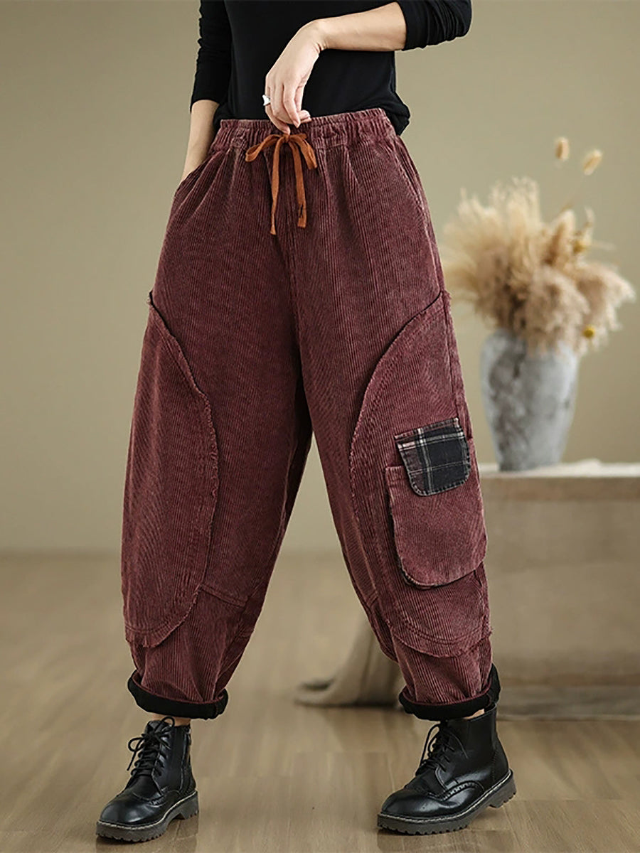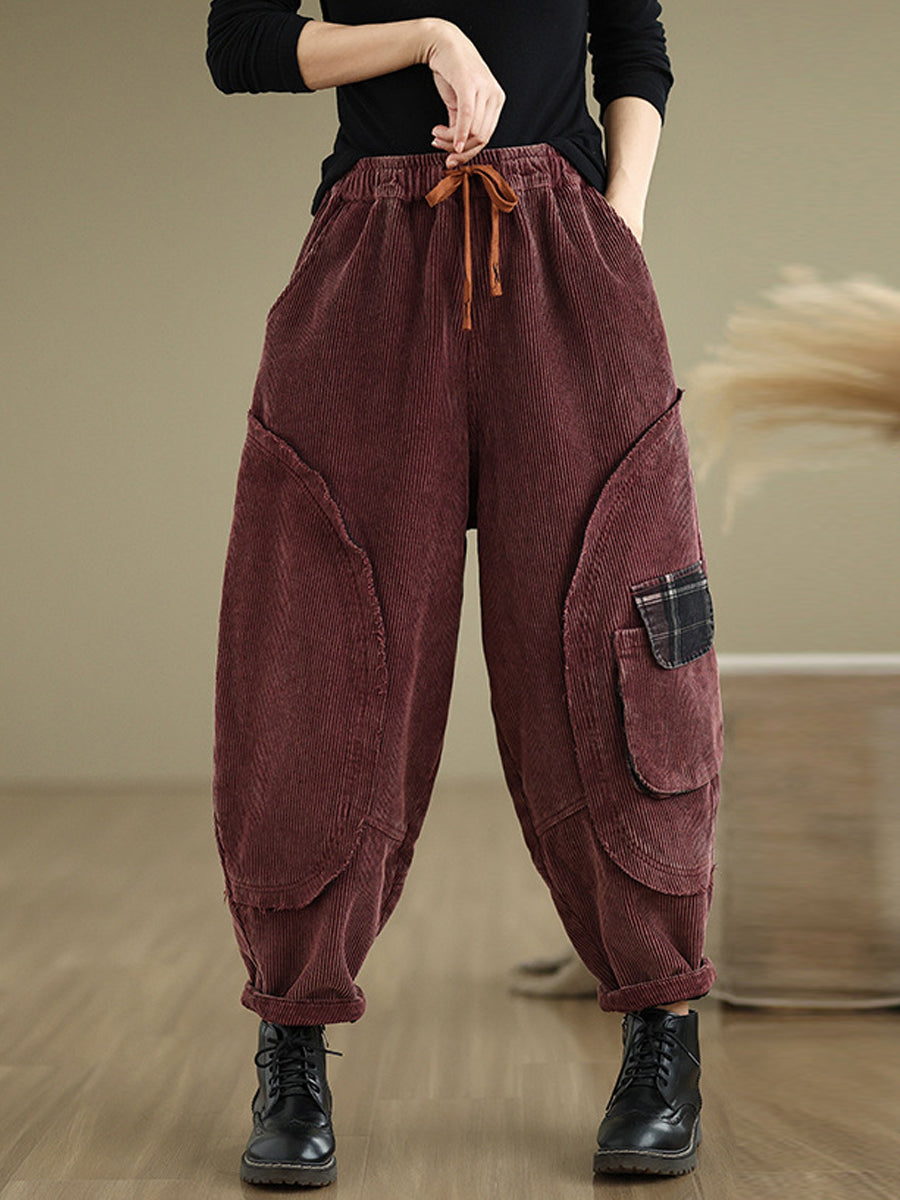 Pantaloni harem in velluto a coste color puro retrò autunnali da donna