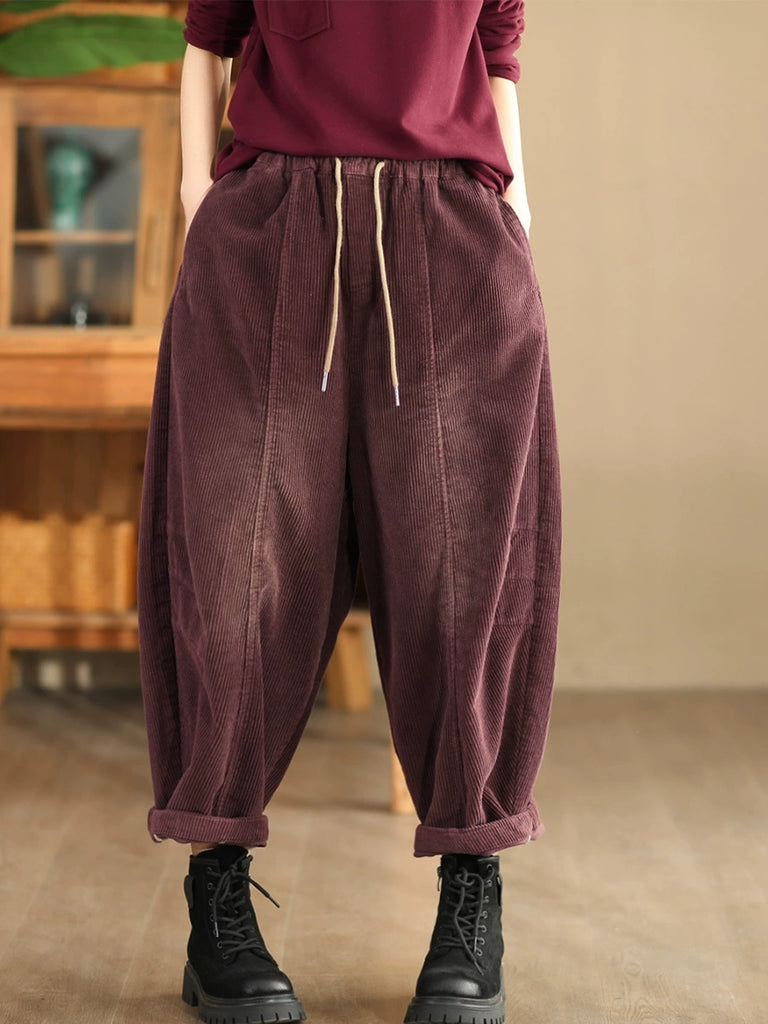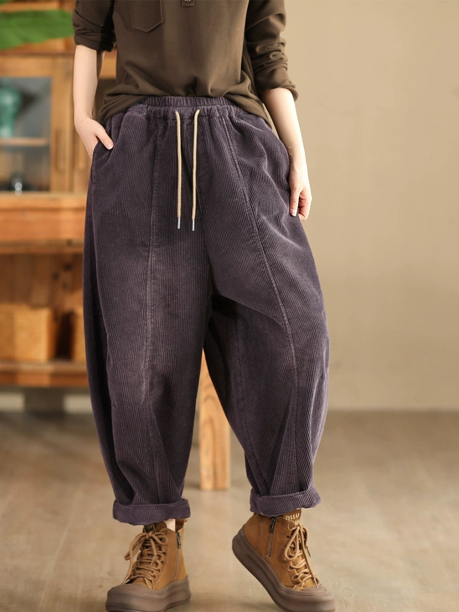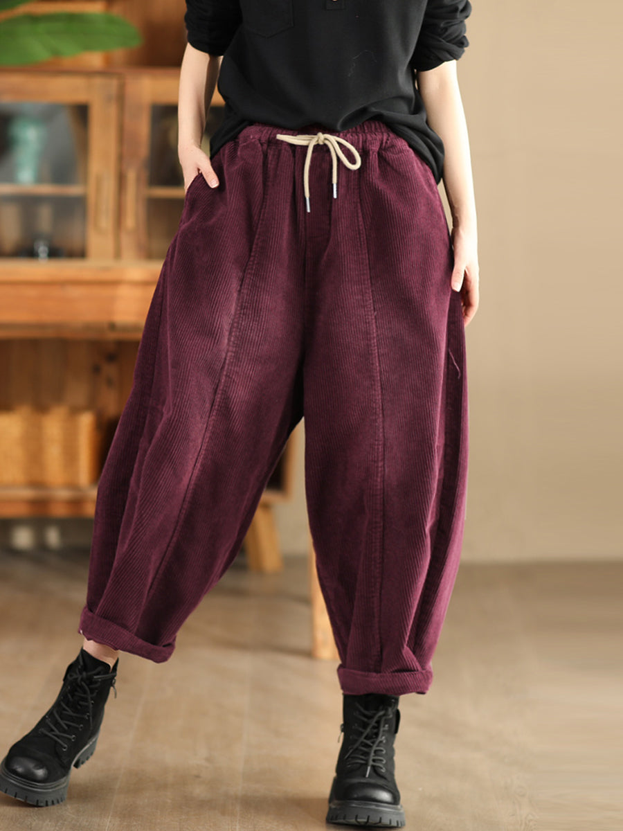 Pantaloni harem in velluto a coste color puro retrò autunnali da donna