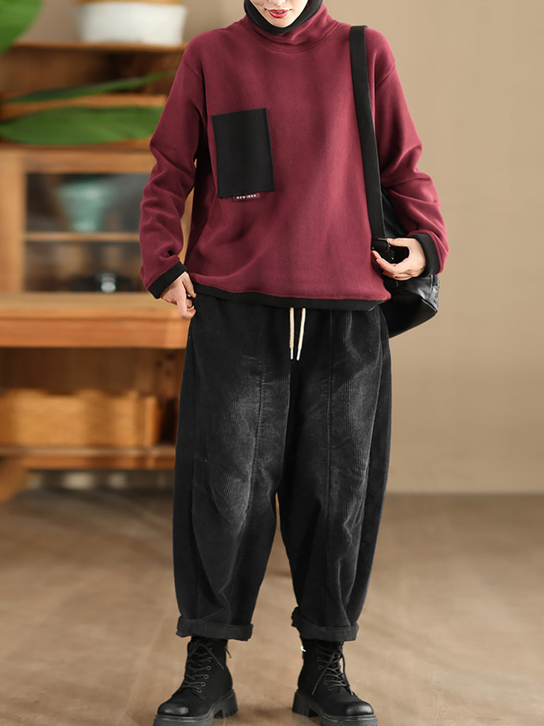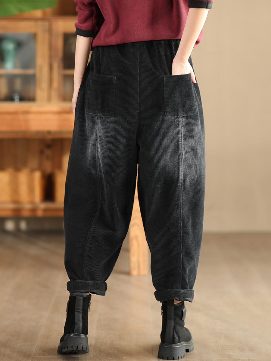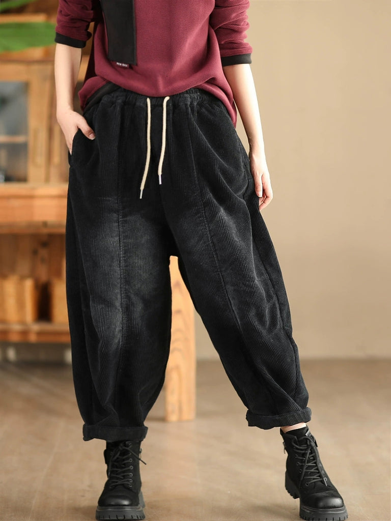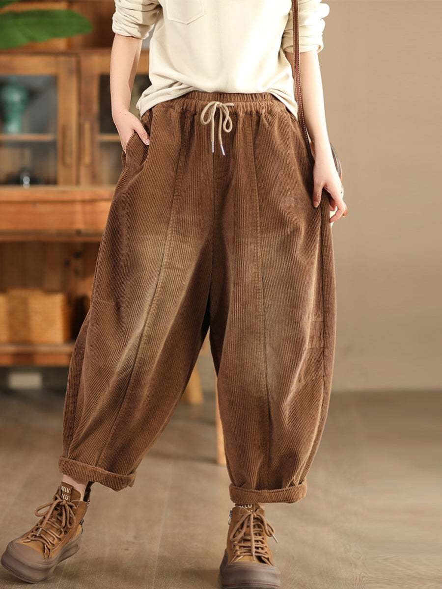 Pantaloni harem in velluto a coste color puro retrò autunnali da donna