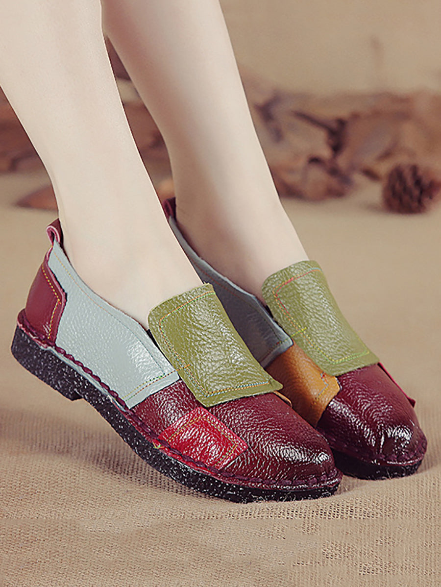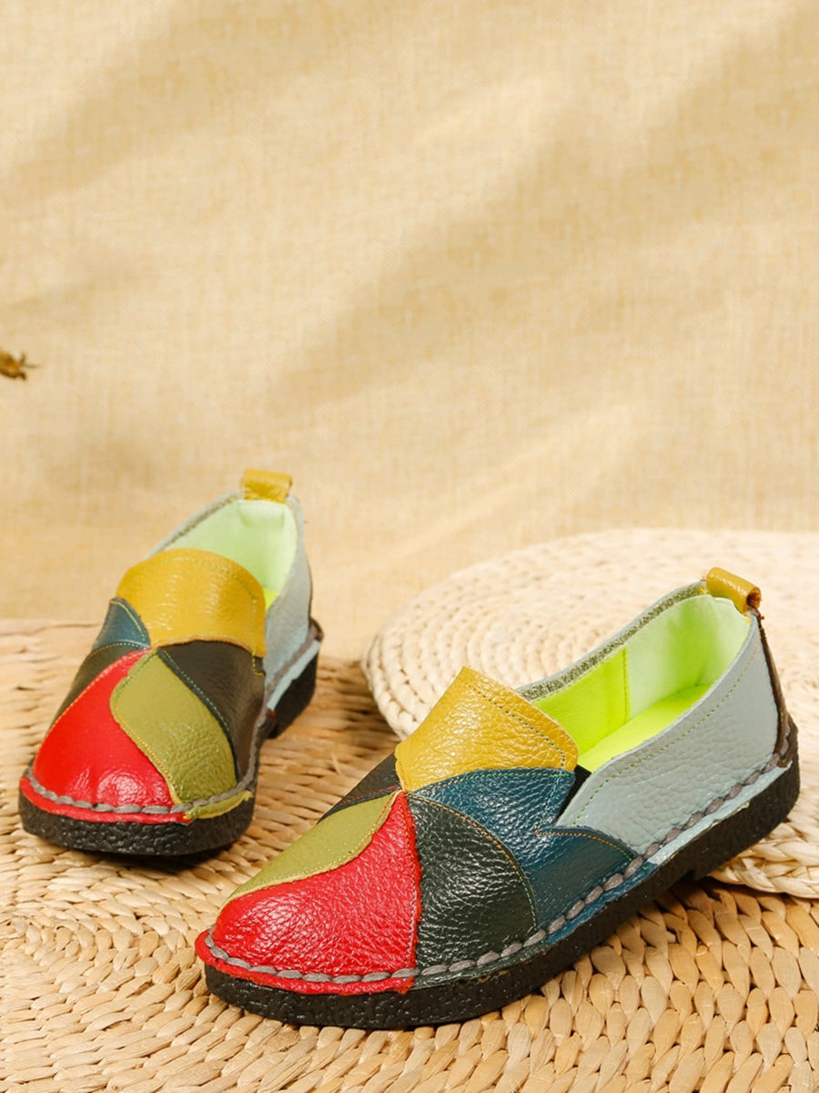 Scarpe basse casual in pelle color block da donna