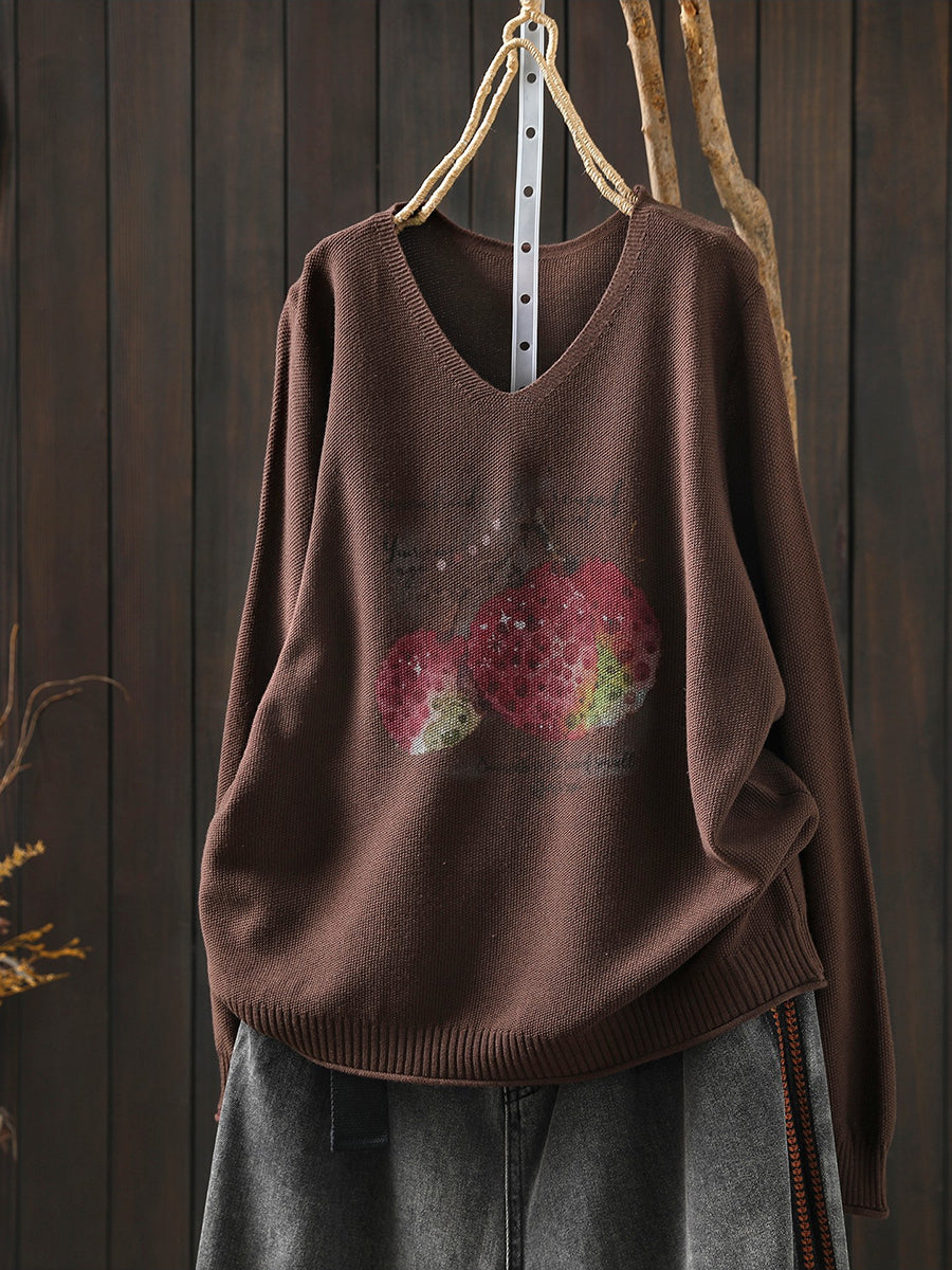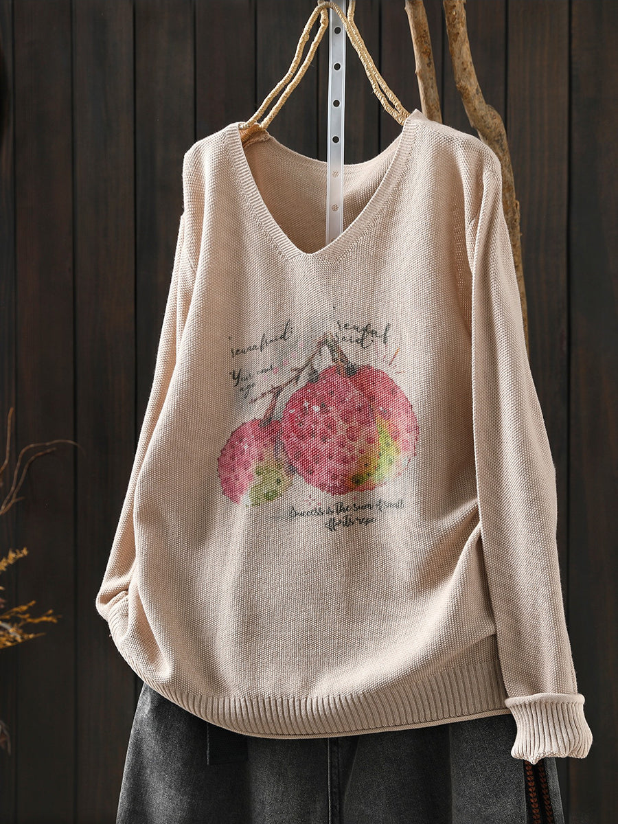 Blusa casual primaverile con scollo a V e motivo litchi da donna