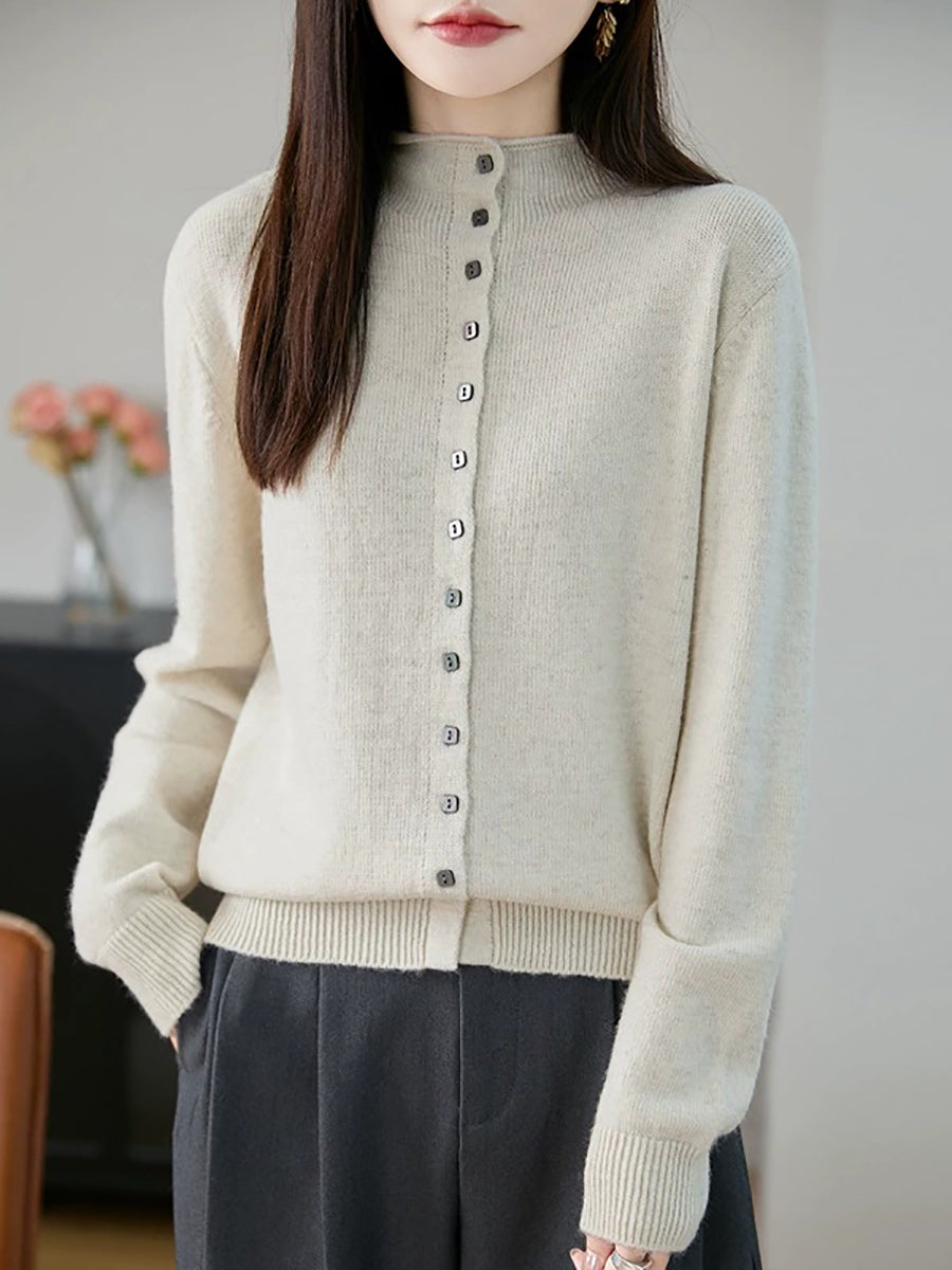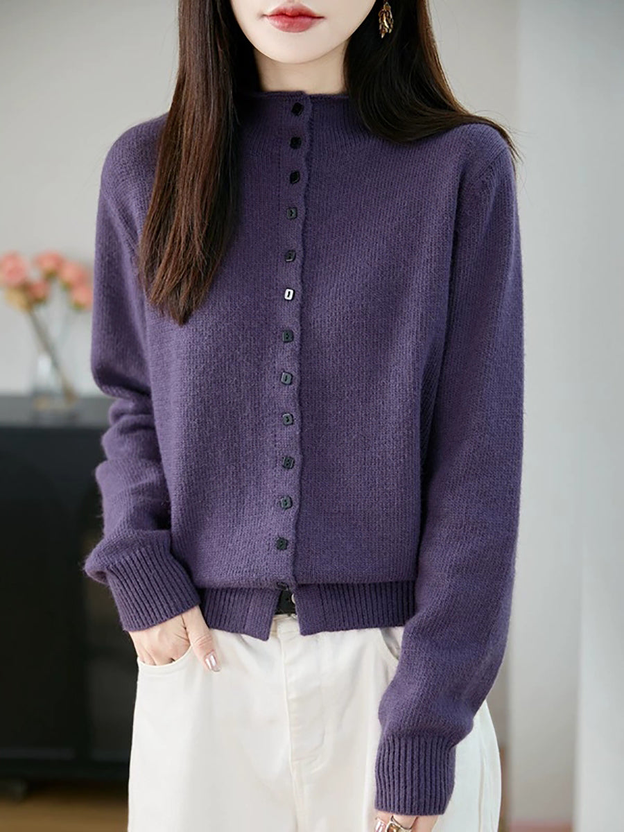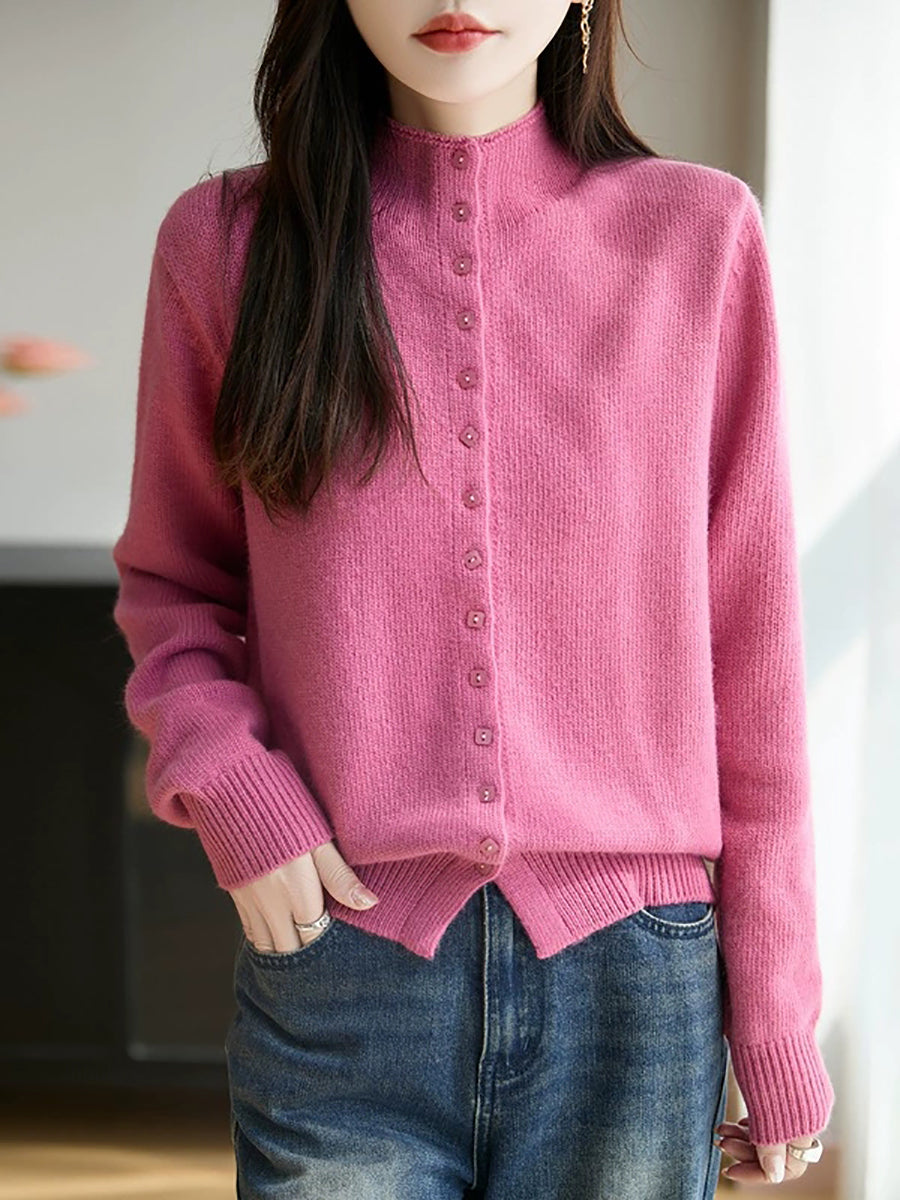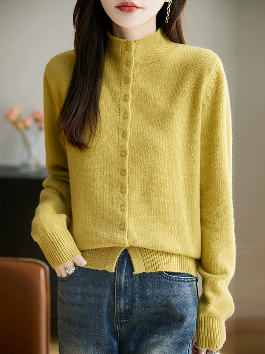 Maglione a collo alto casual primaverile da donna, colore puro