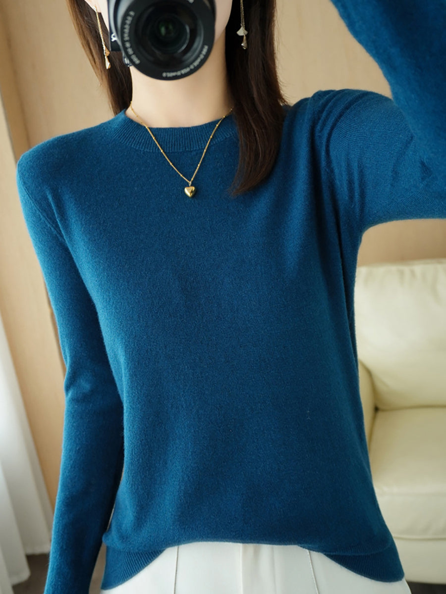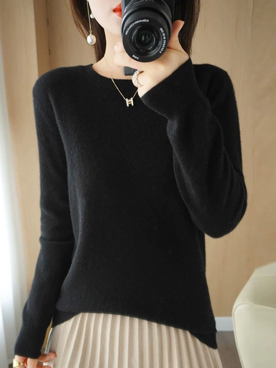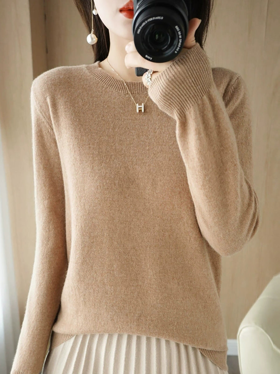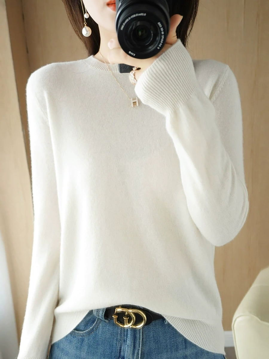 Maglione casual primaverile da donna con scollo a V, colore puro