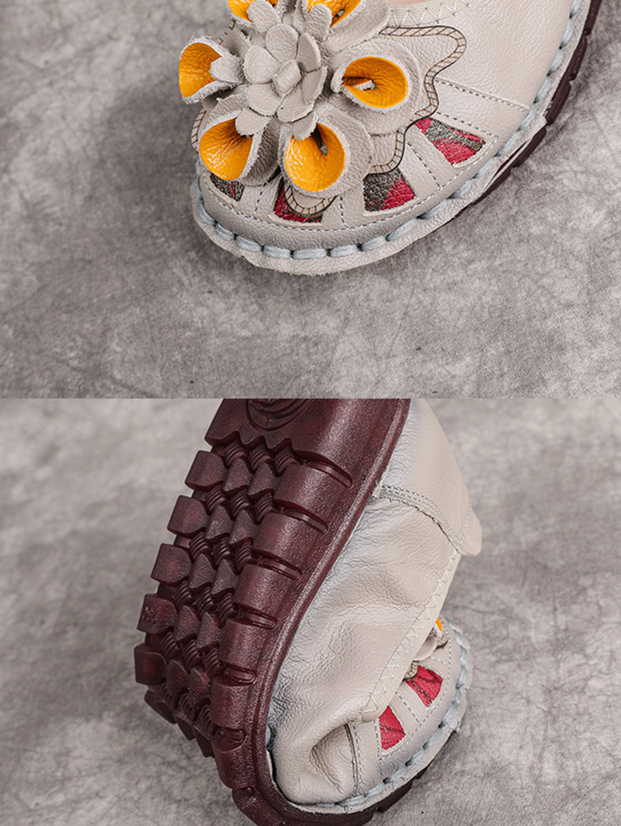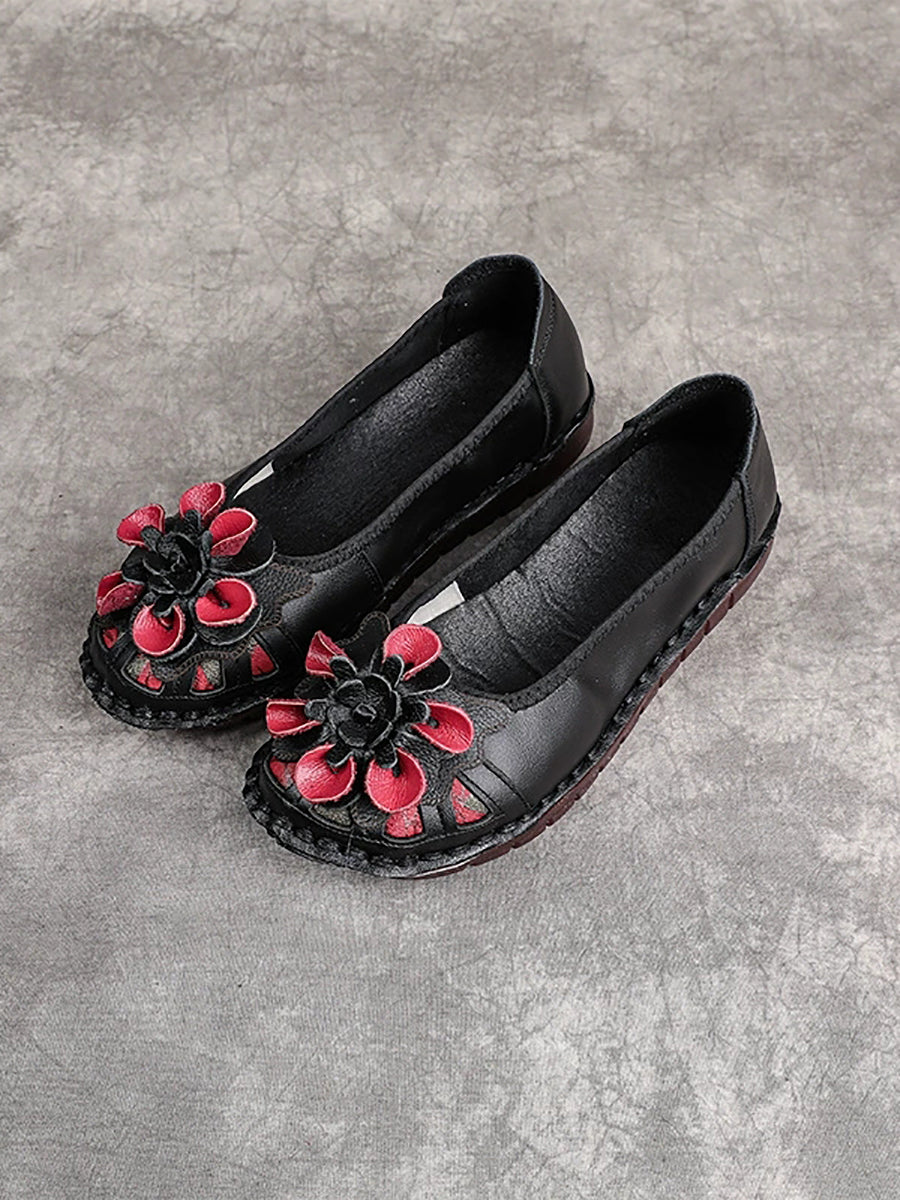 Scarpe da donna etniche in vera pelle con tacco basso e motivo floreale