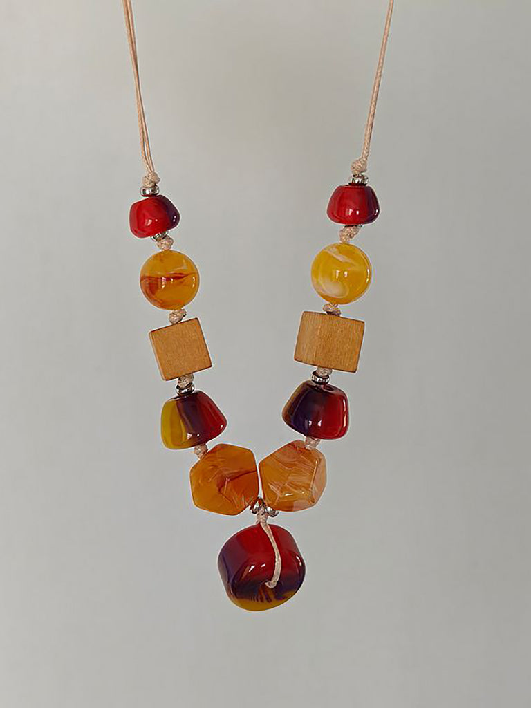 Collana con ciondolo geometrico etnico in resina intrecciata da donna