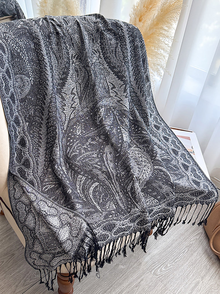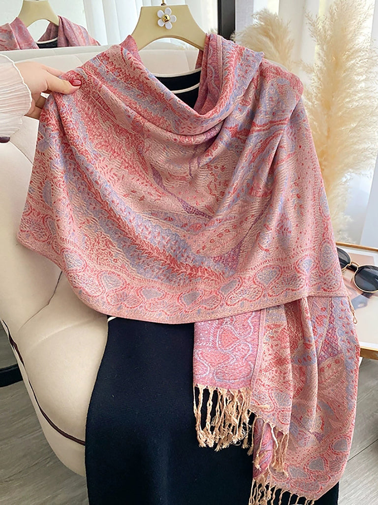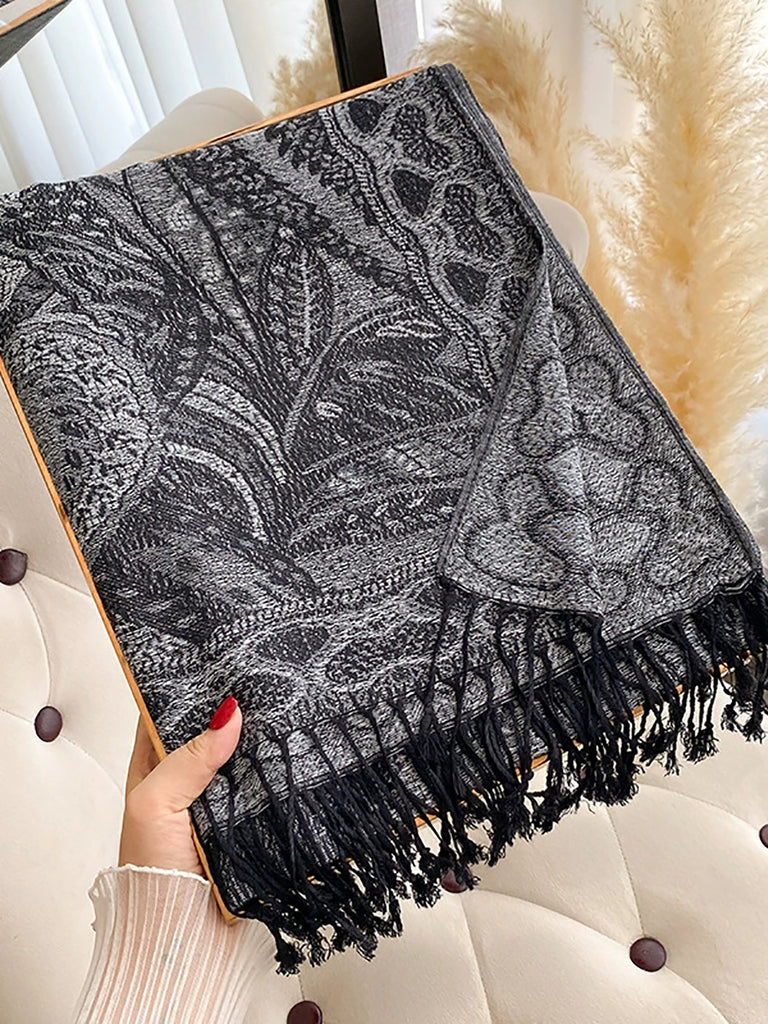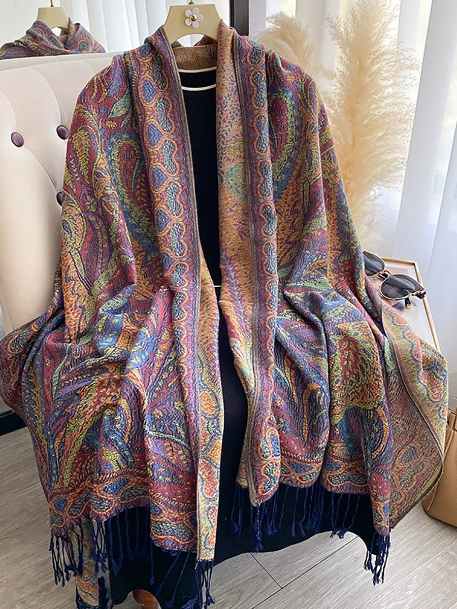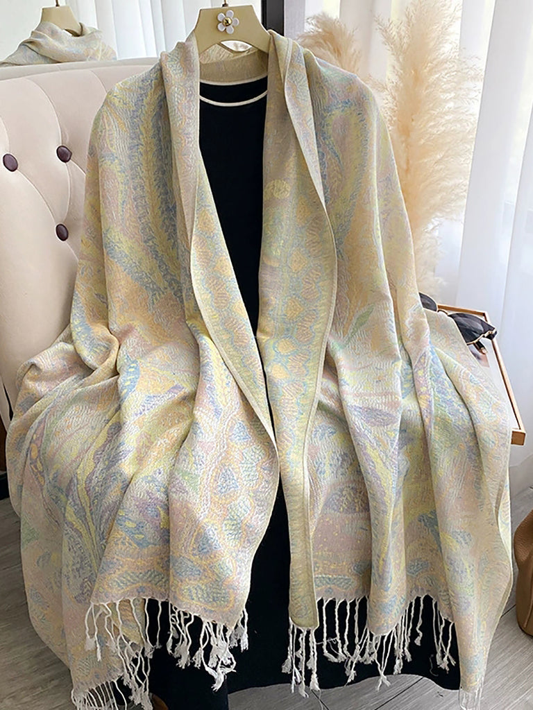 Sciarpa scialle con nappe in jacquard etnico da donna