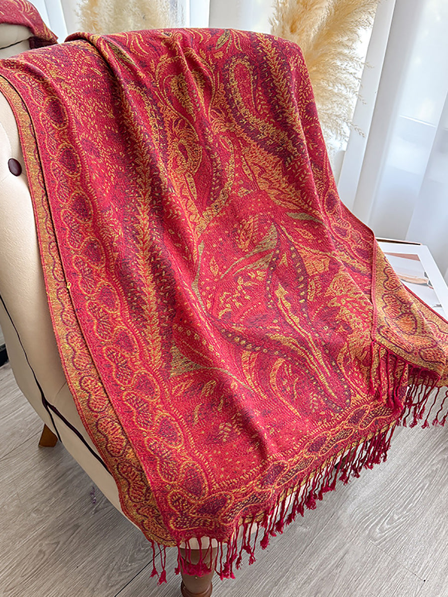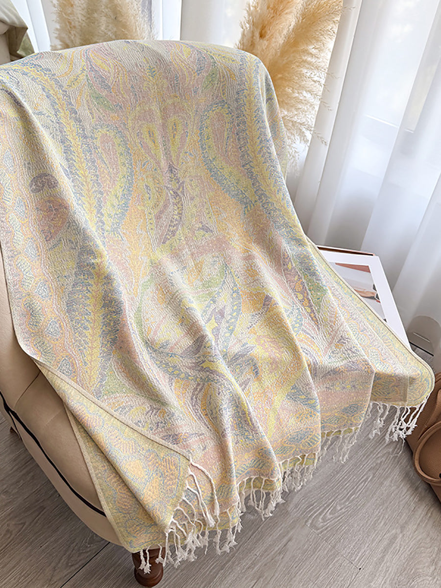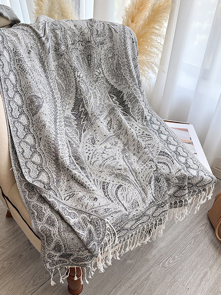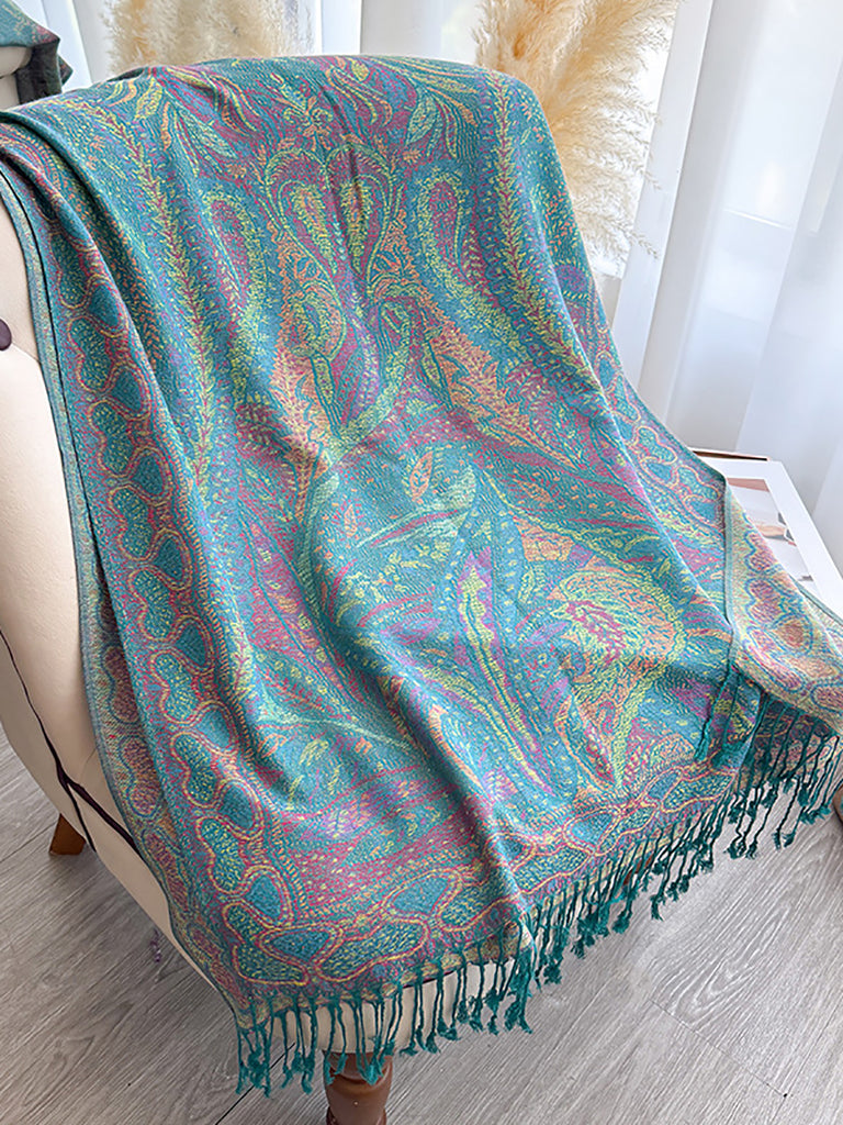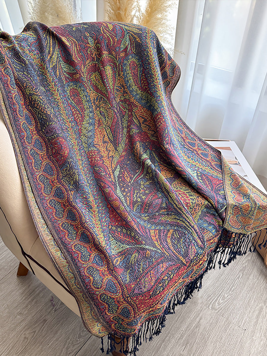 Sciarpa scialle con nappe in jacquard etnico da donna