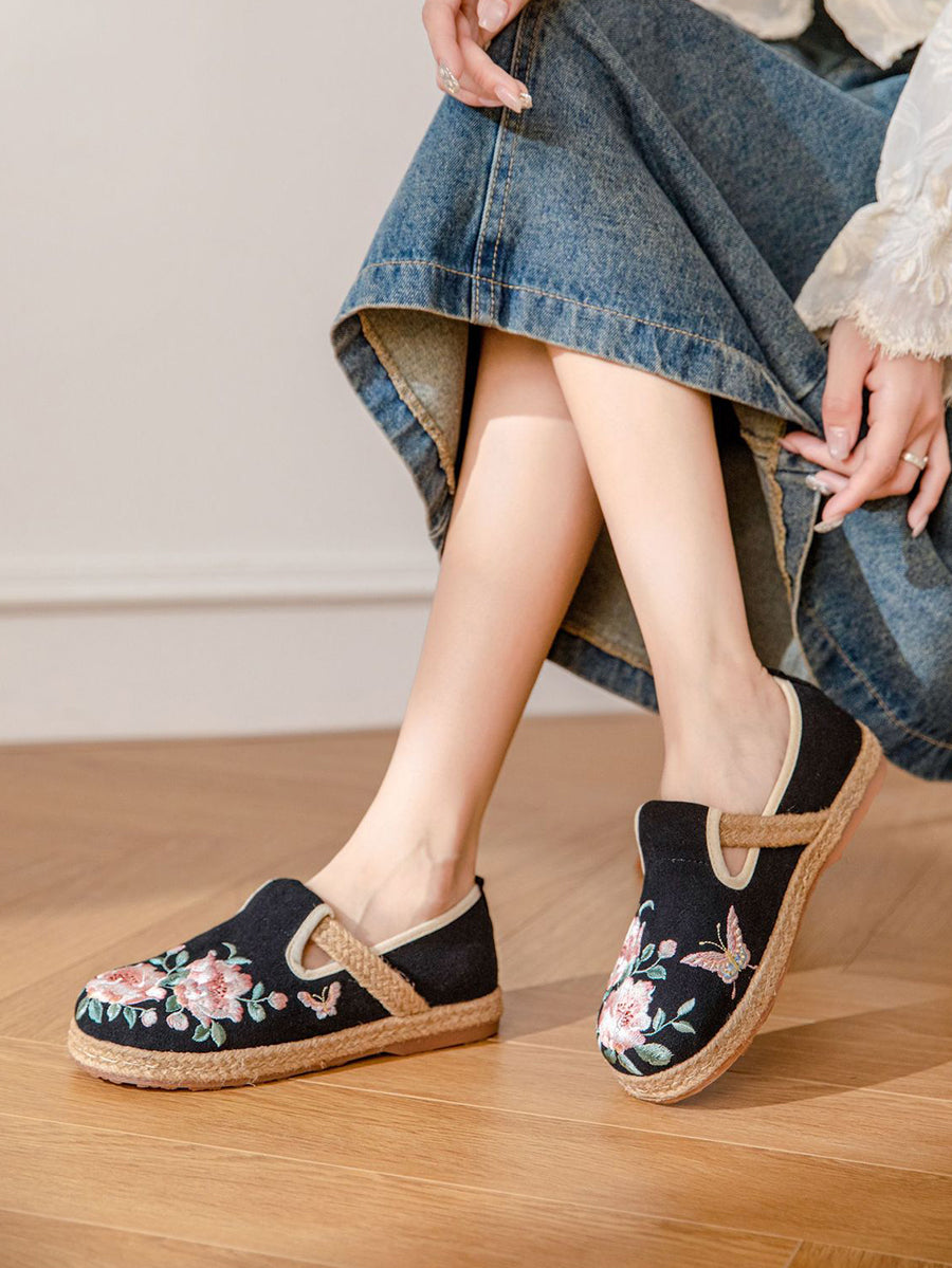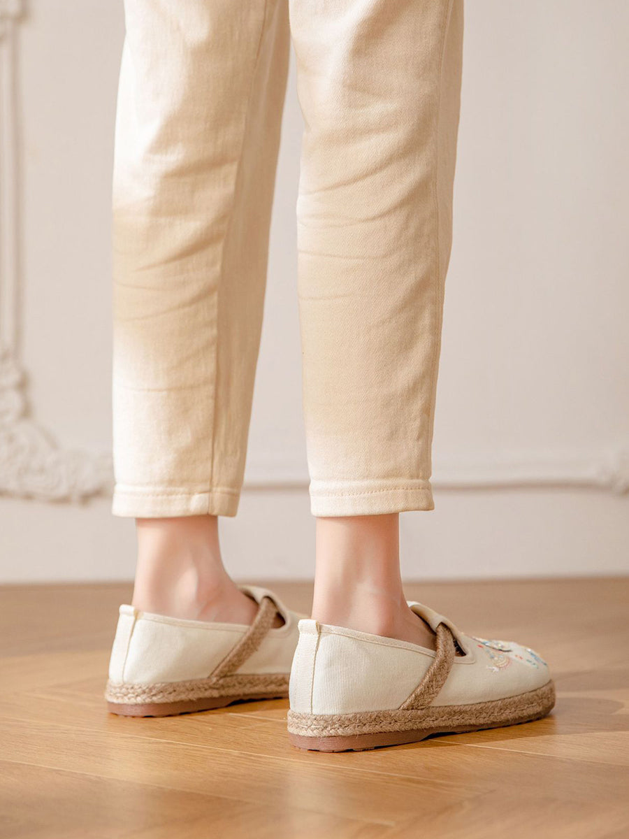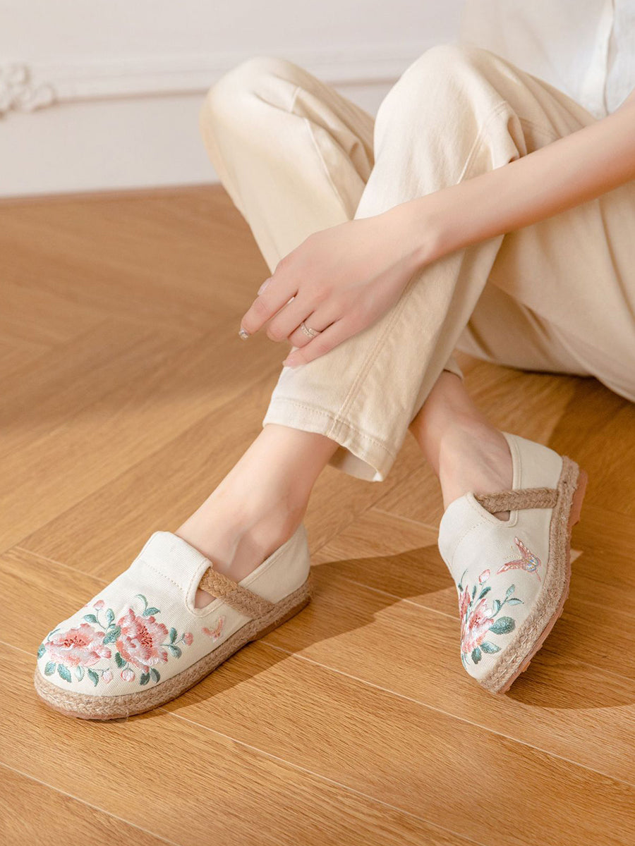 Scarpe da donna etniche estive in tela con ricami floreali.