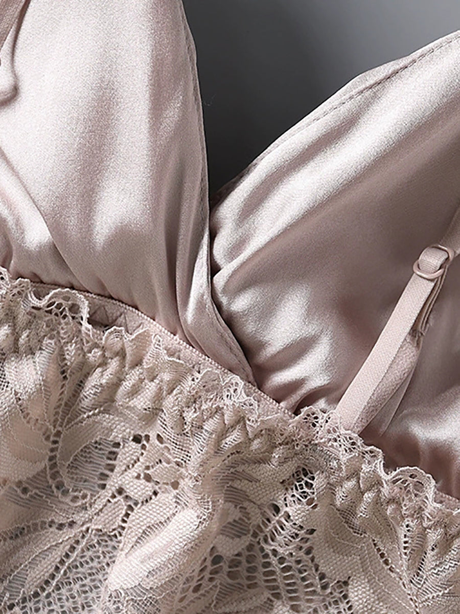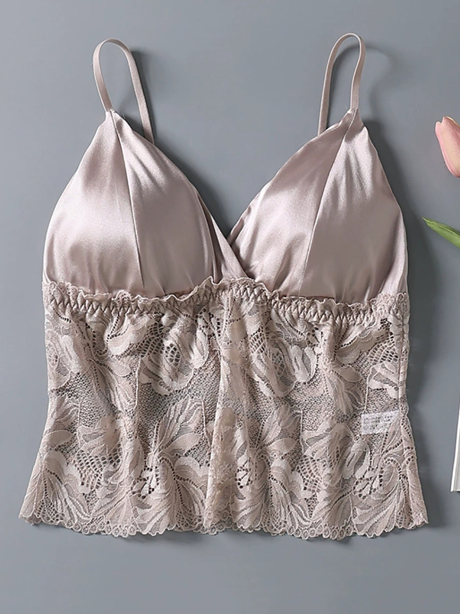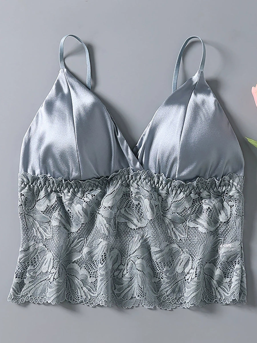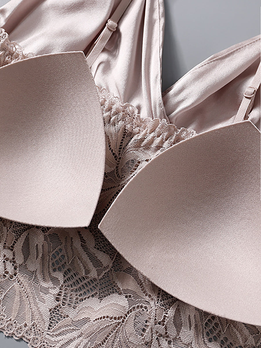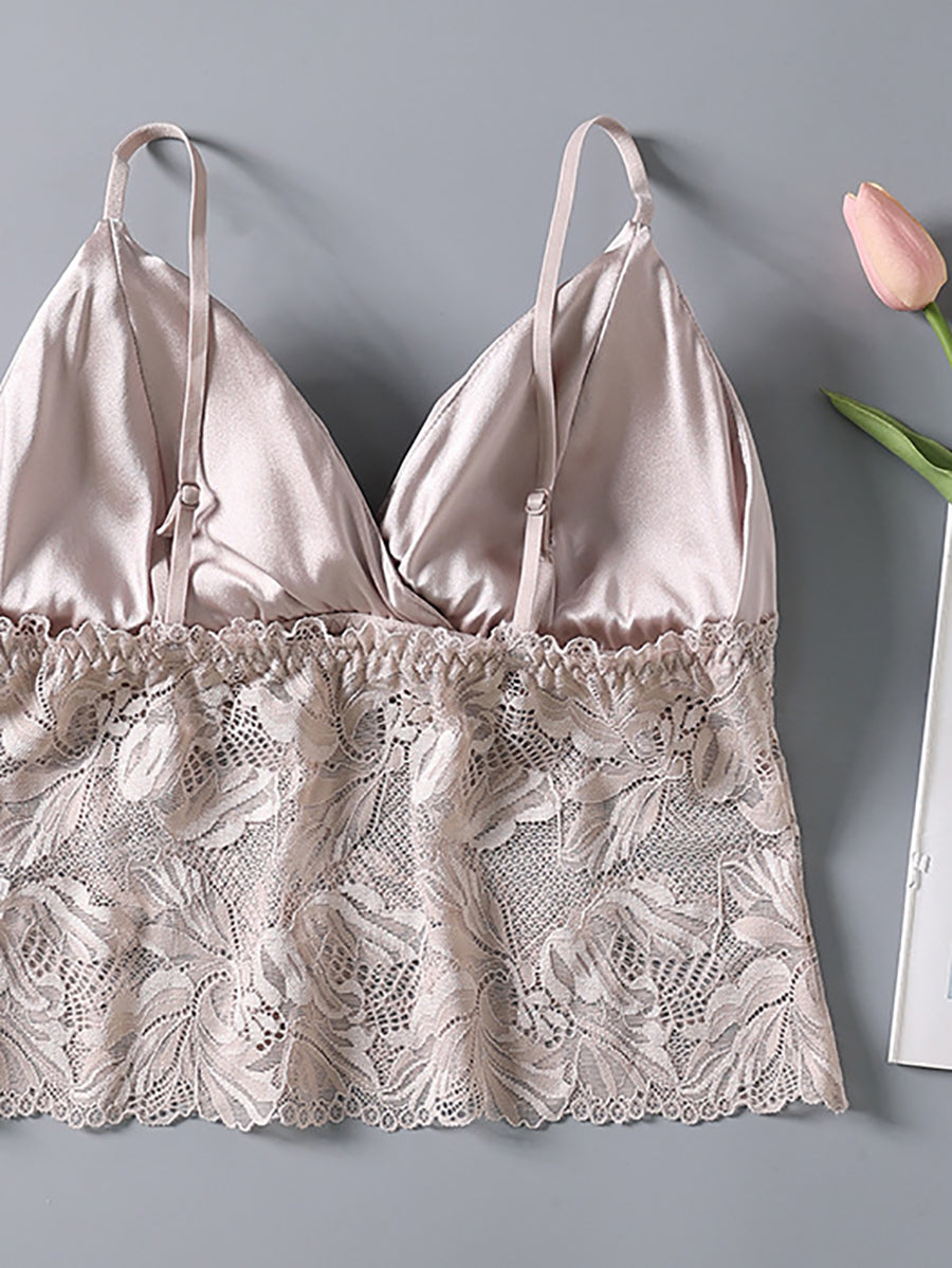 Reggiseno senza ferretto in pizzo floreale e seta da donna