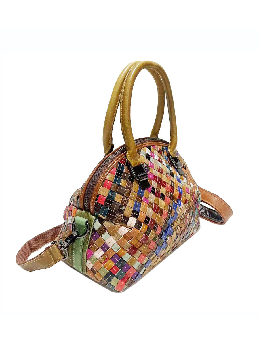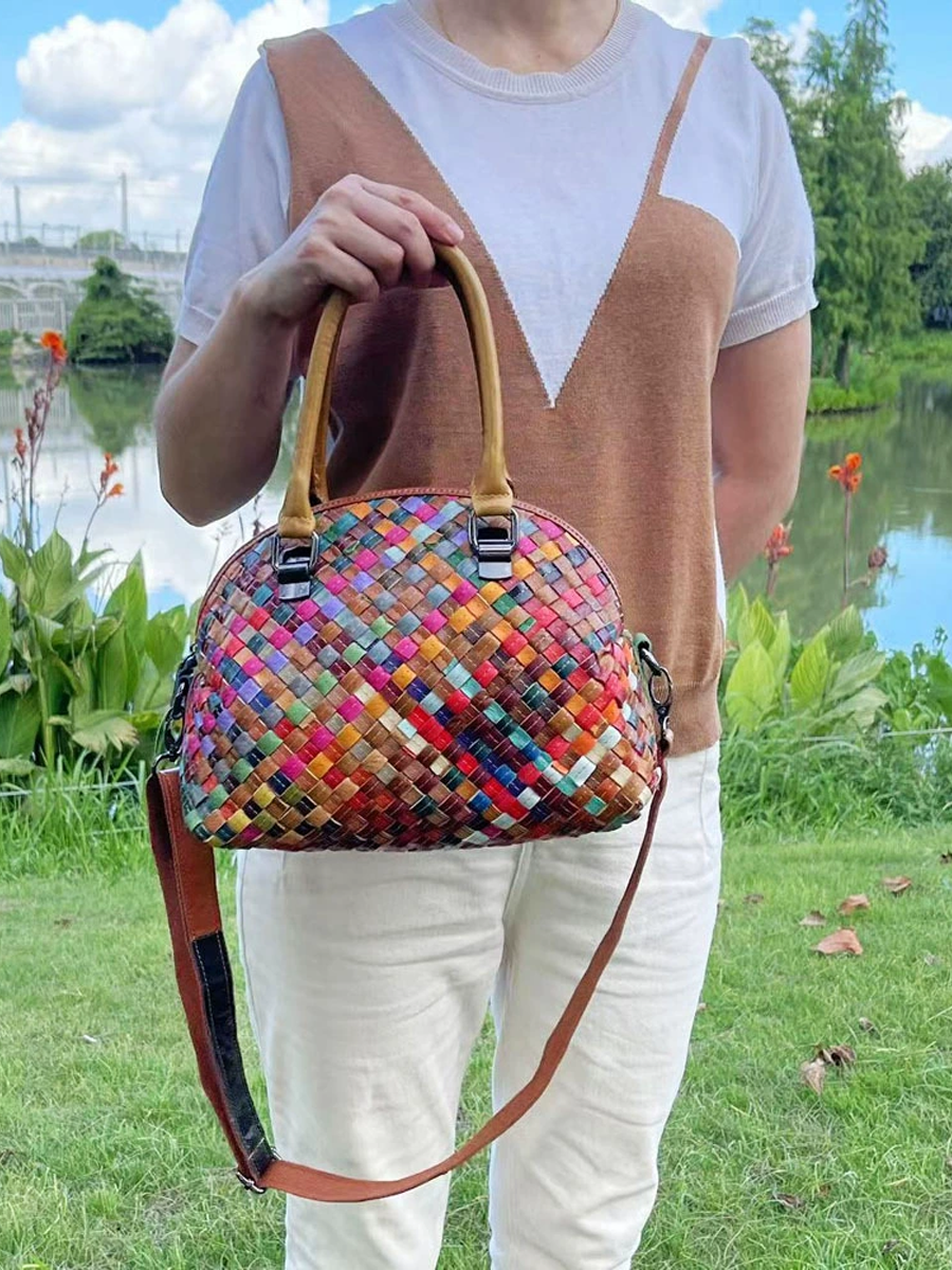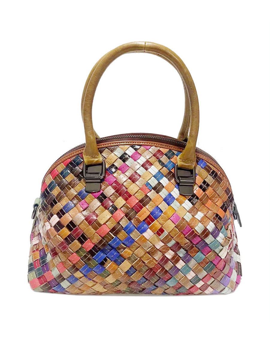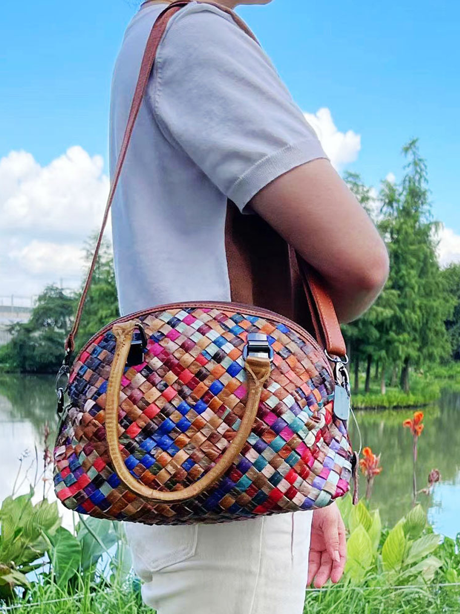 Borsa a tracolla in vera pelle lavorata a maglia da donna