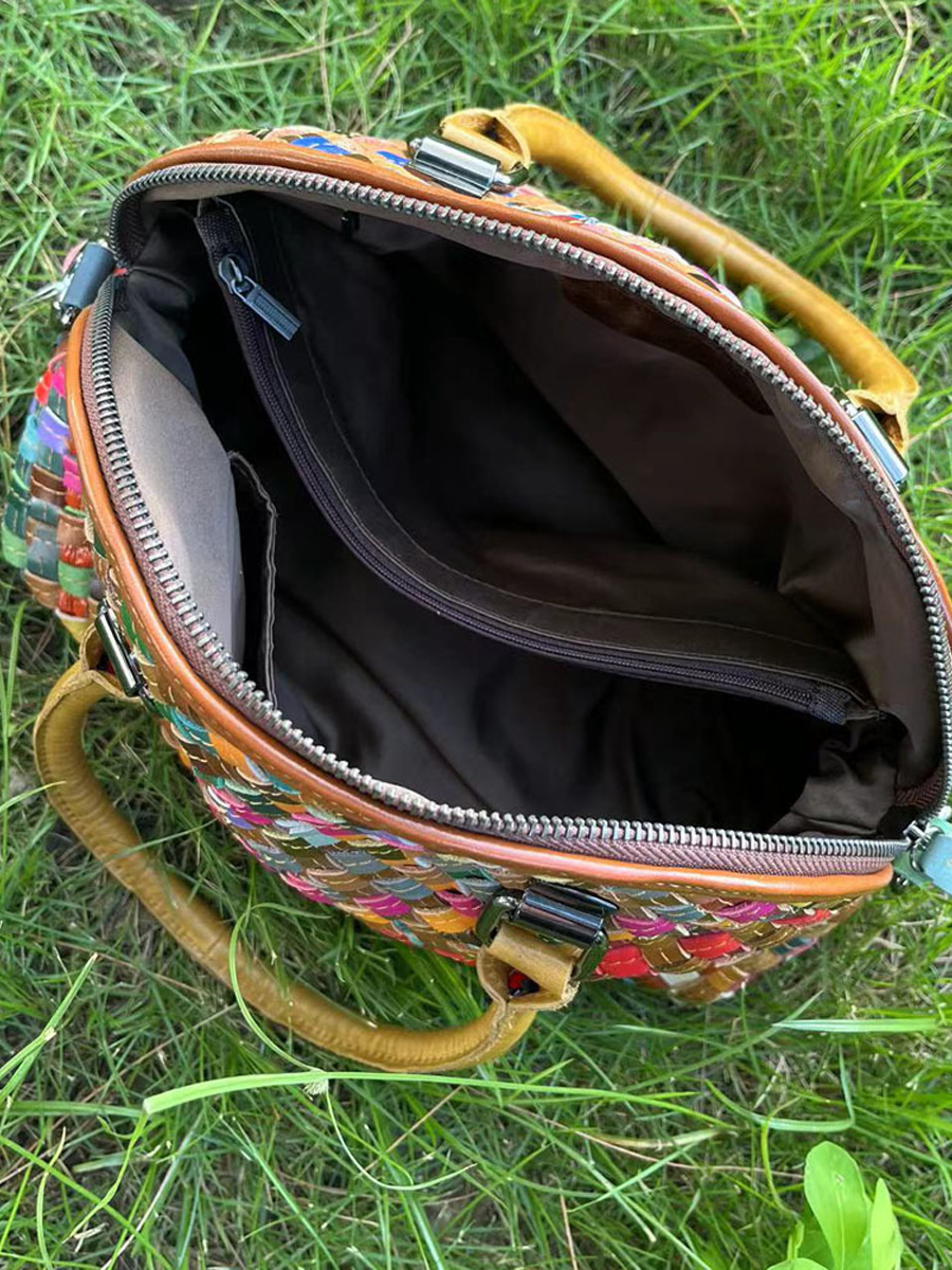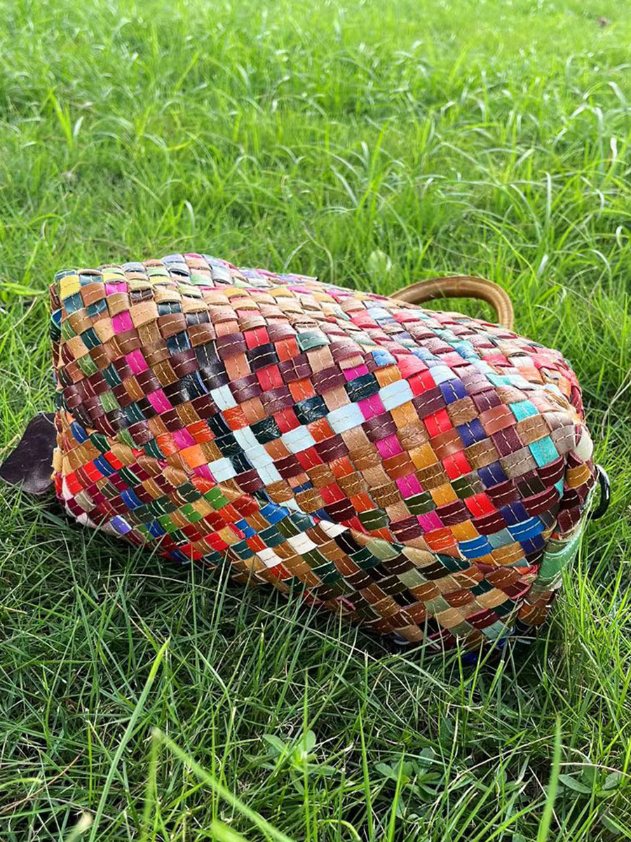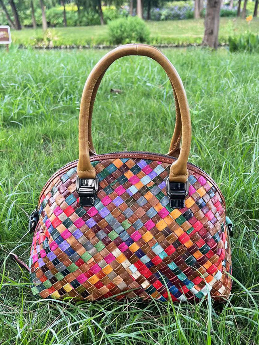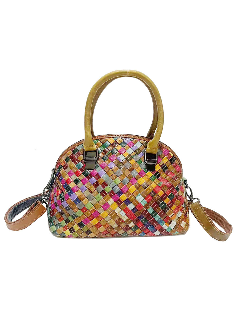 Borsa a tracolla in vera pelle lavorata a maglia da donna