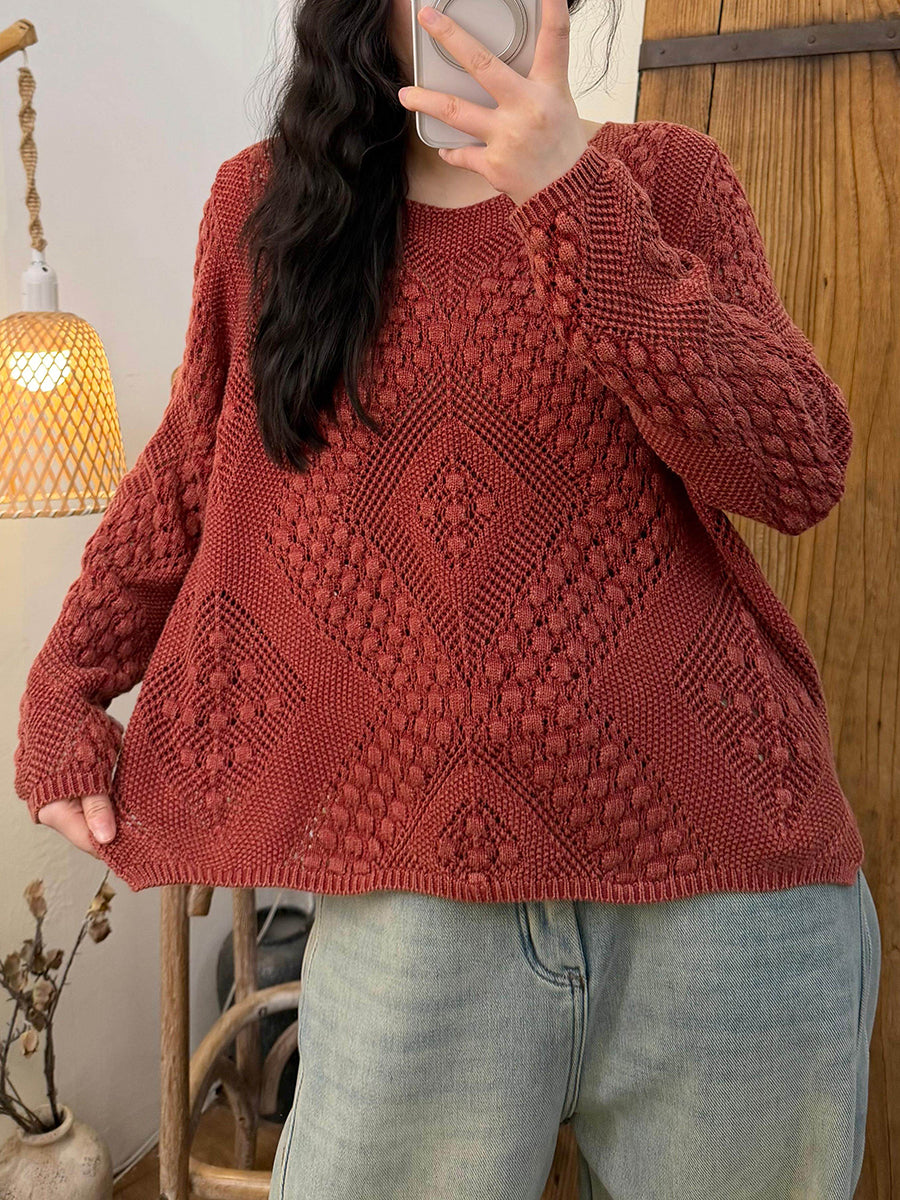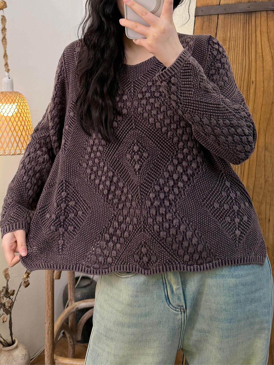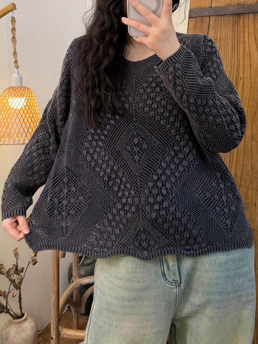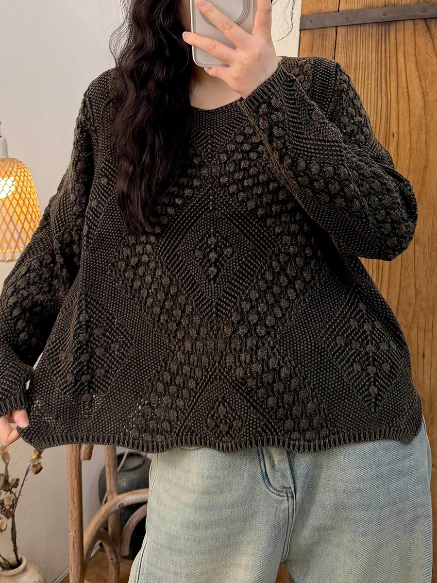 Maglione da donna retrò primaverile lavorato a maglia con scollo a V