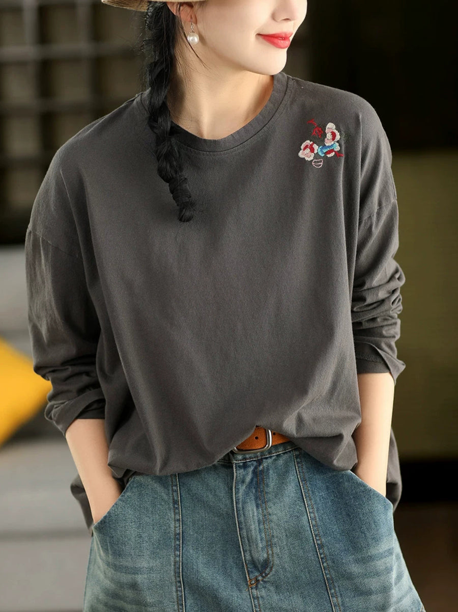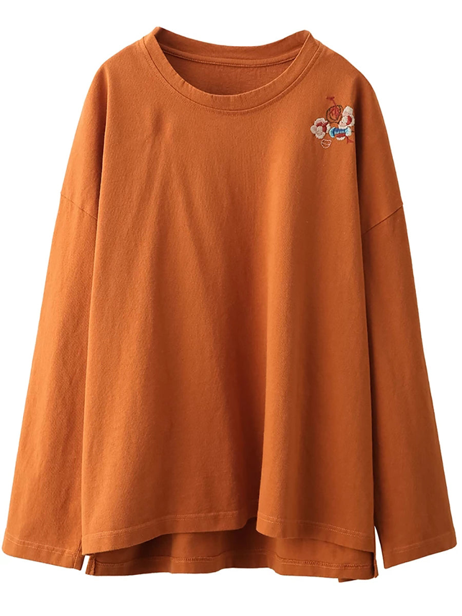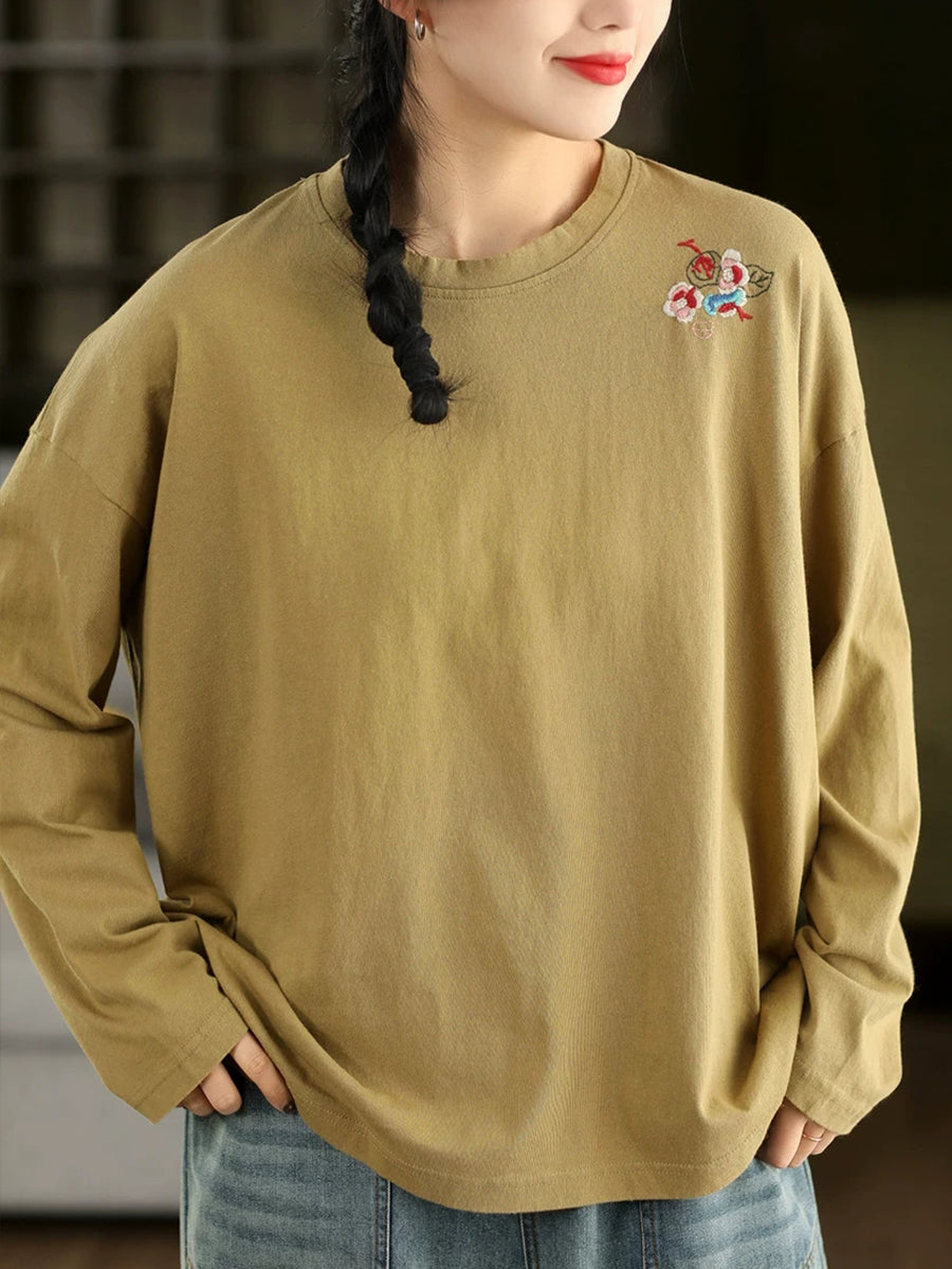 Blusa da donna con scollo a V e ricamo artistico in 100% cotone