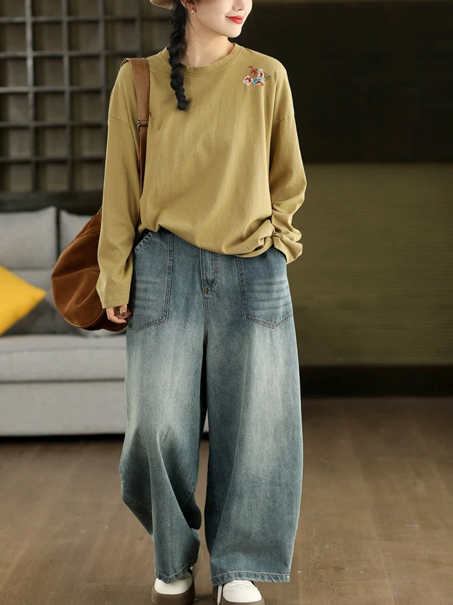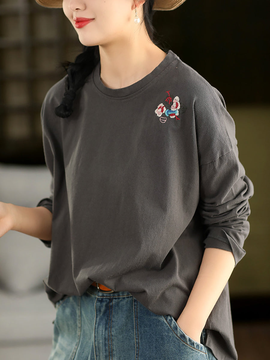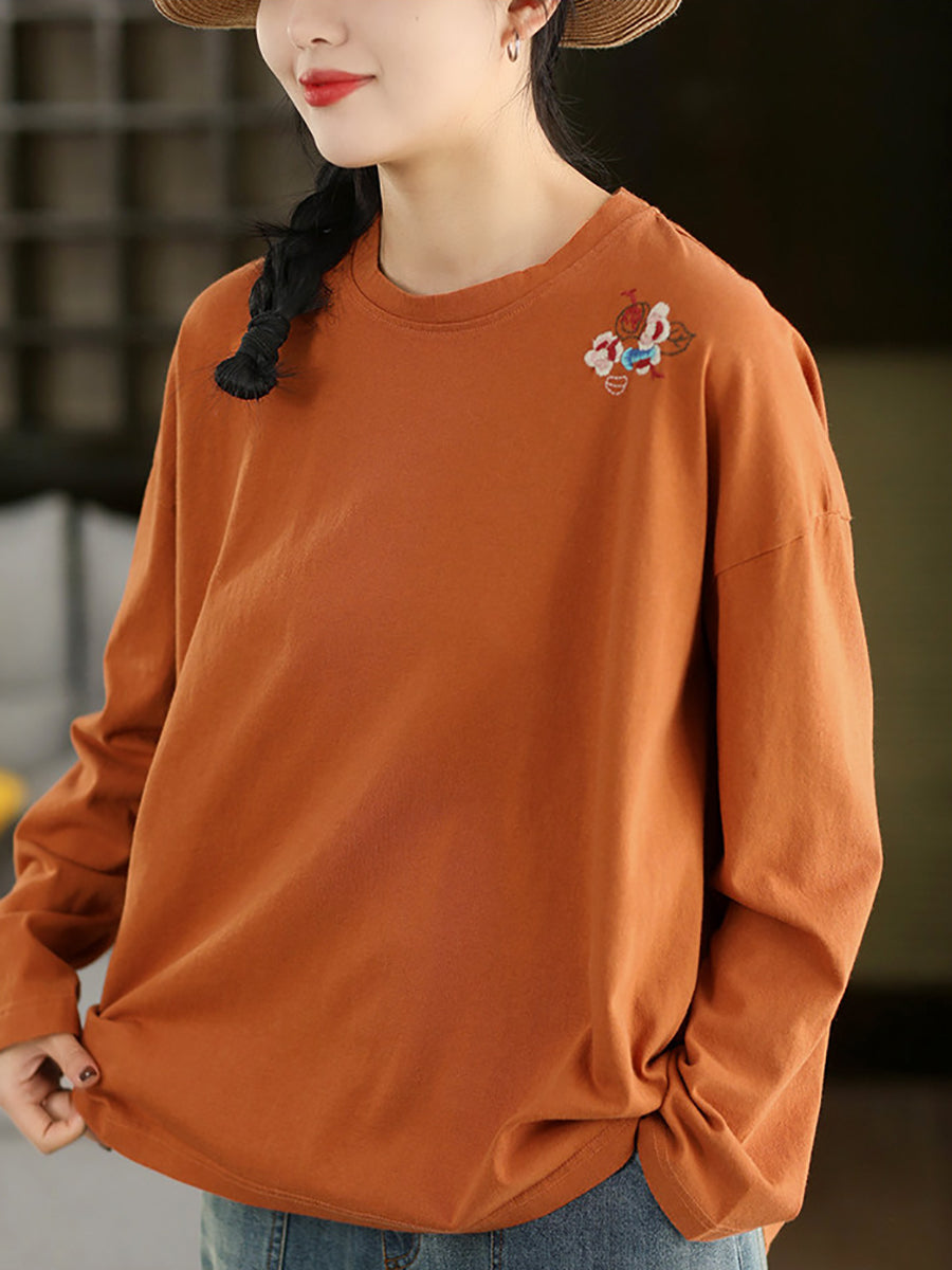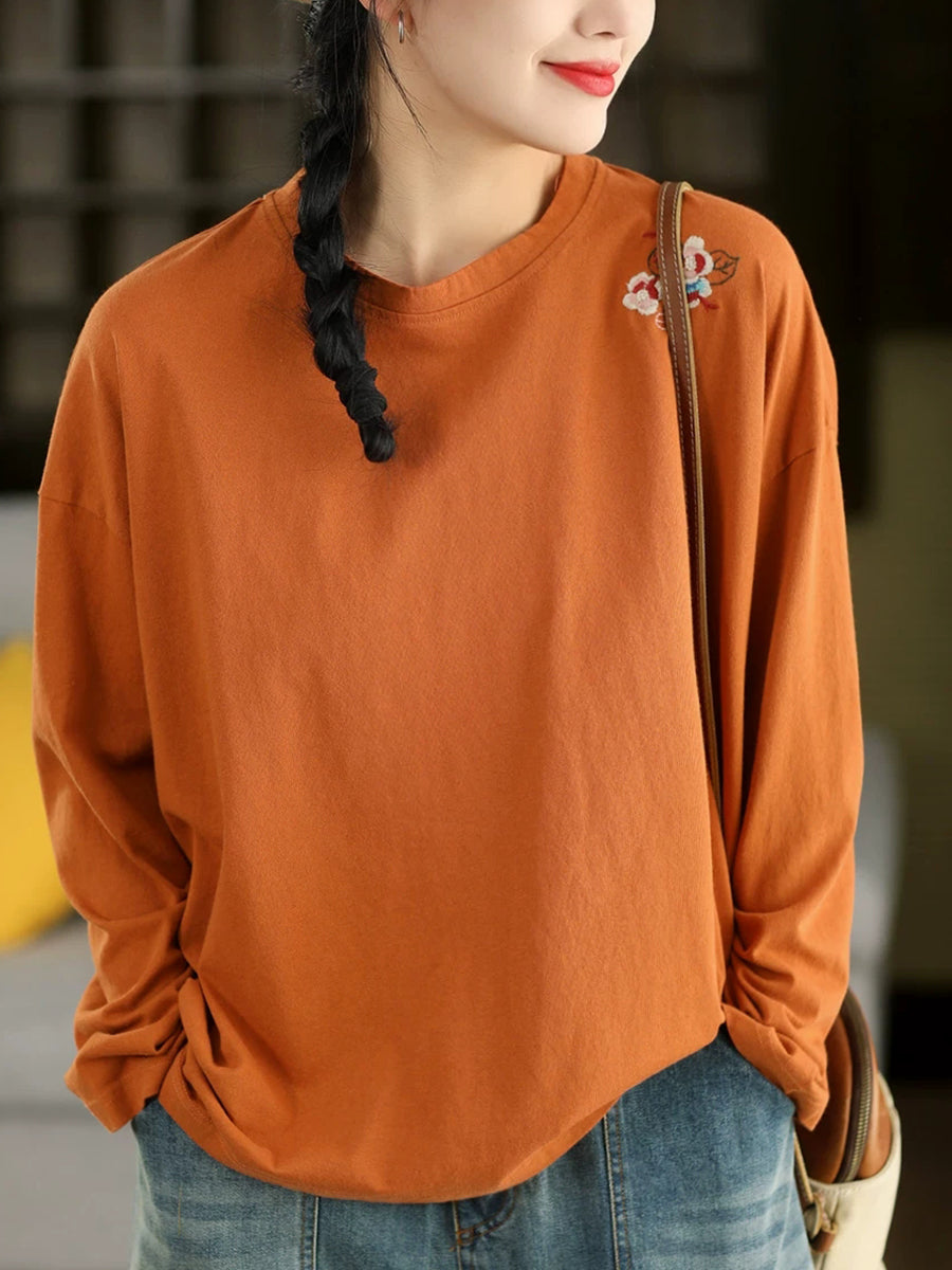 Blusa da donna con scollo a V e ricamo artistico in 100% cotone